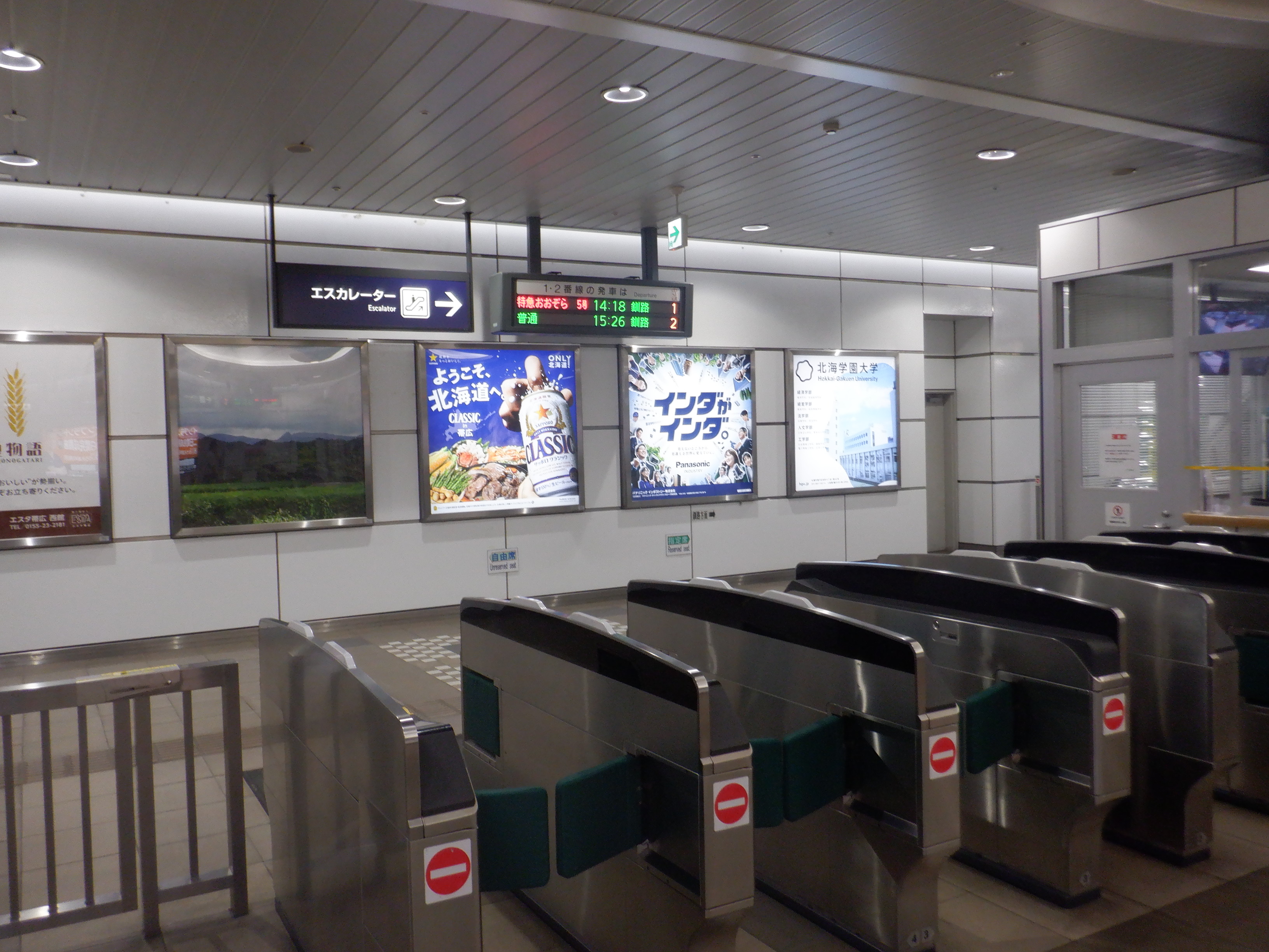 1・2番のりば札内駅側のエスカレーターから上がって行ったところ。