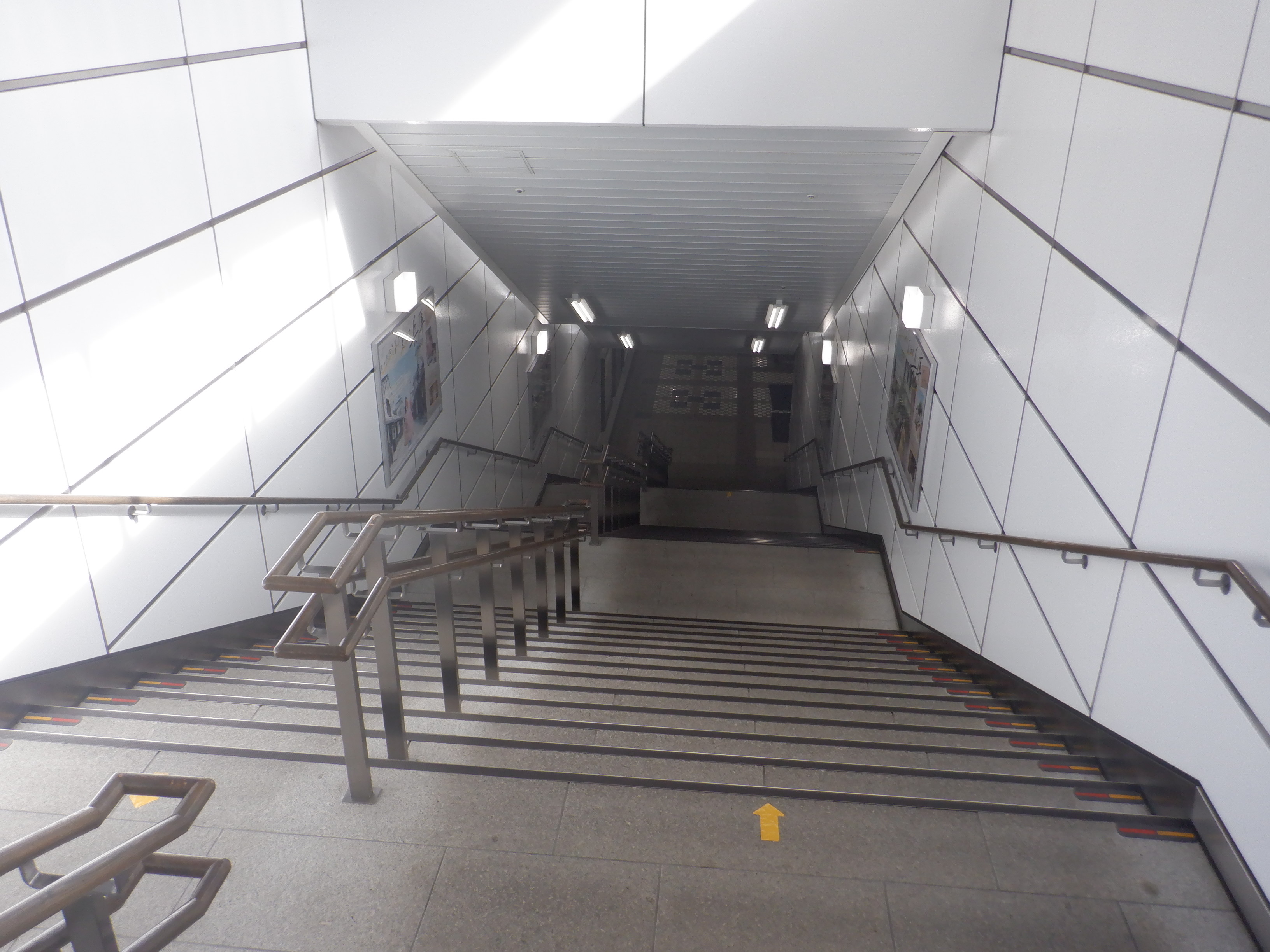 1・2番のりばから階段で改札口へ下りていくところ。