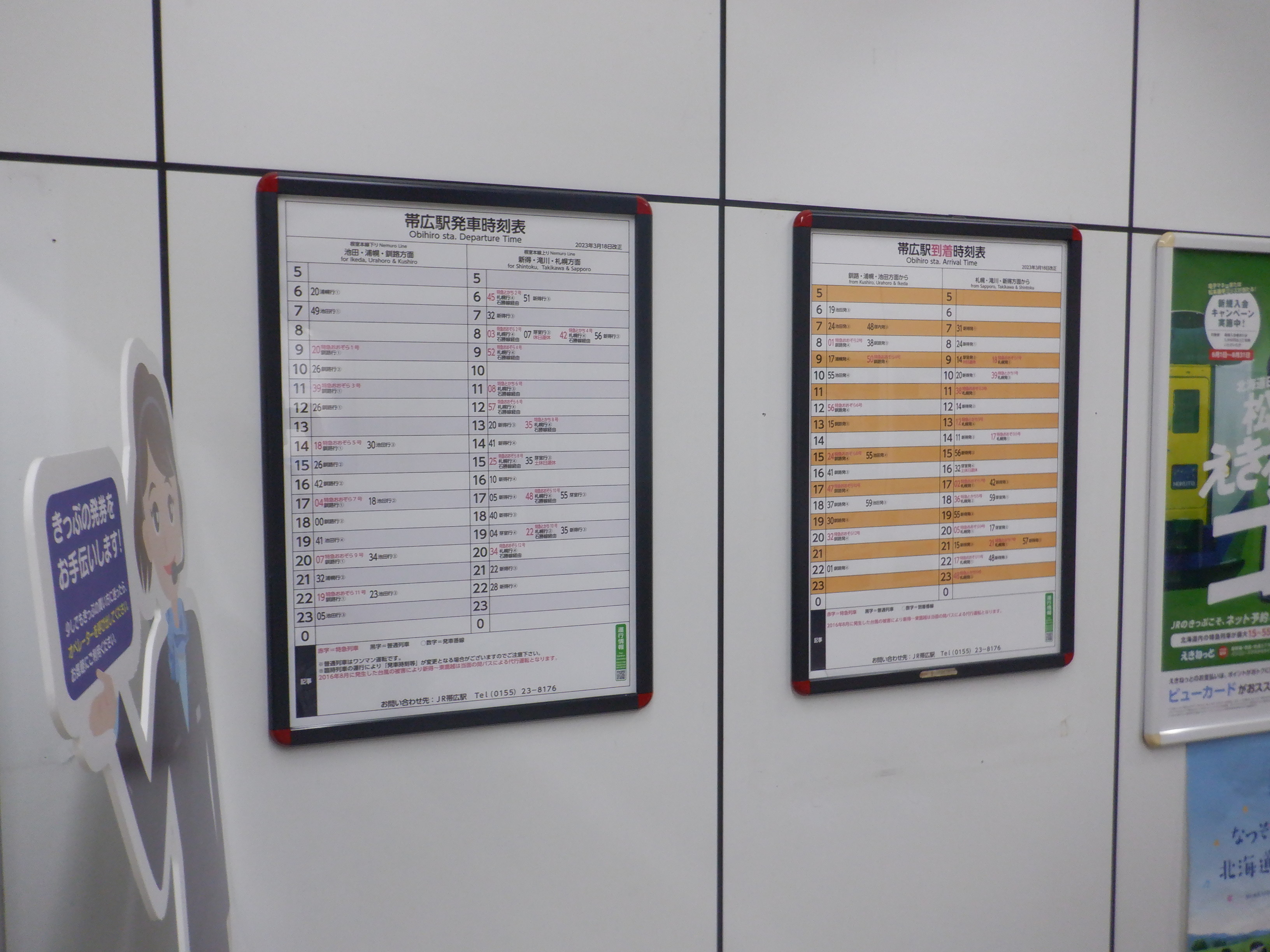 改札外にある時刻表。
