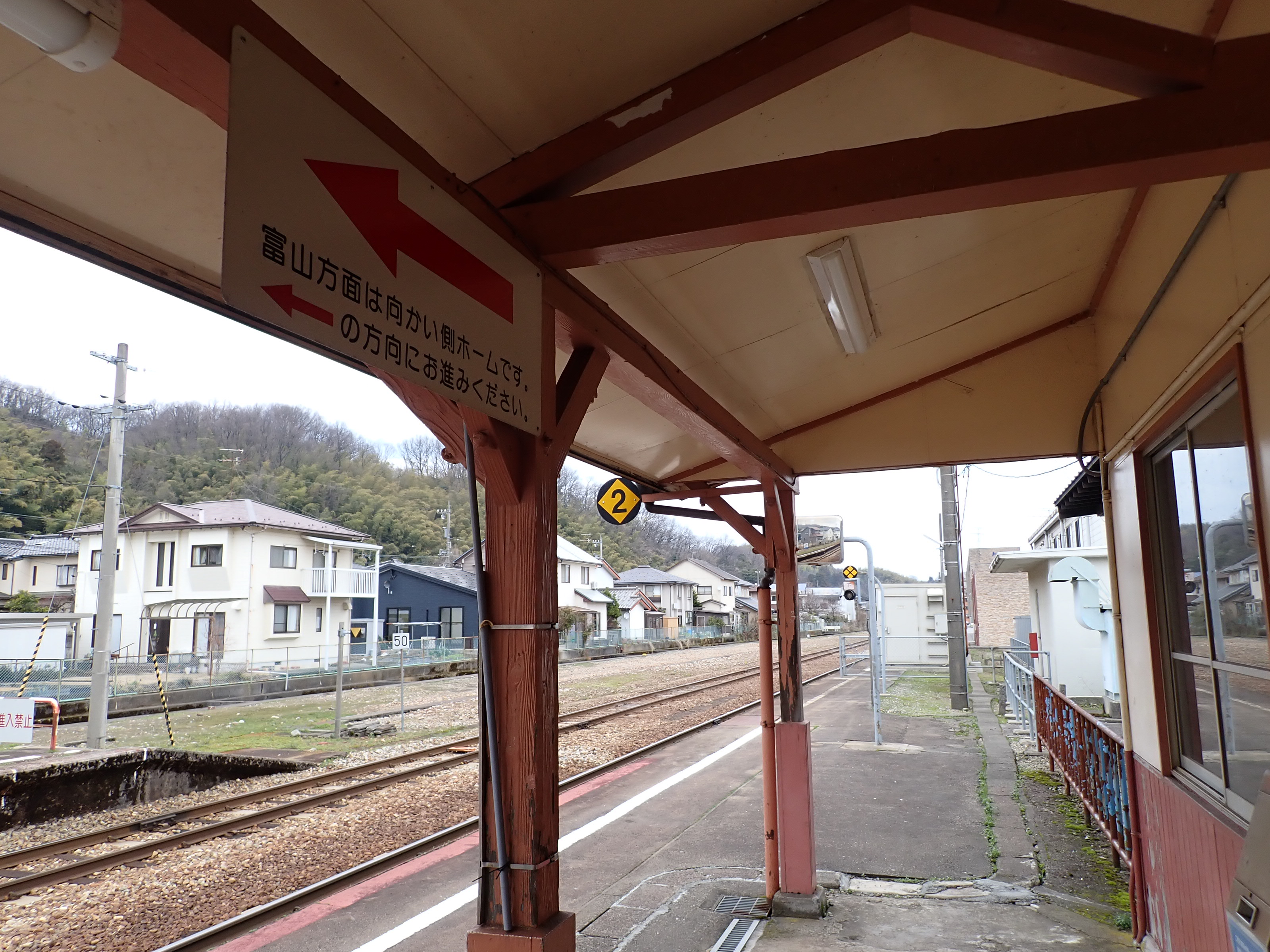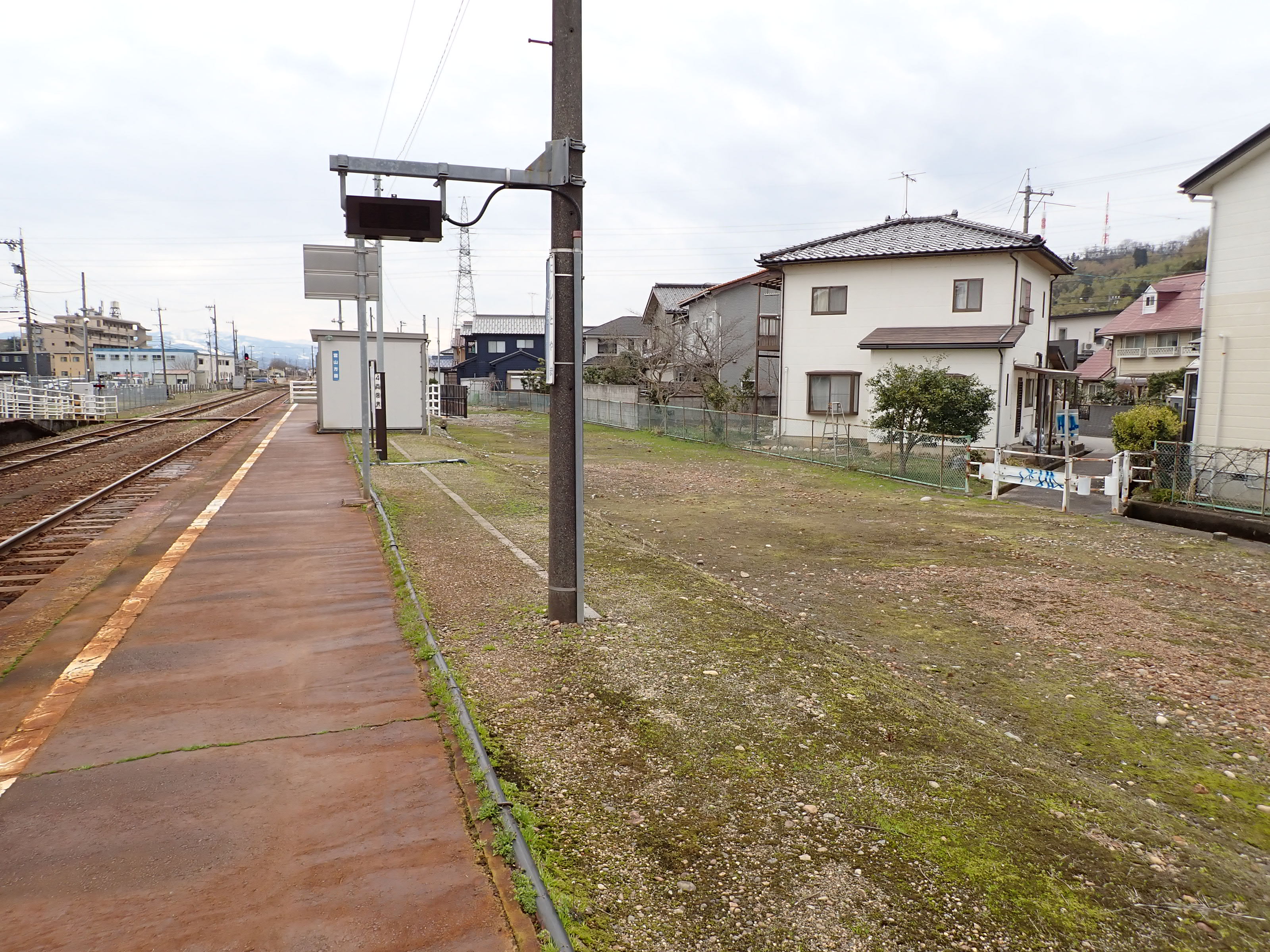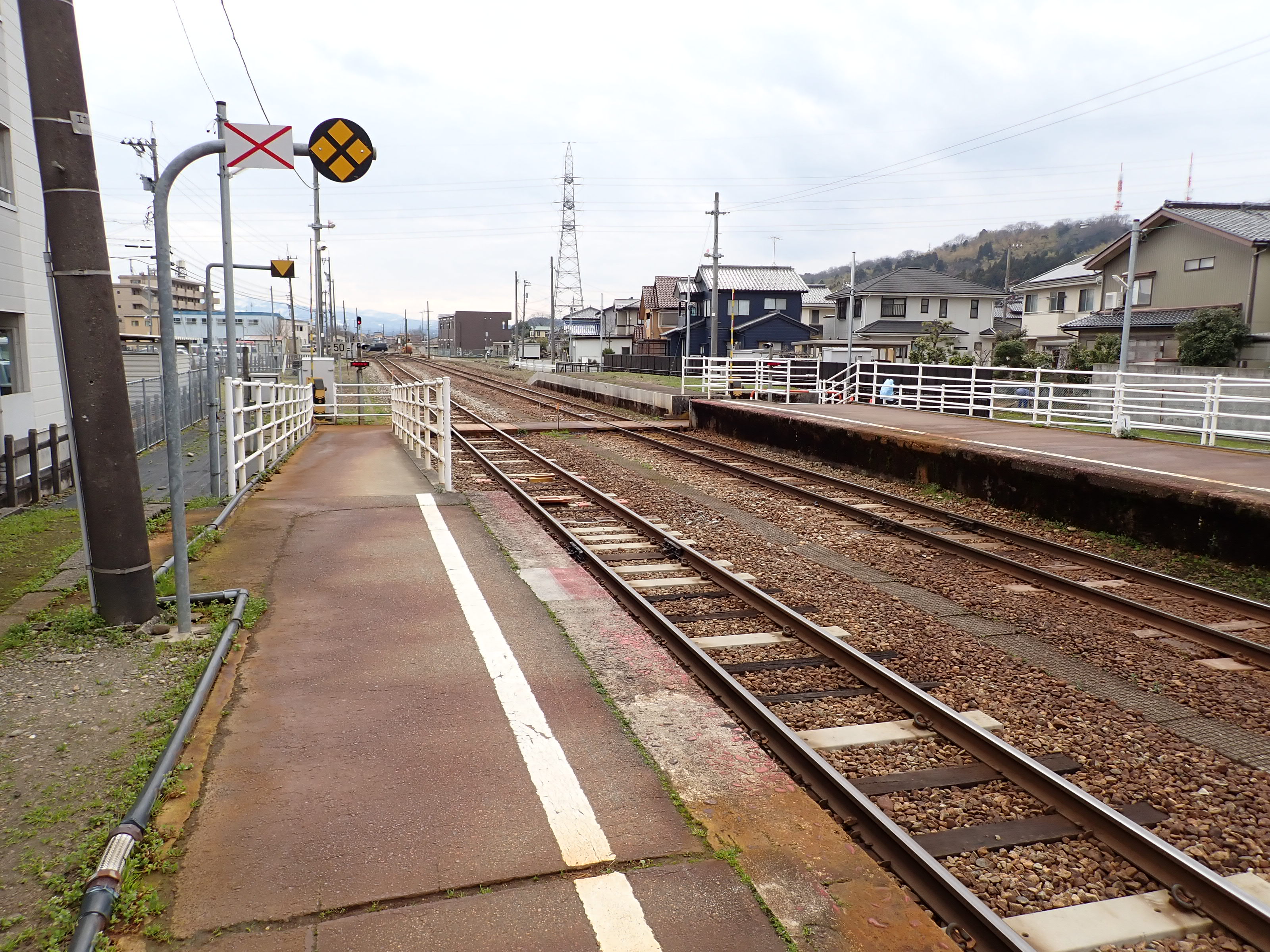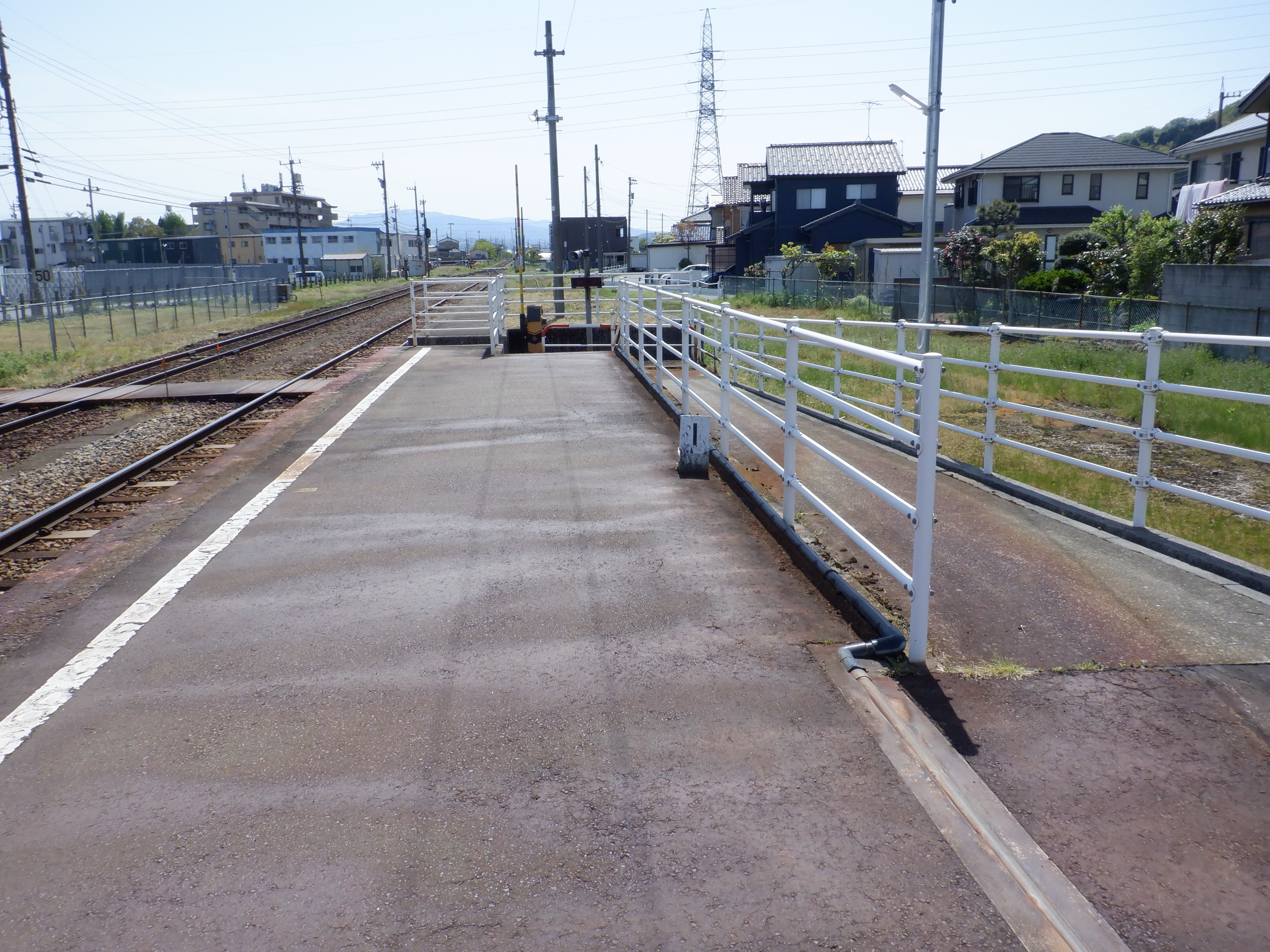 構内踏切を渡ったところから見た2番のりば婦中鵜坂方面。