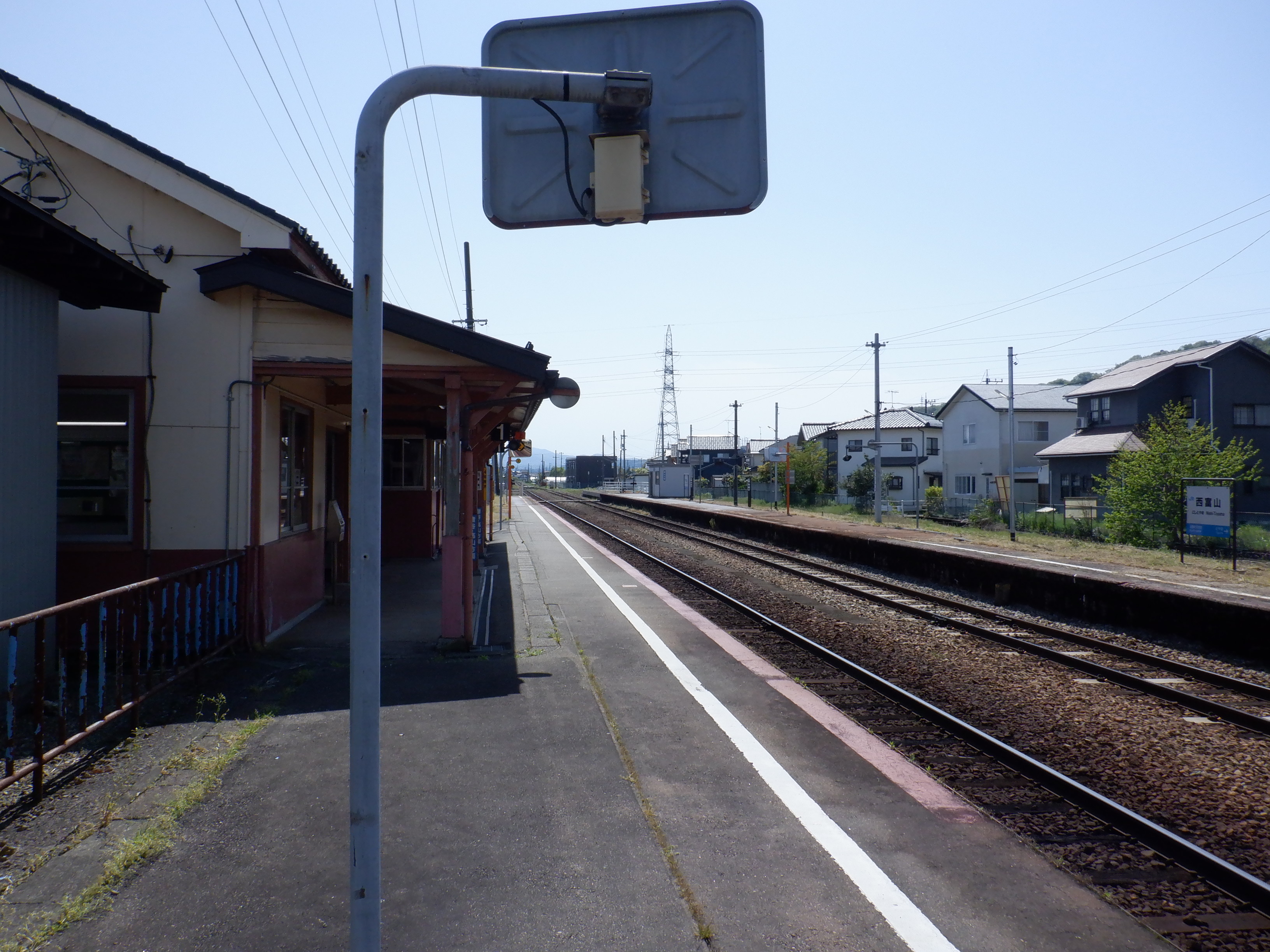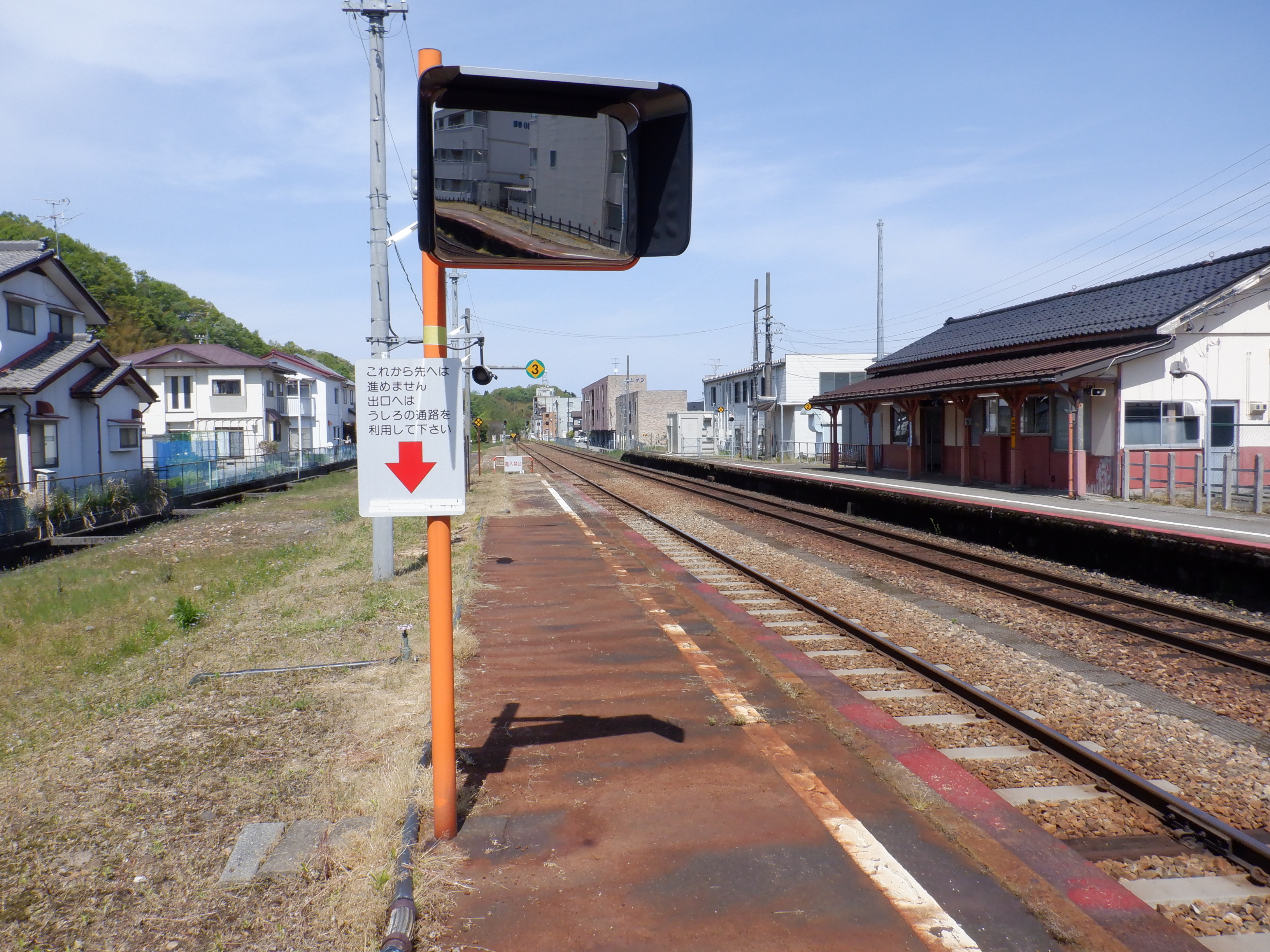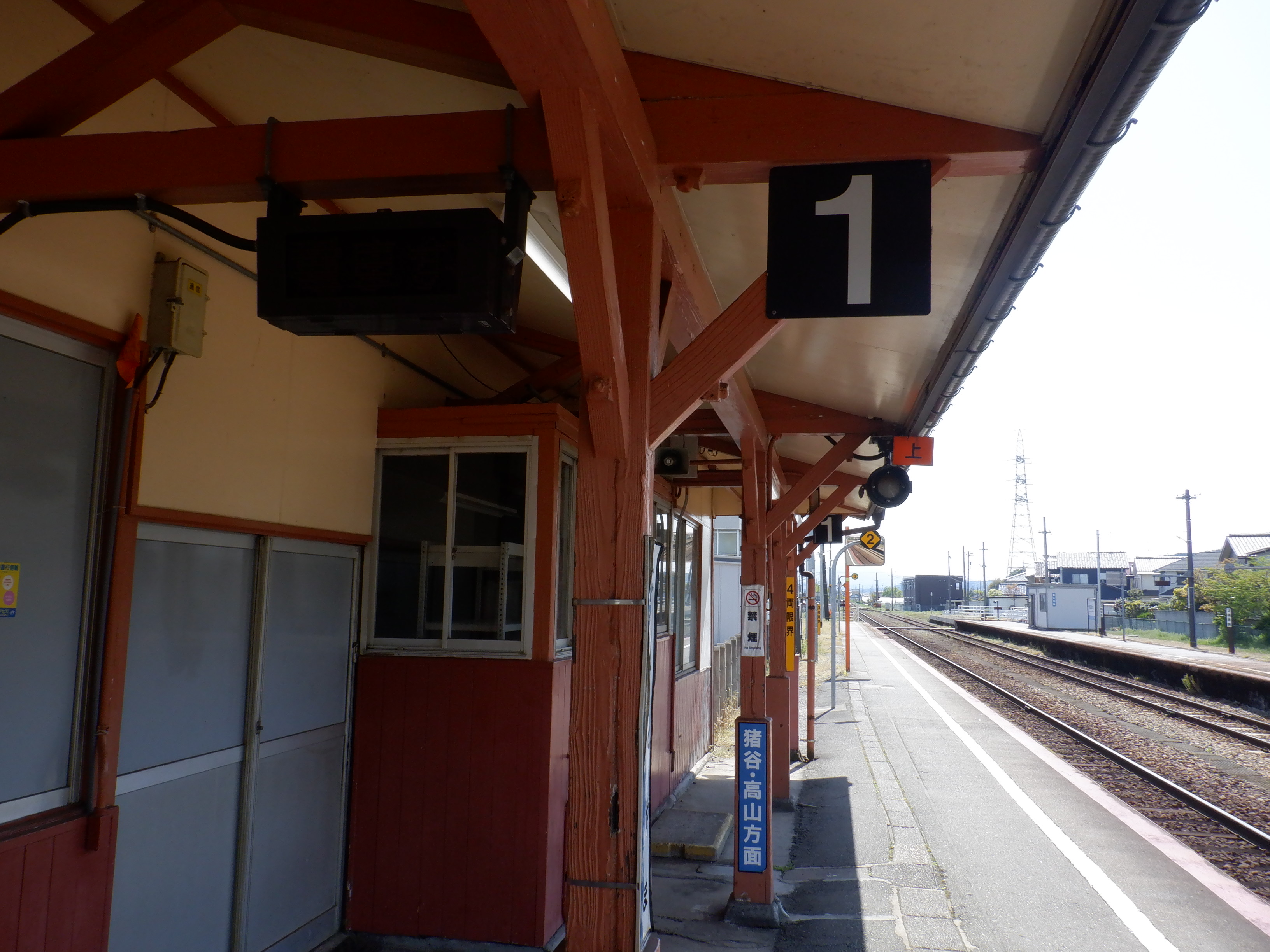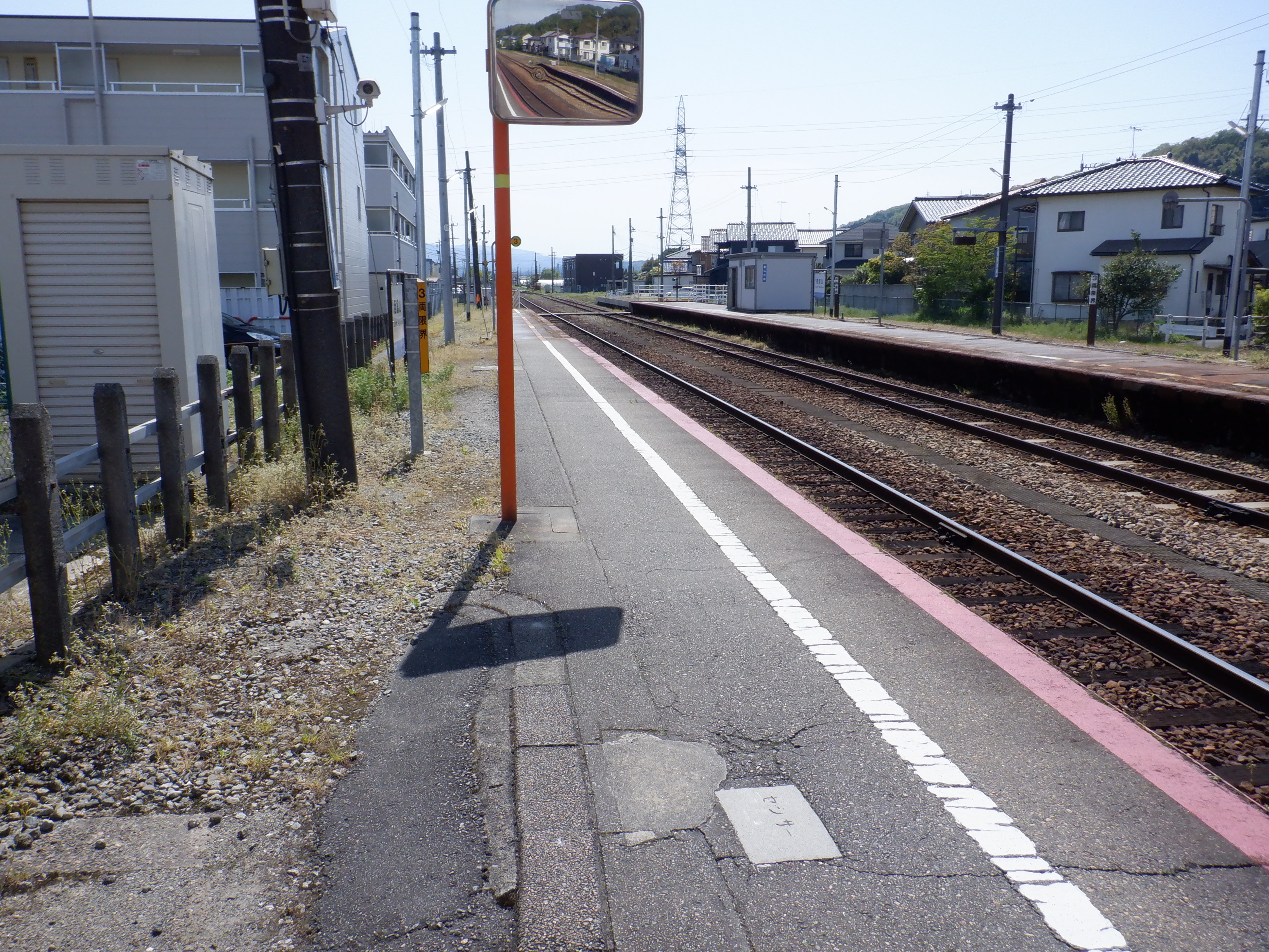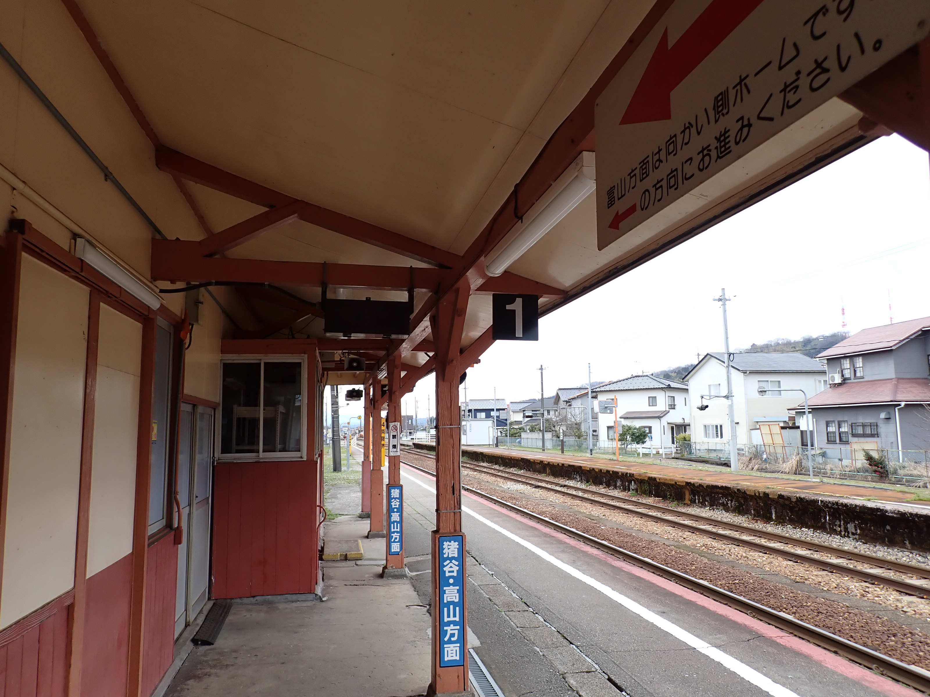 構内踏切を渡ったところから見た2番のりば婦中鵜坂方面。
