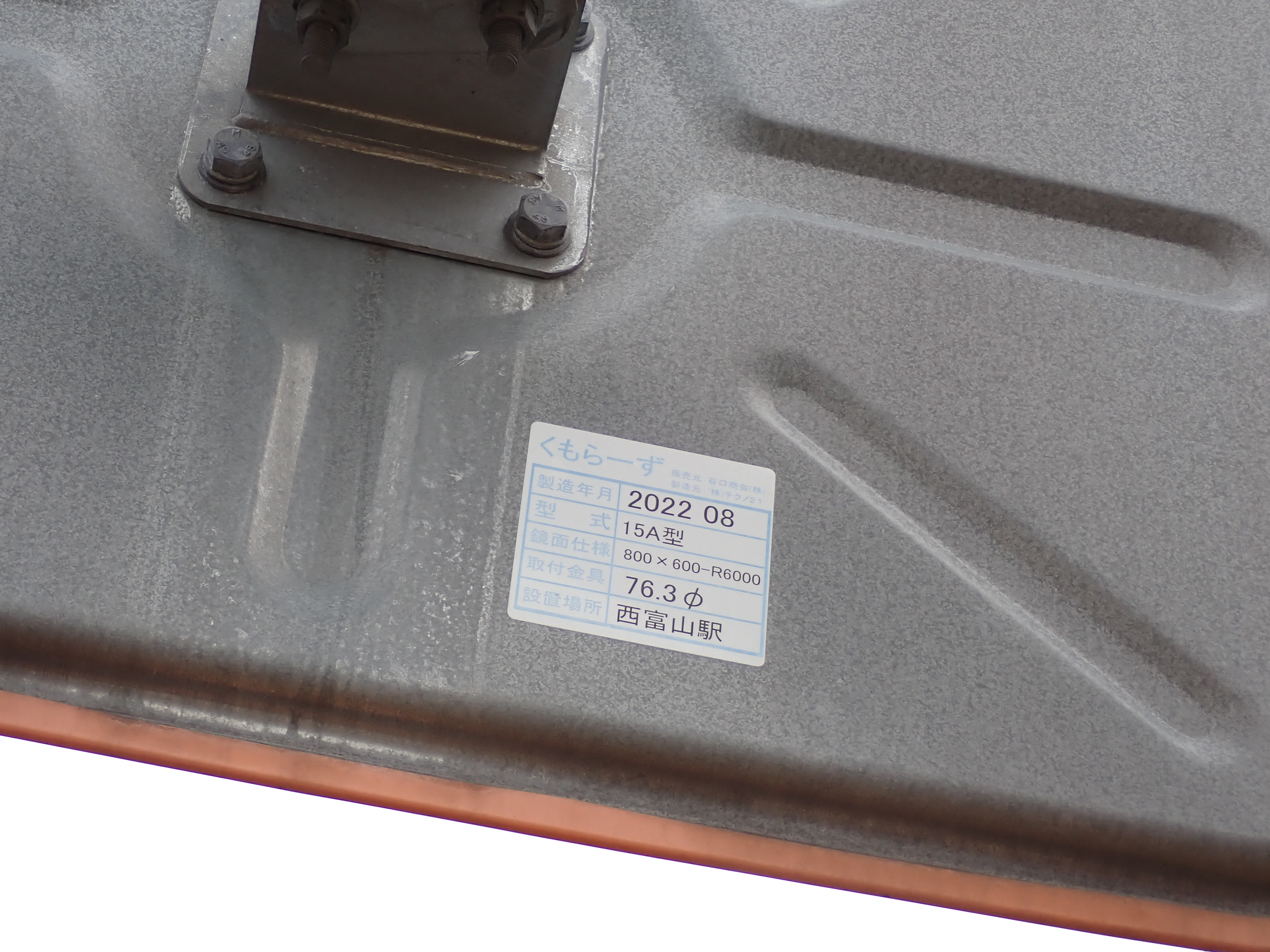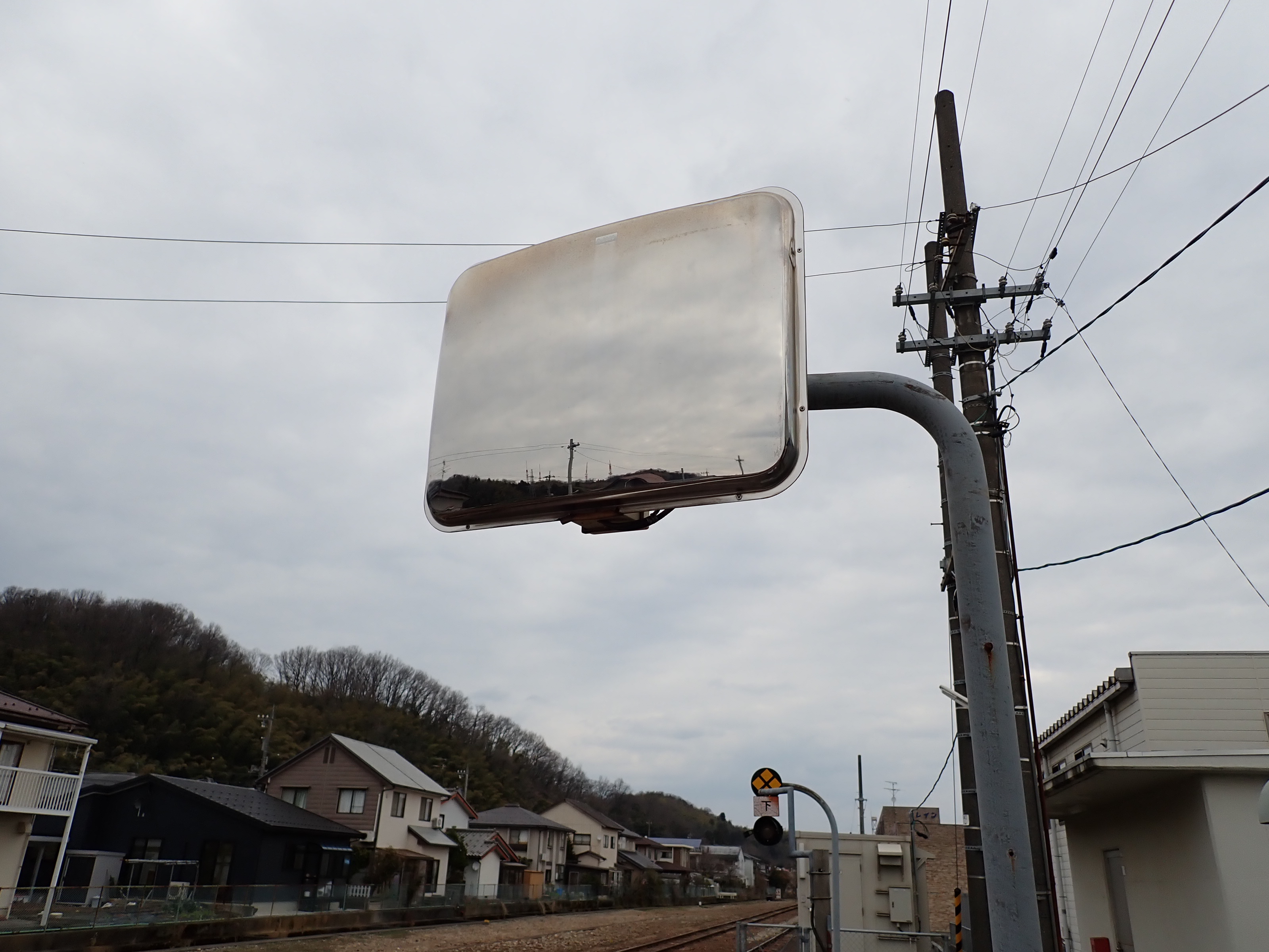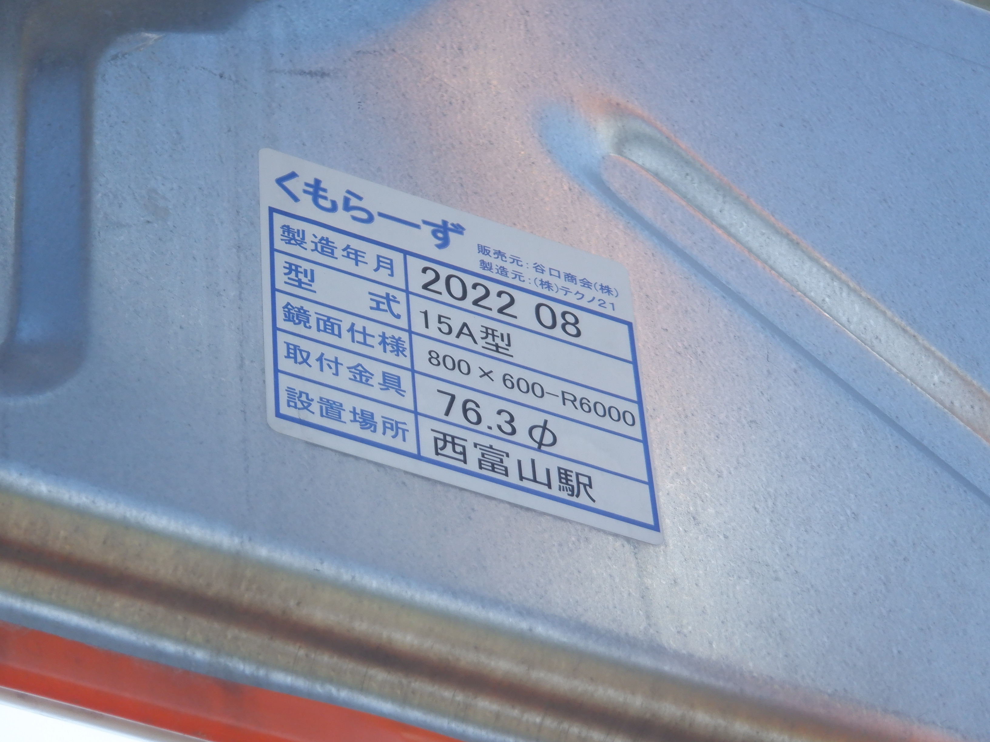 2番のりばのワンマンミラー。「くもらーず」のシールが劣化してきています。