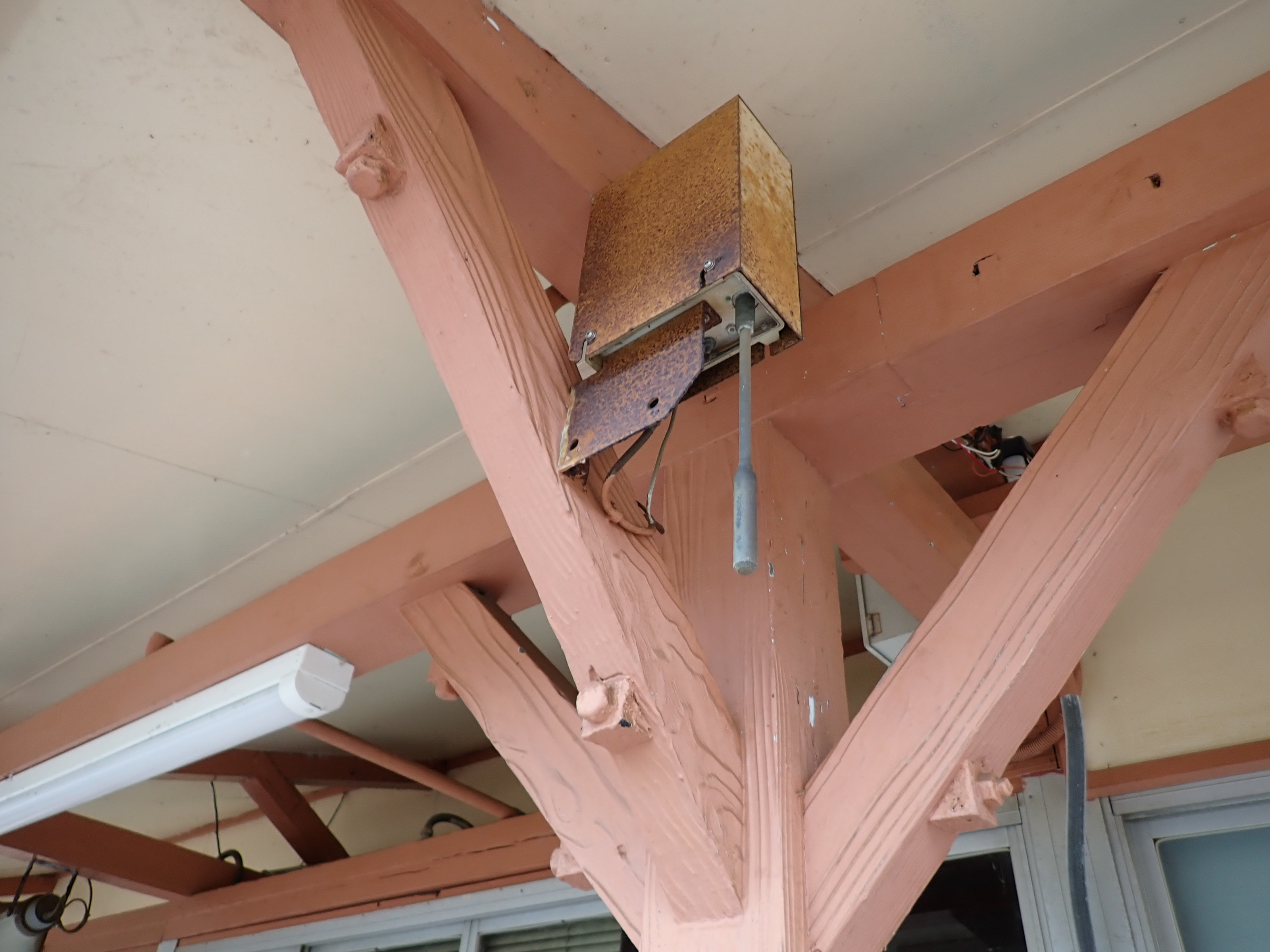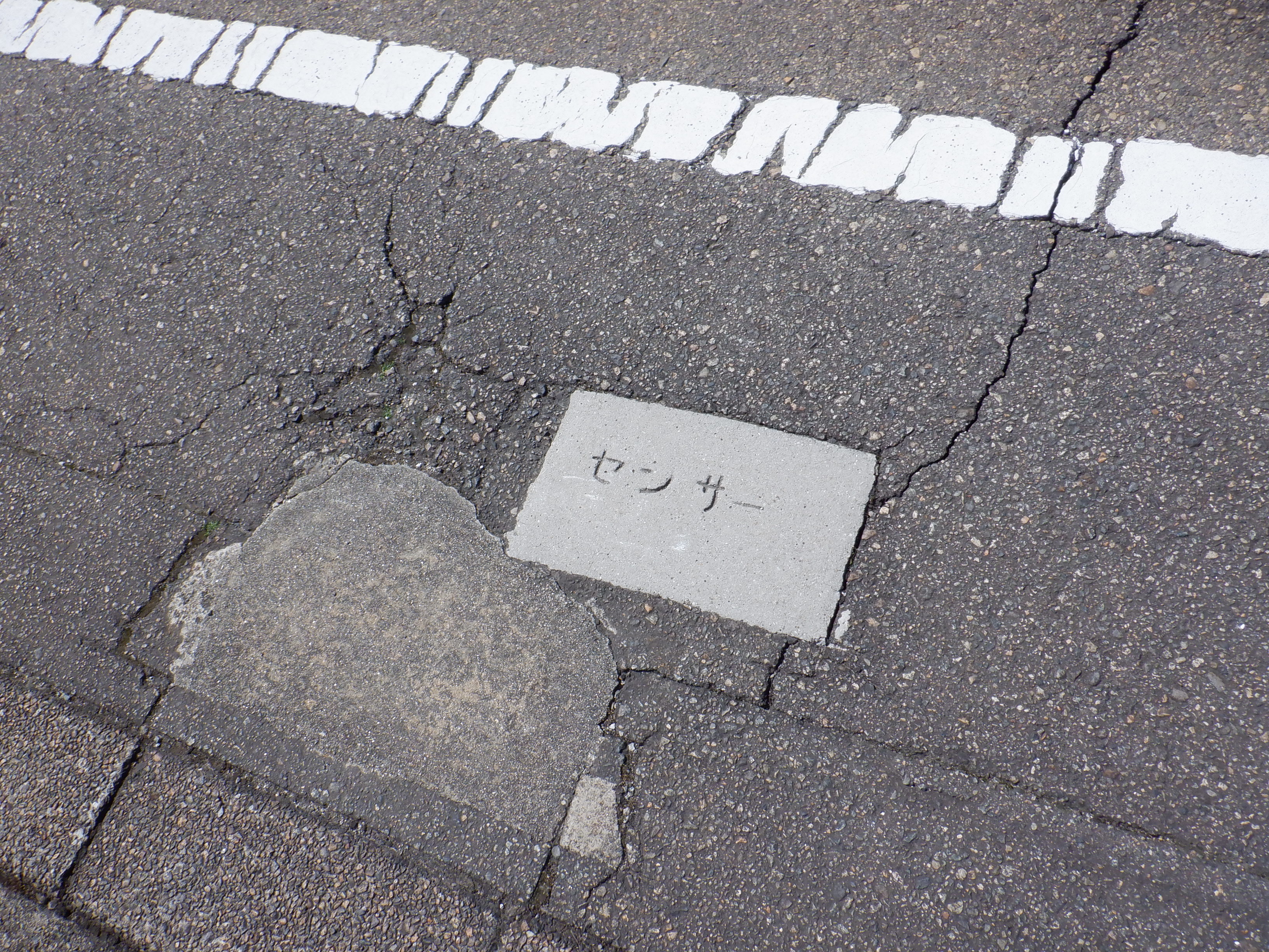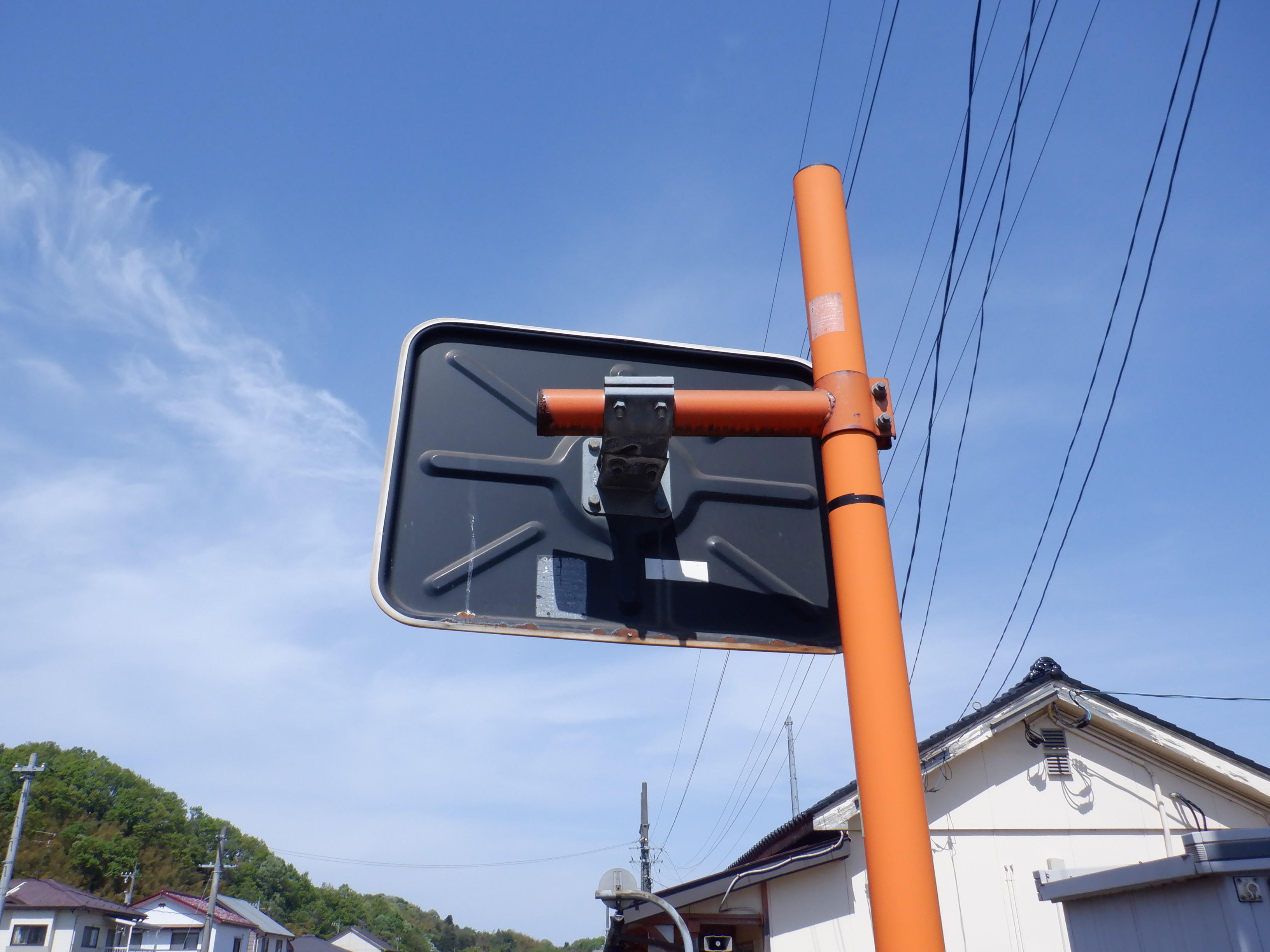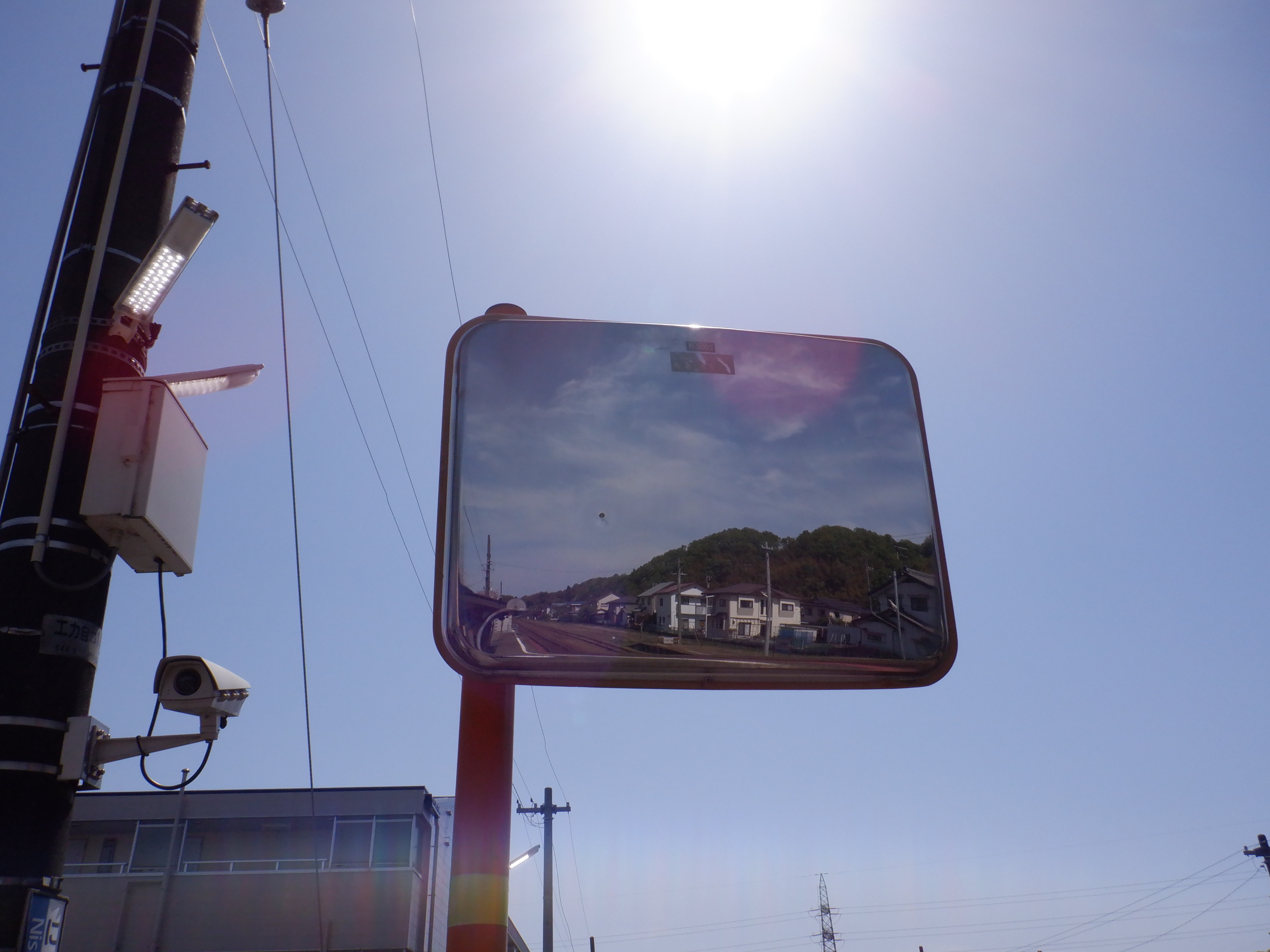 2番のりばのワンマンミラー。「くもらーず」のシールが劣化してきています。
