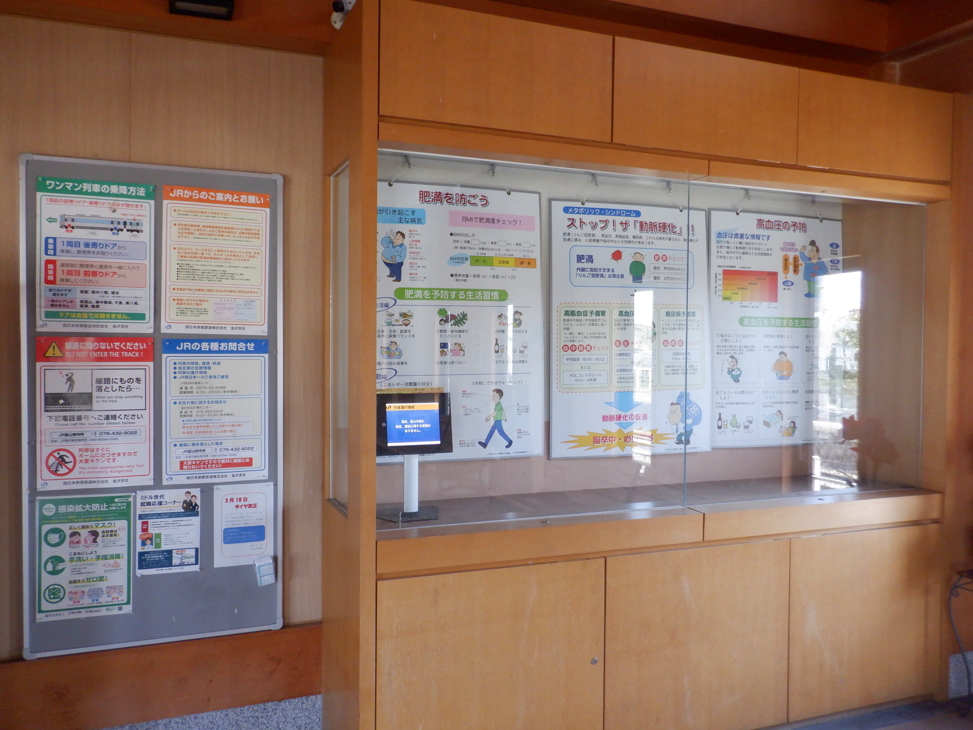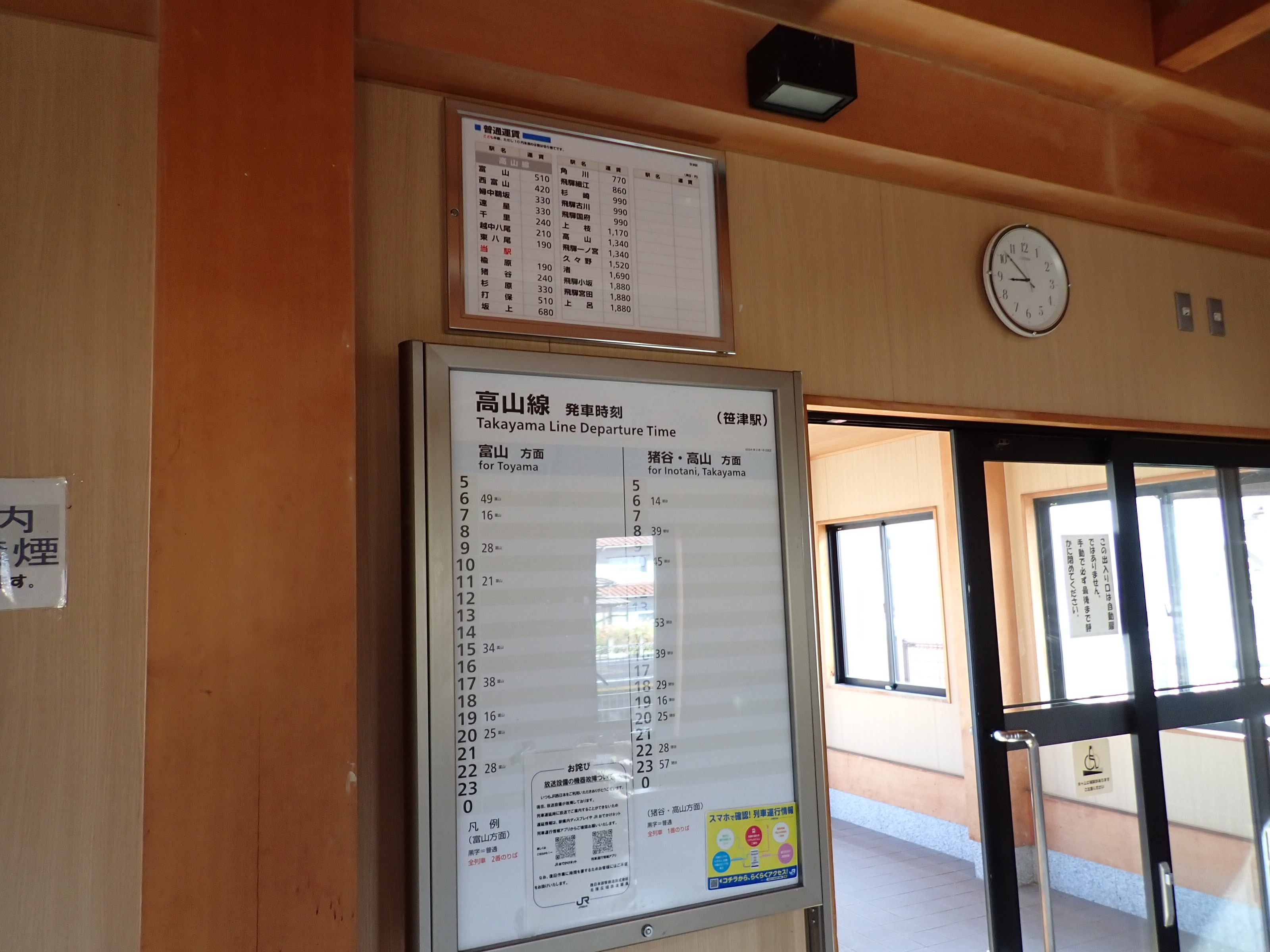 券売機撤去に伴い、時刻表の上に新たに運賃表が設置されました。