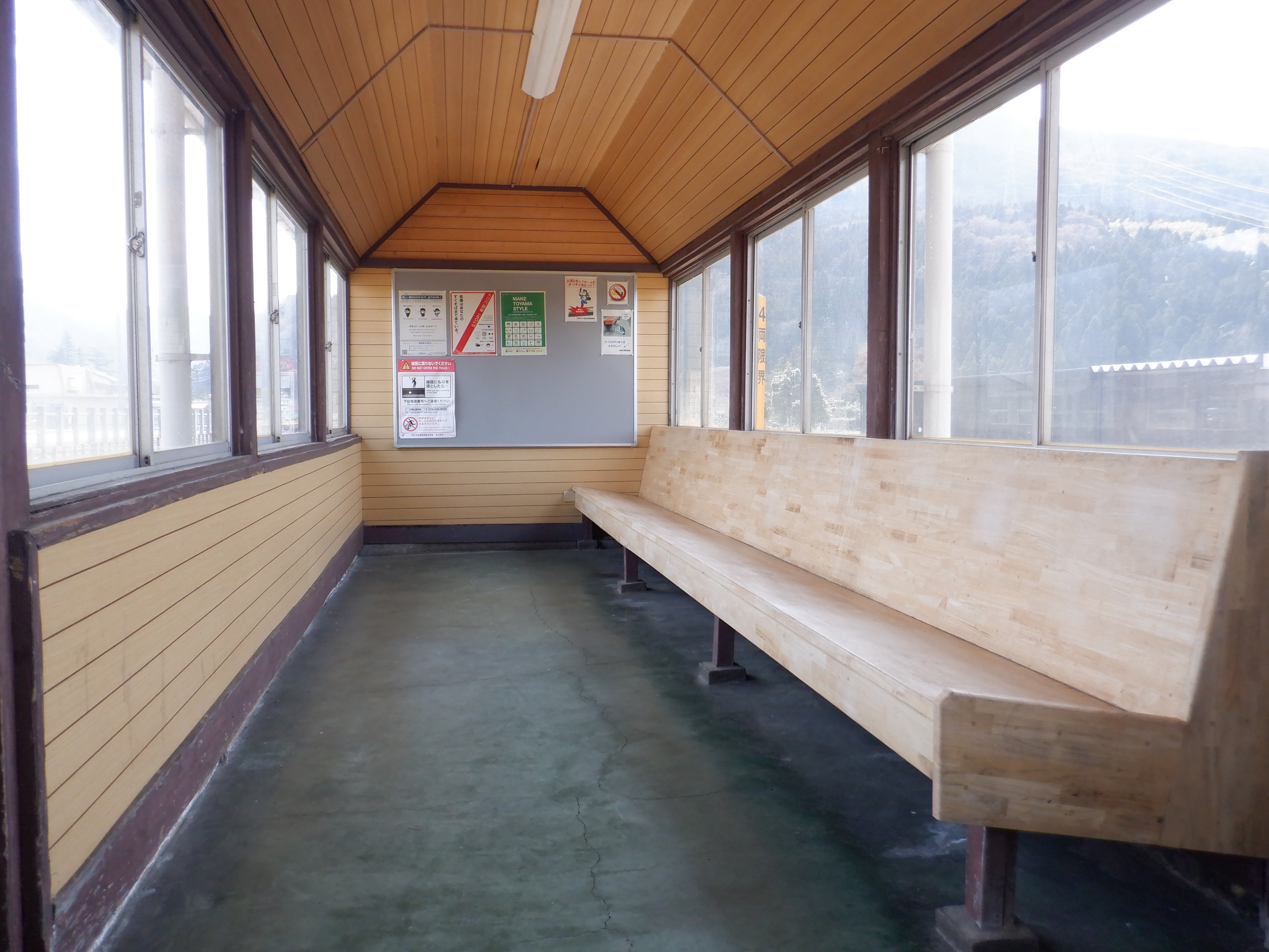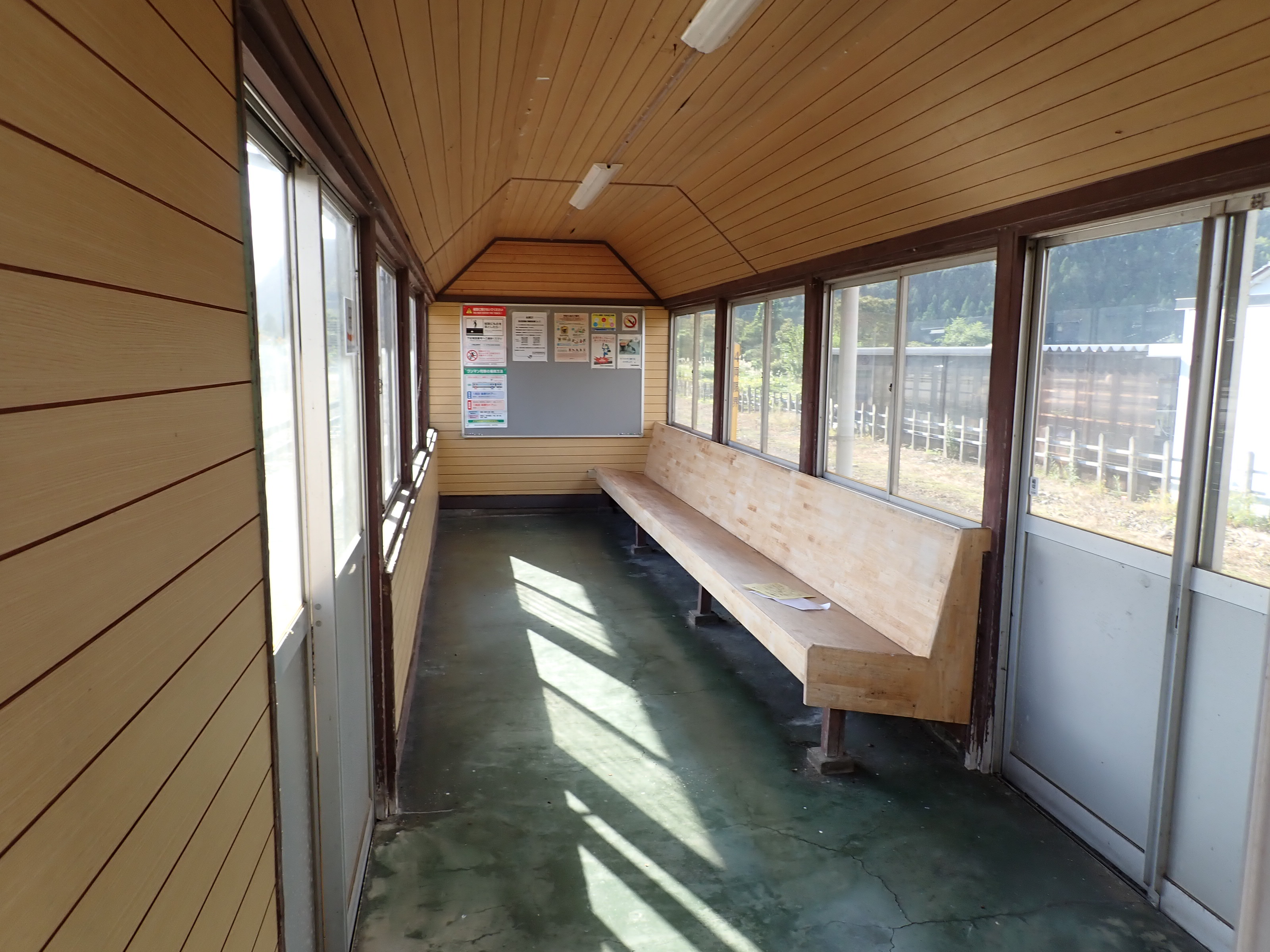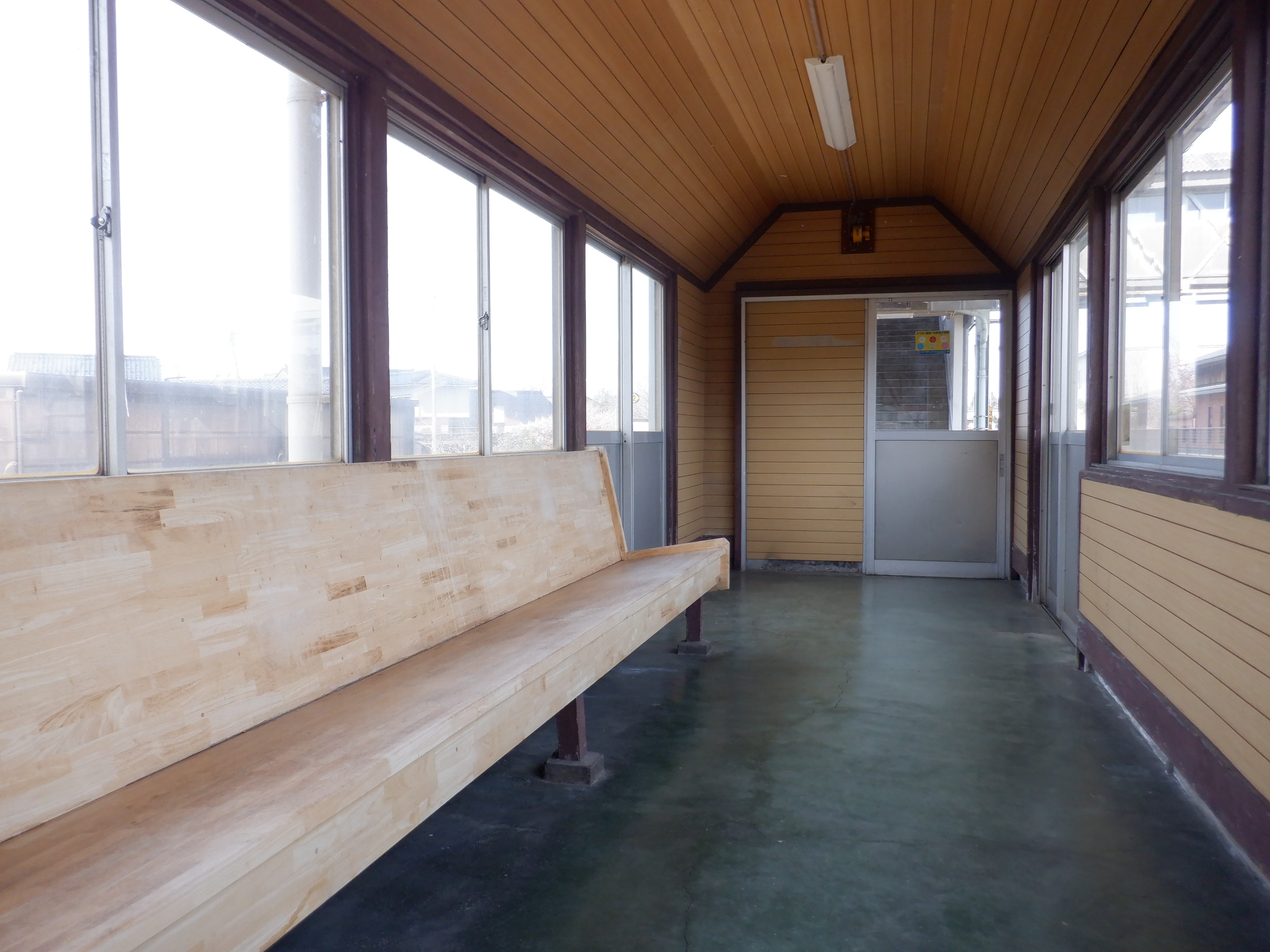 ホームの待合室、中と外の様子。また。財産標。