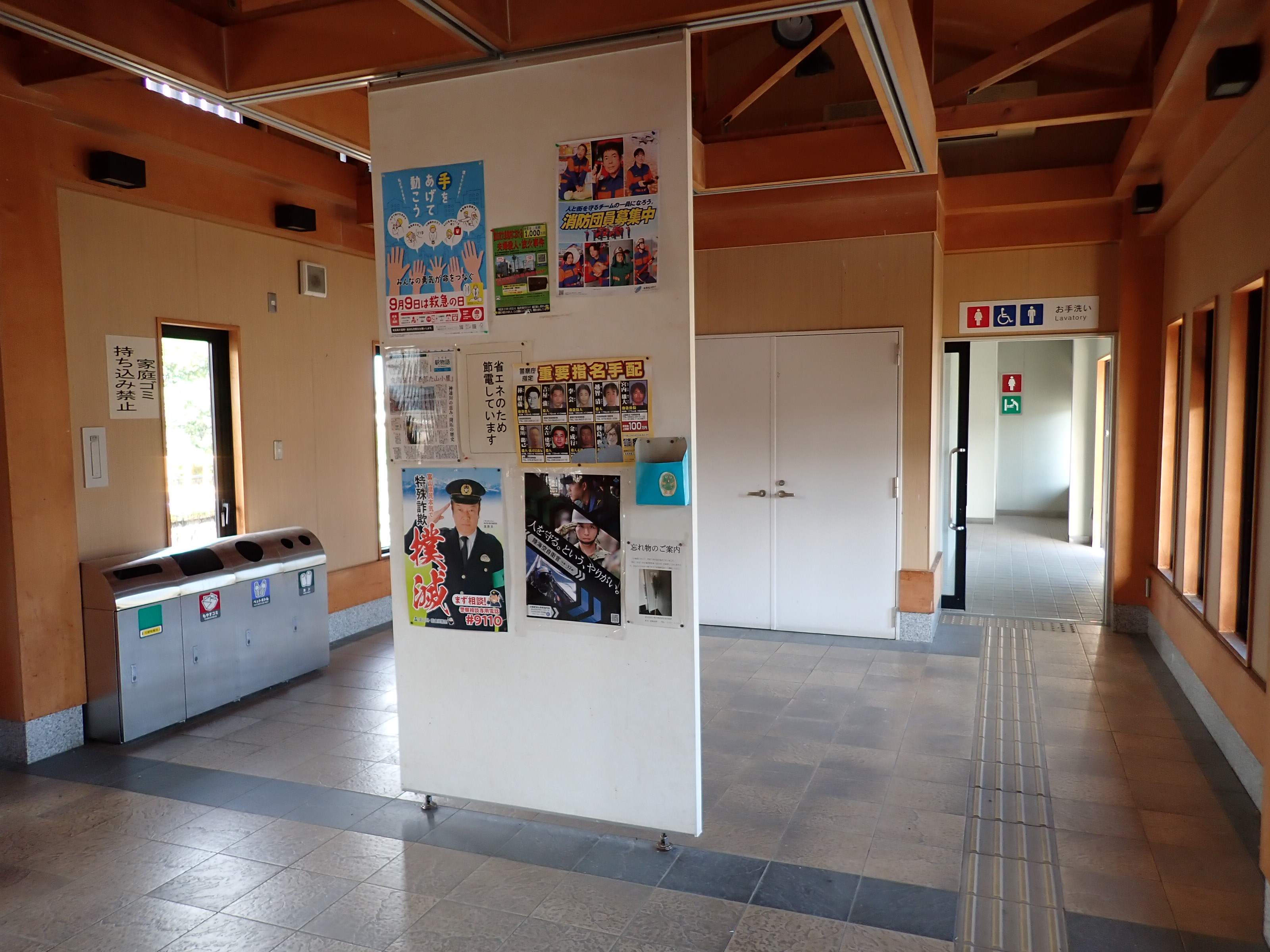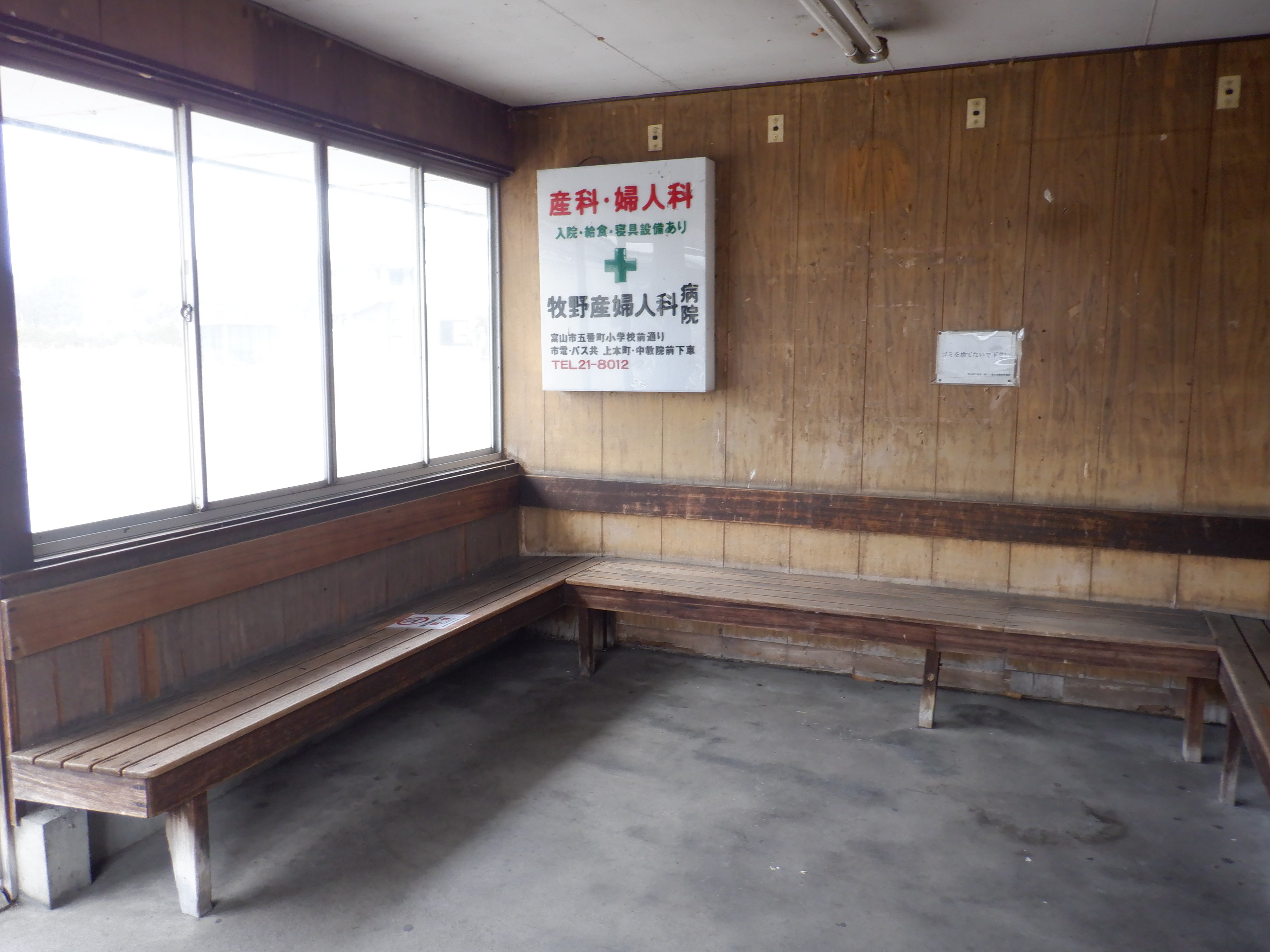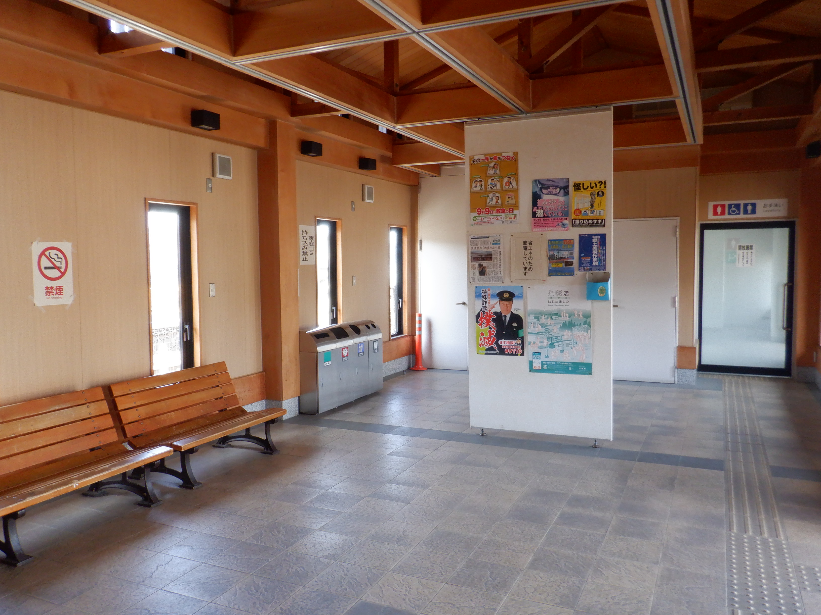 ホームの待合室、中と外の様子。また。財産標。