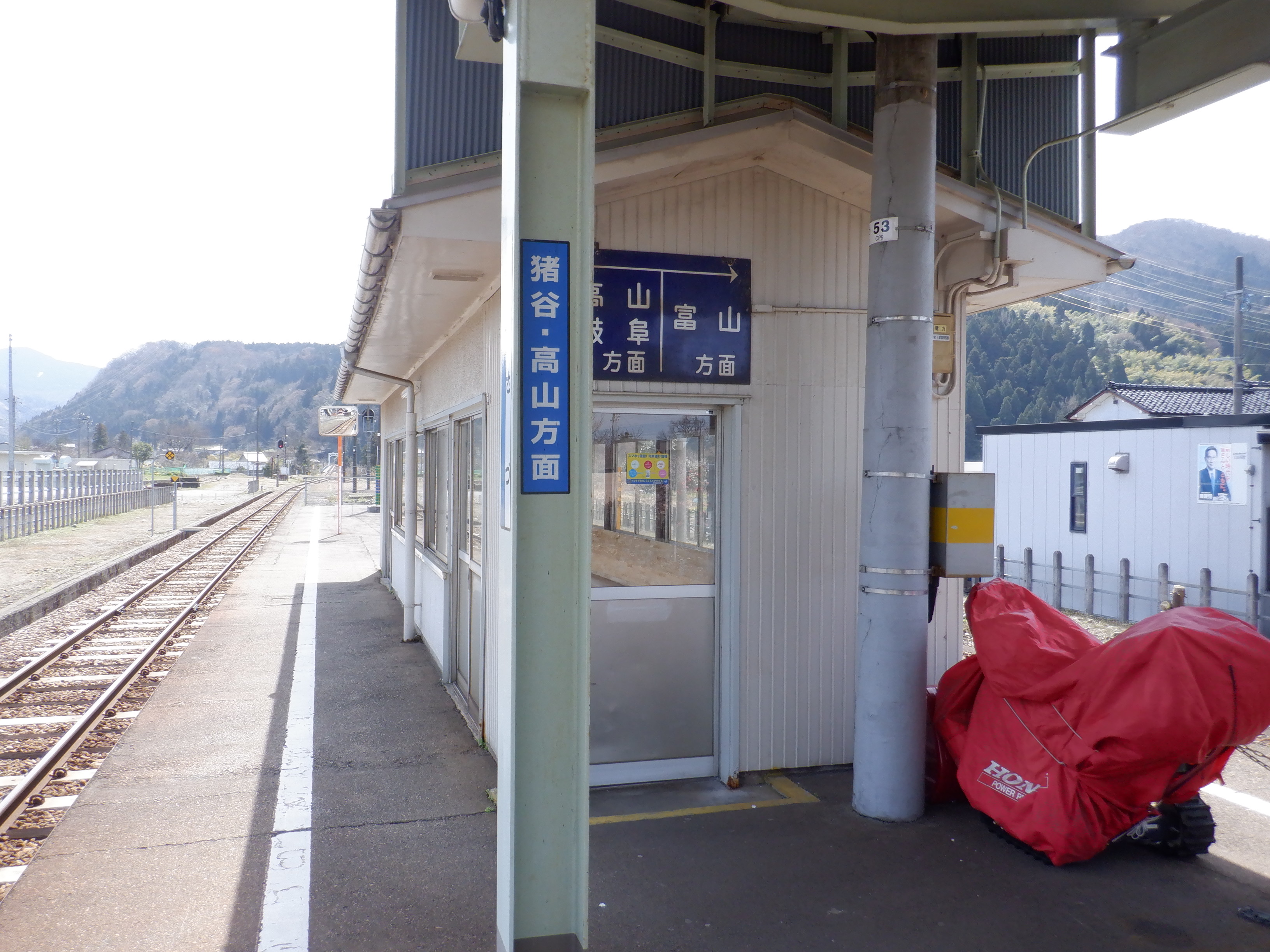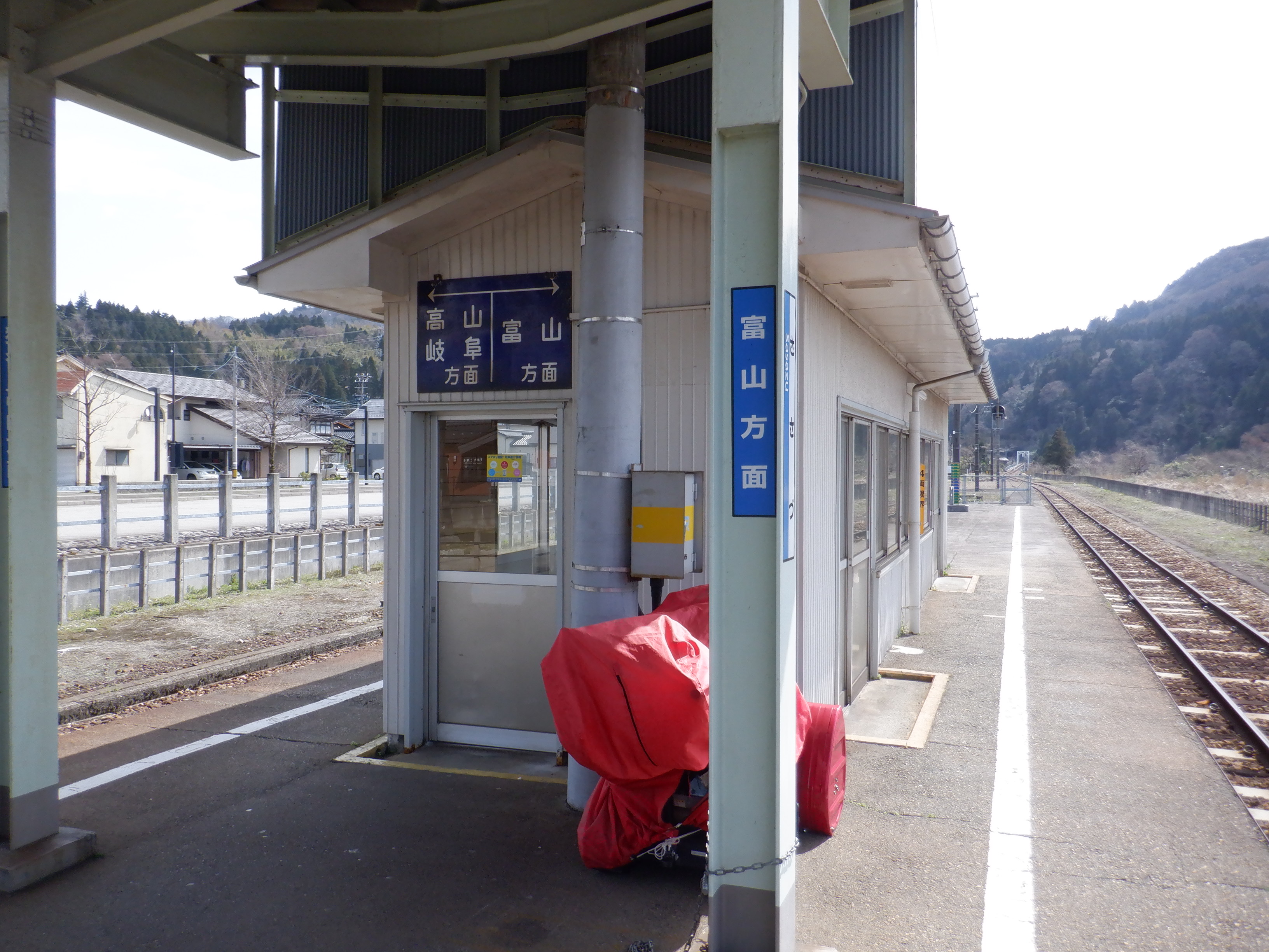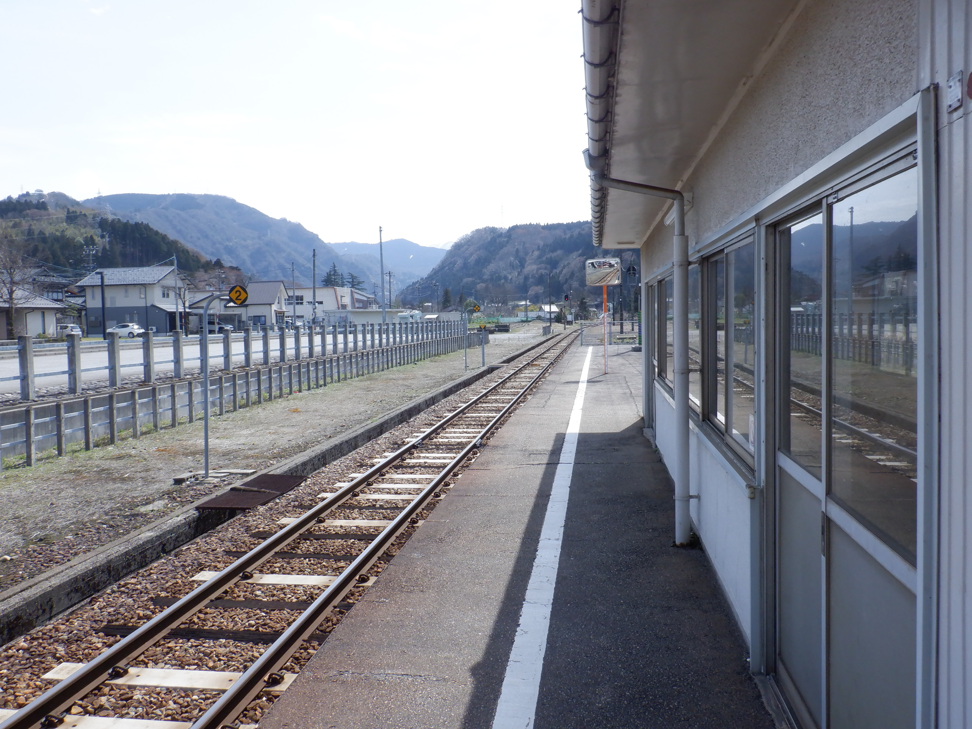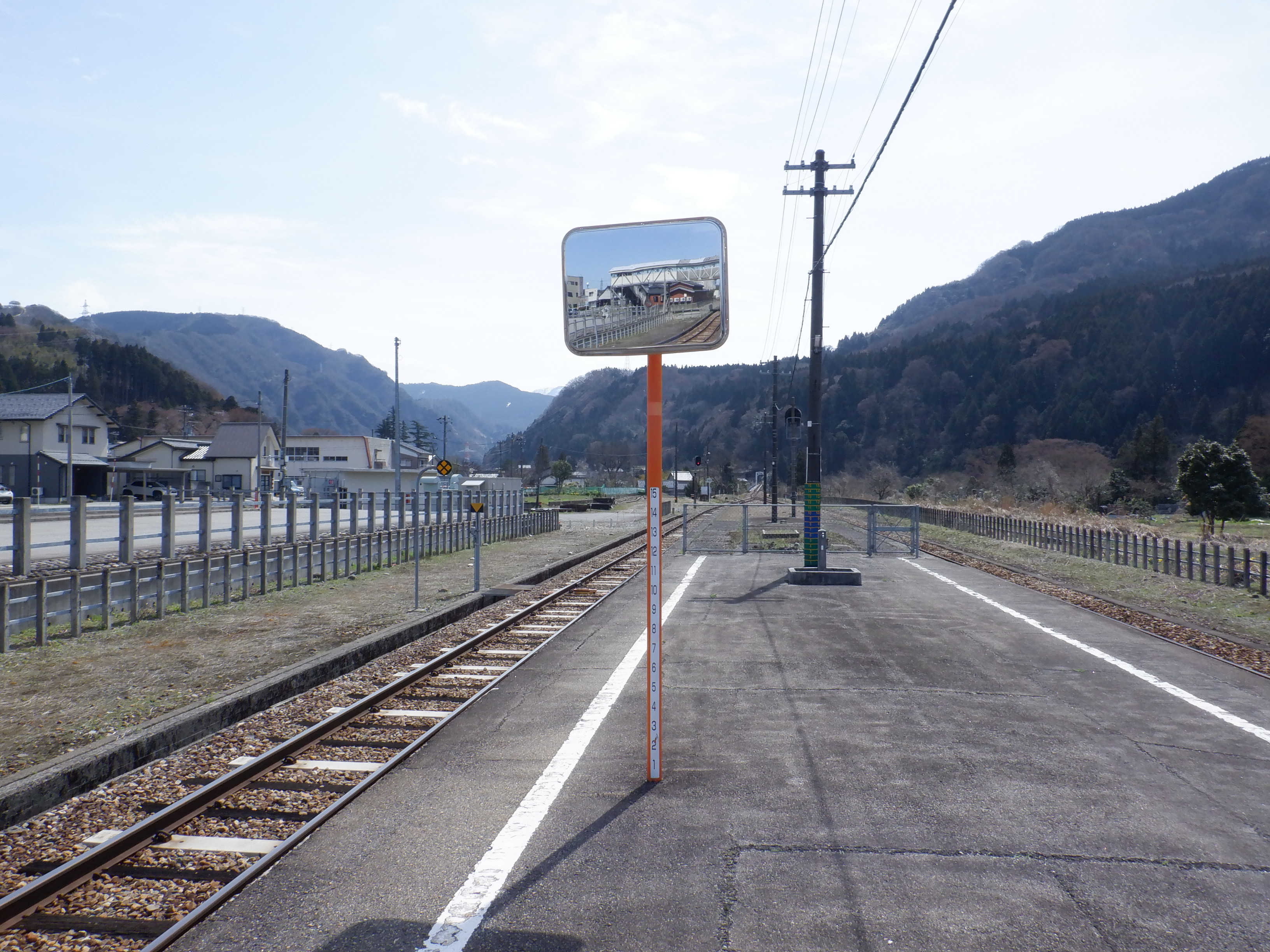 猪谷方面のホームのワンマンミラー。