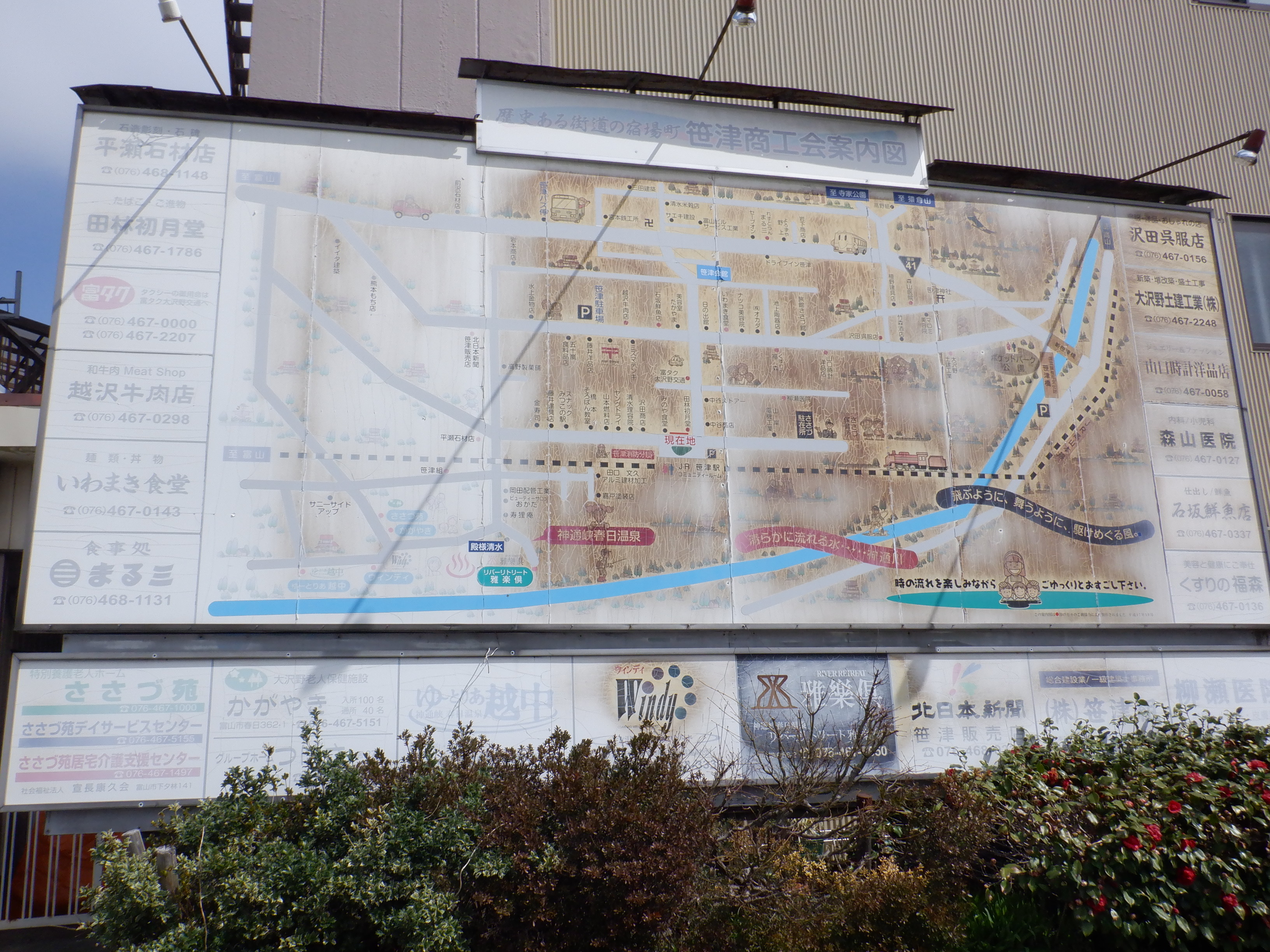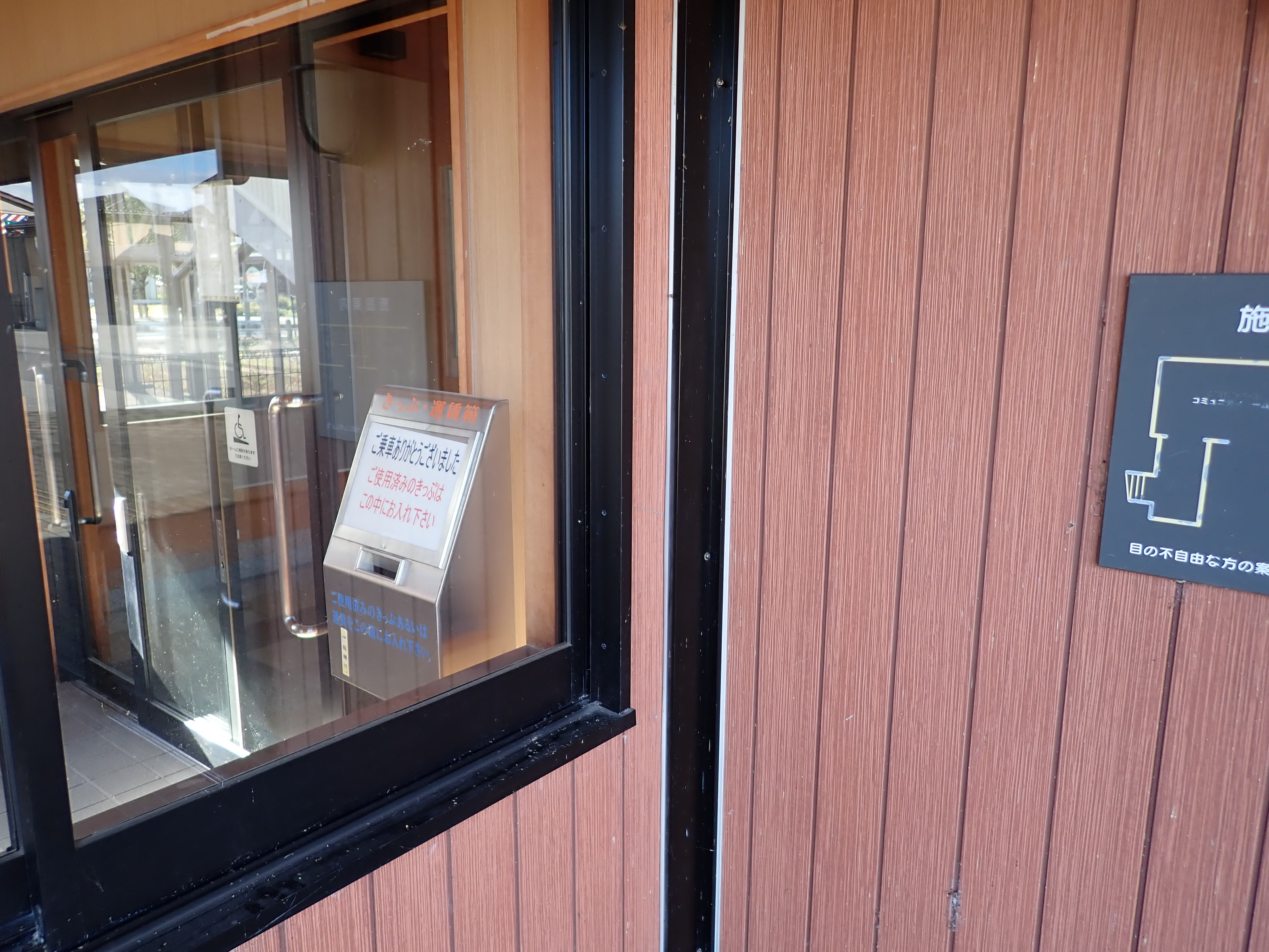駅舎外にある施設案内。