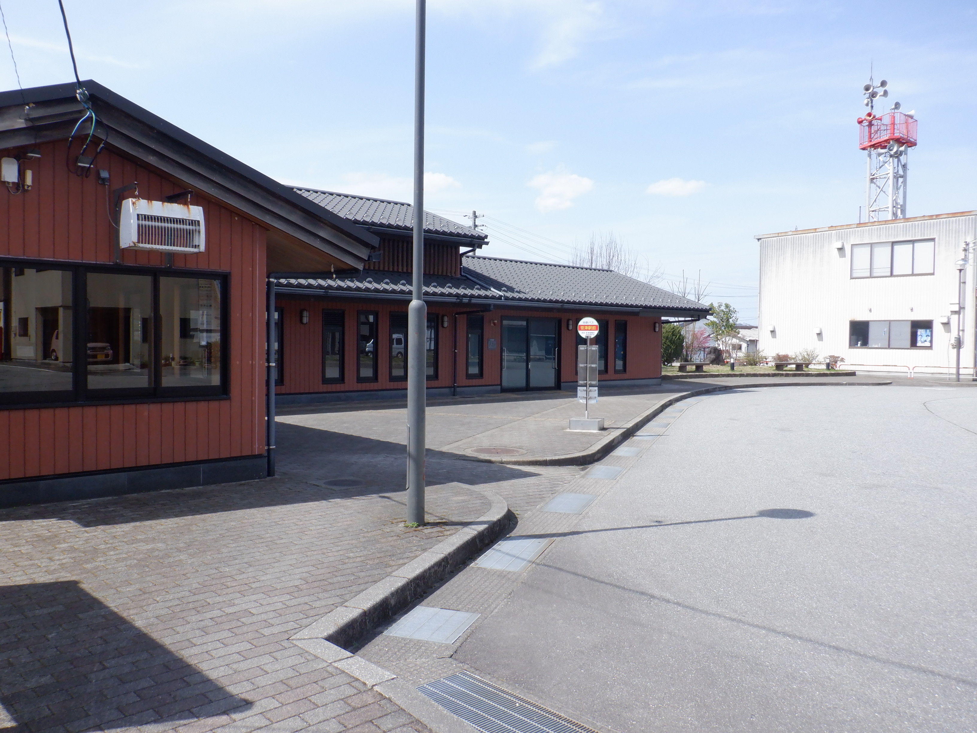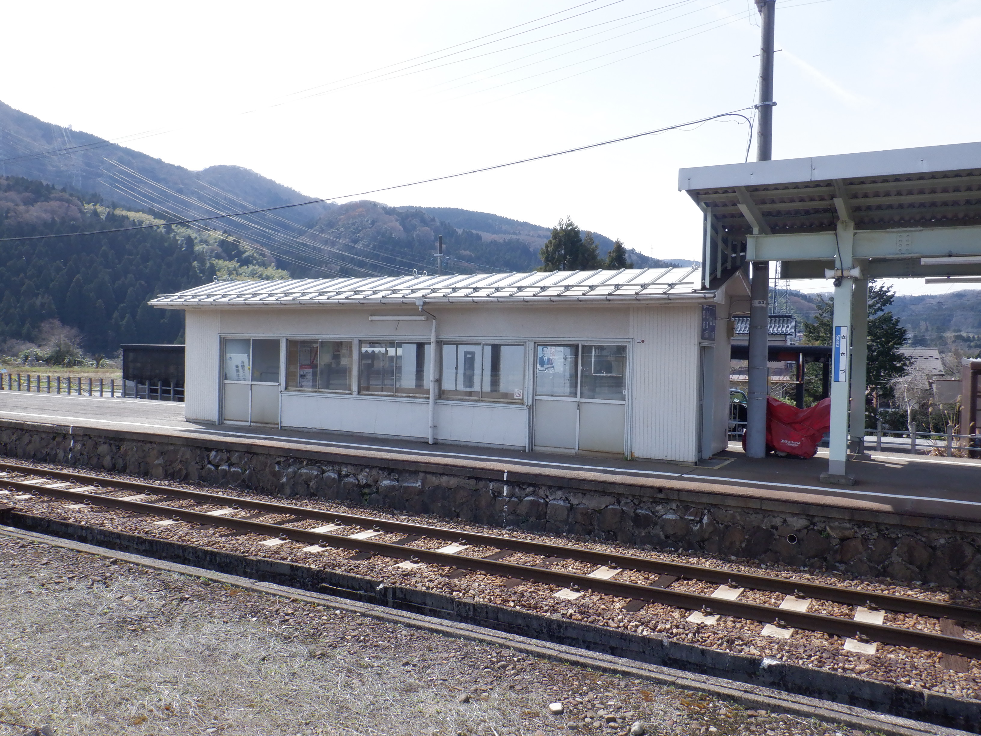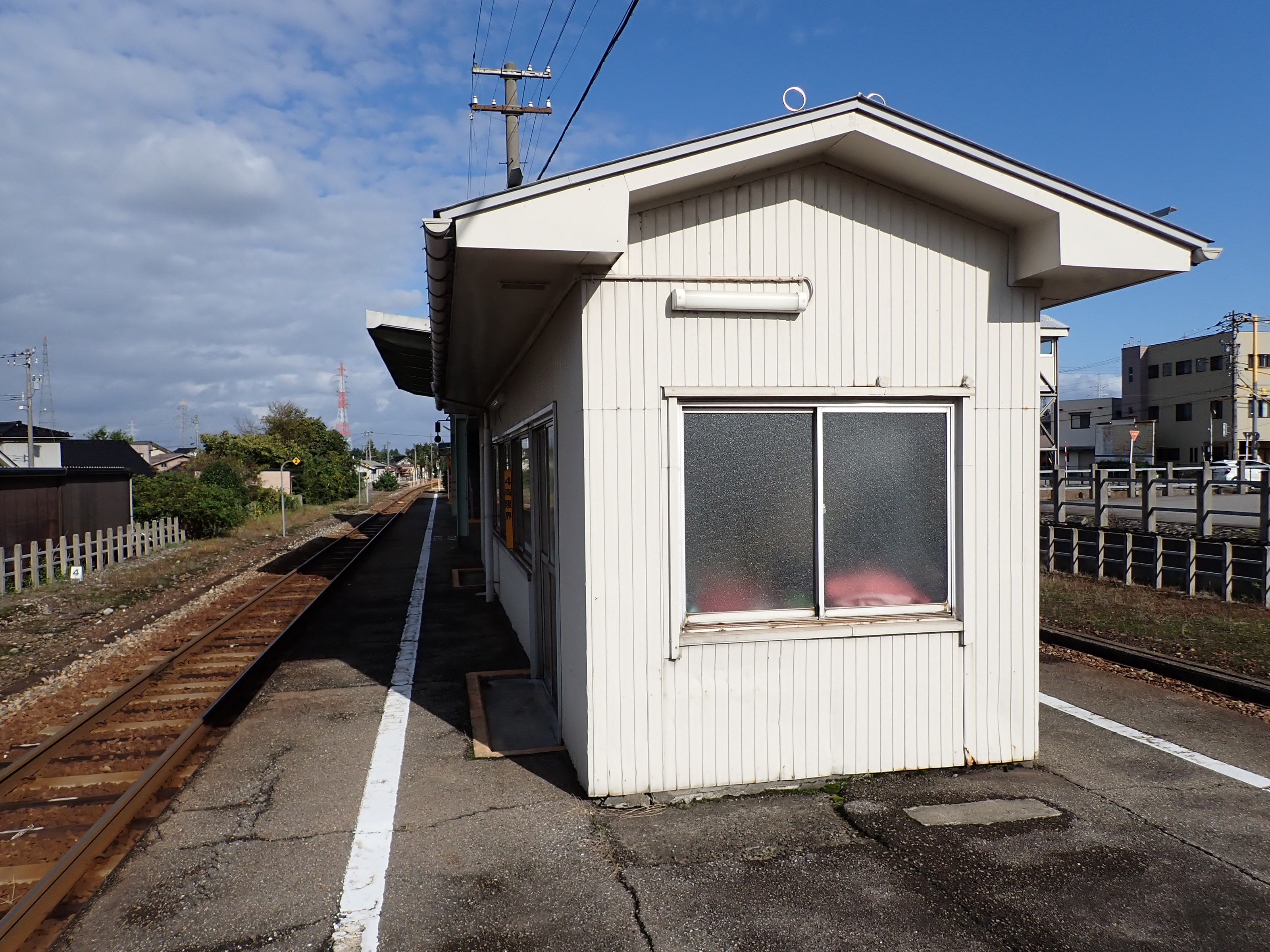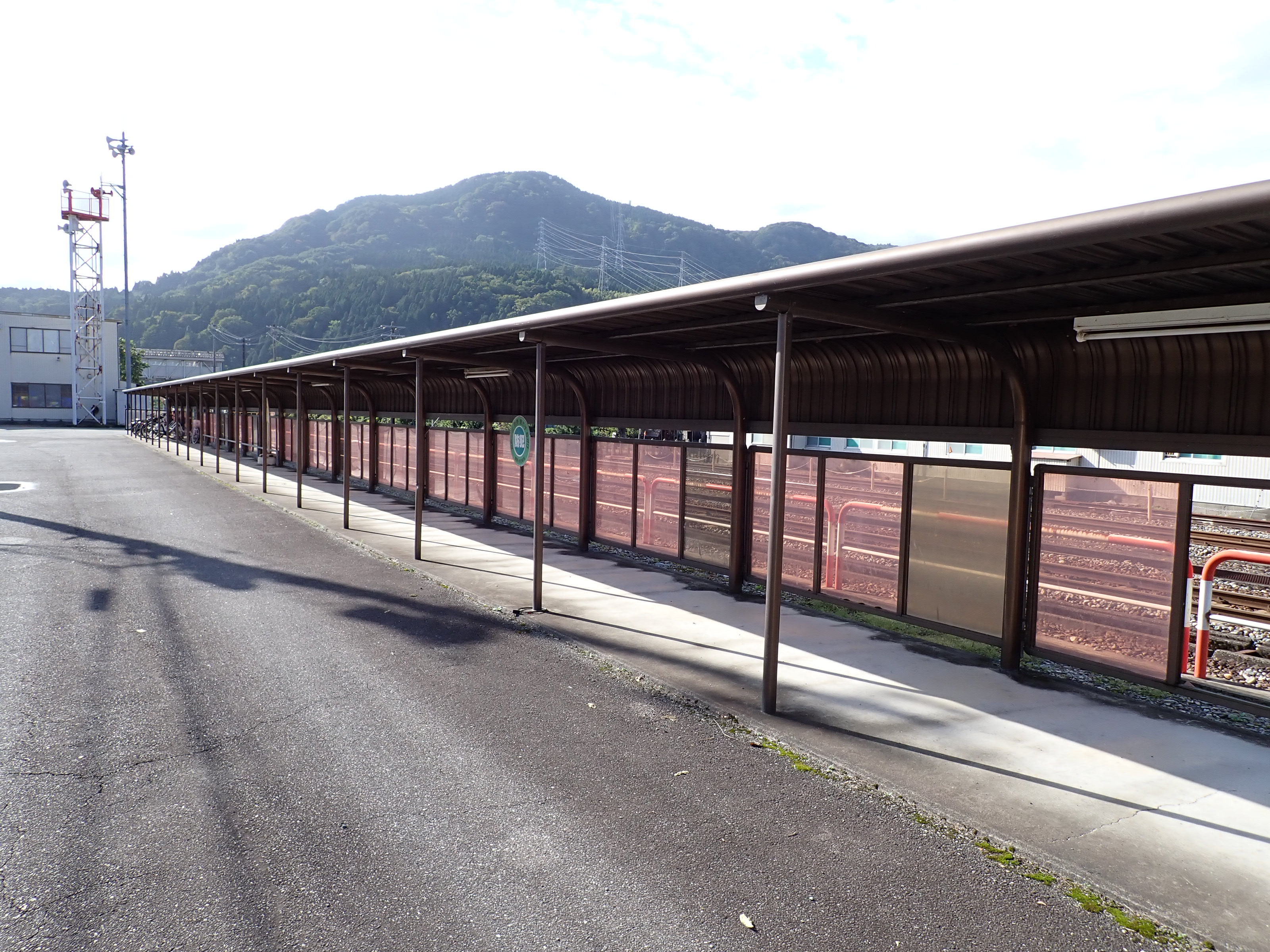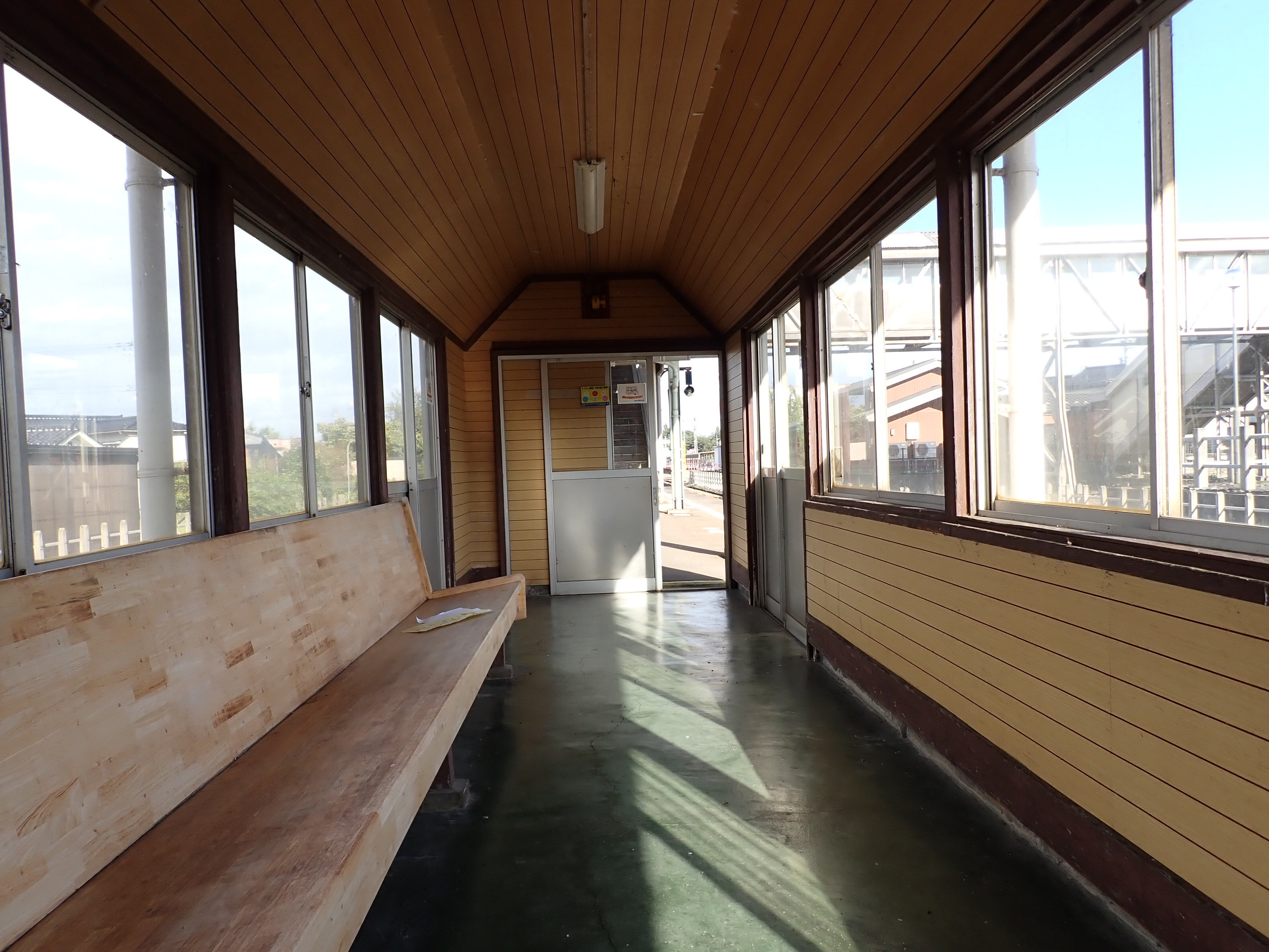 駅舎横から見たホームの待合室。