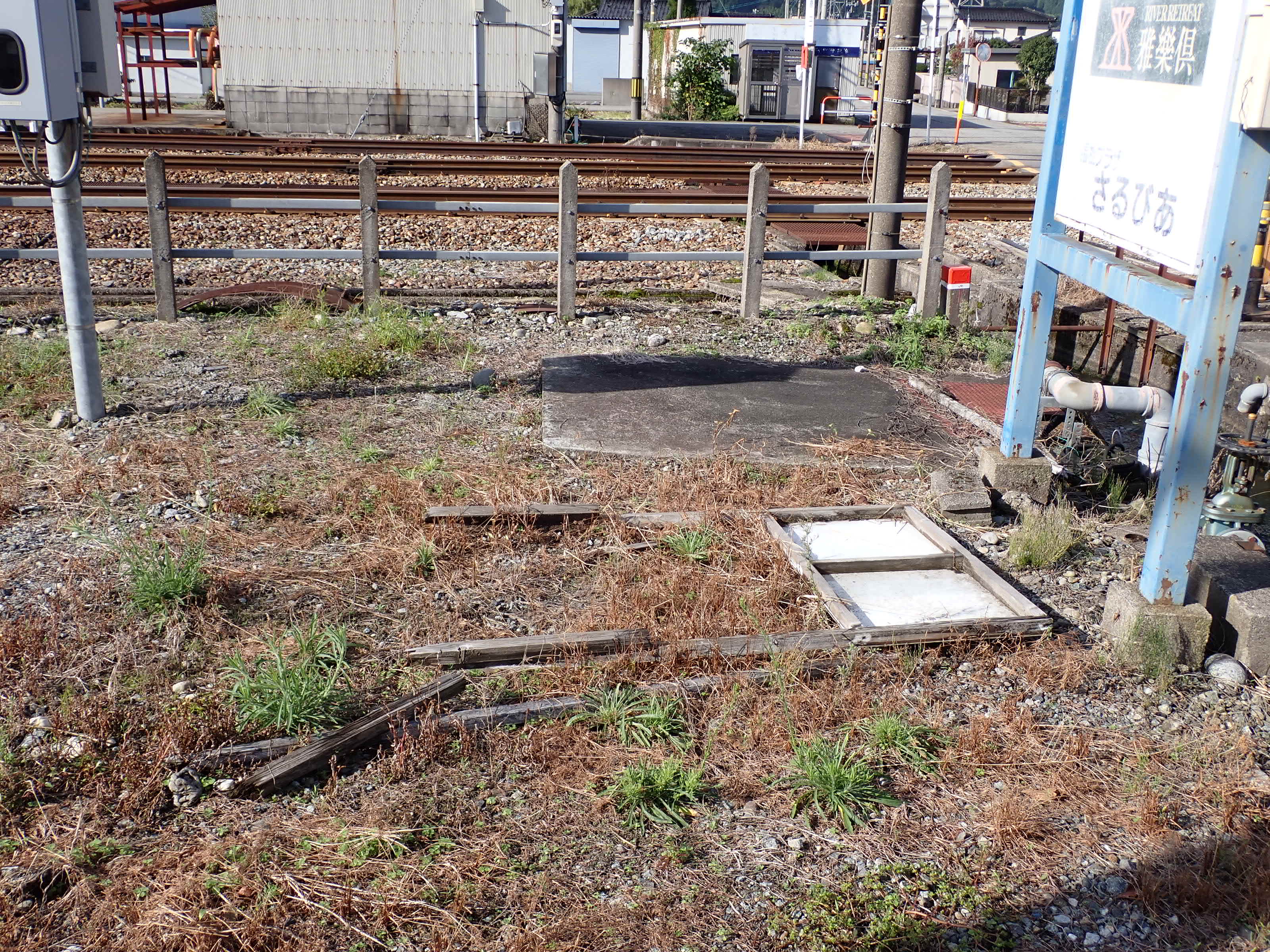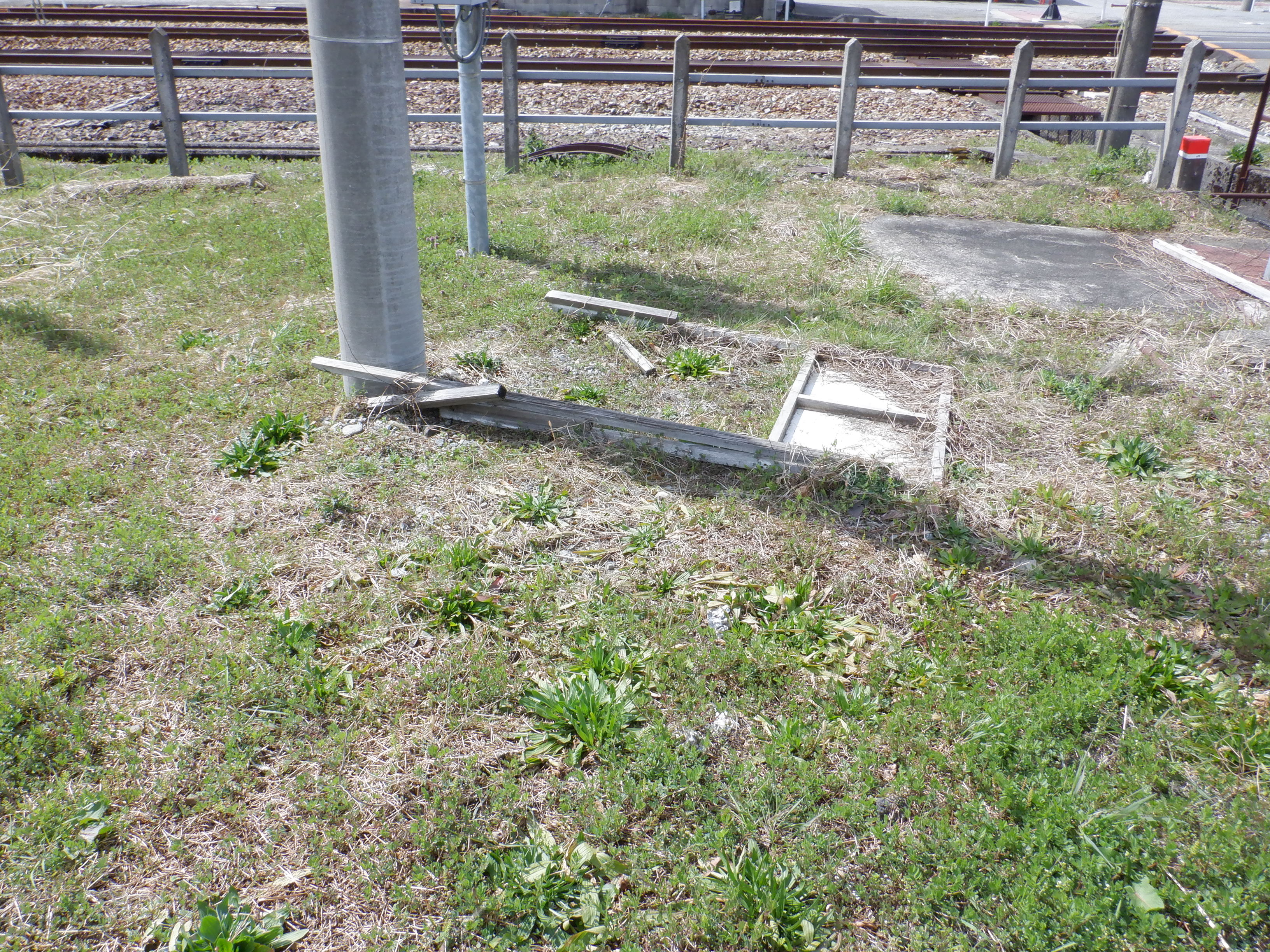 富山地鉄の管理地とされている部分で、その看板らしきものが倒れていました。