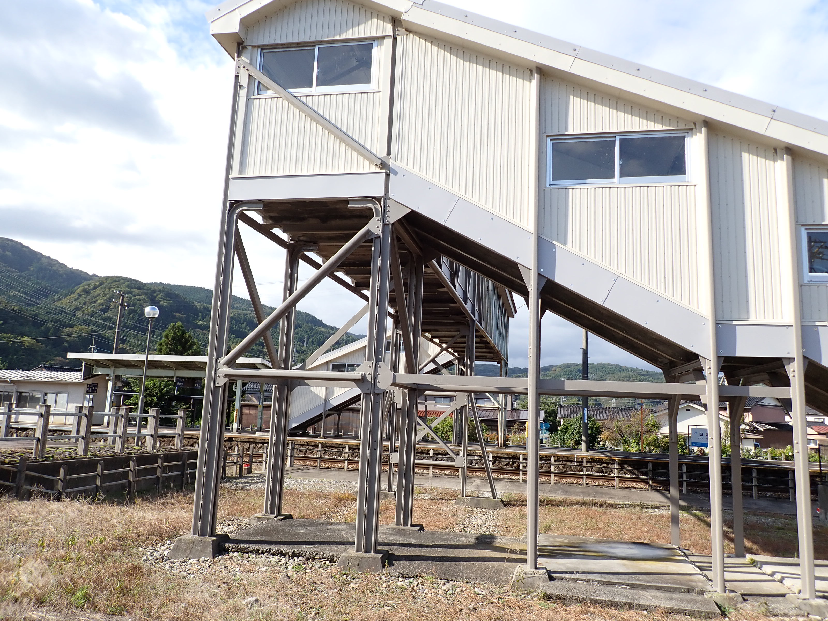 駅舎横から見た跨線橋。