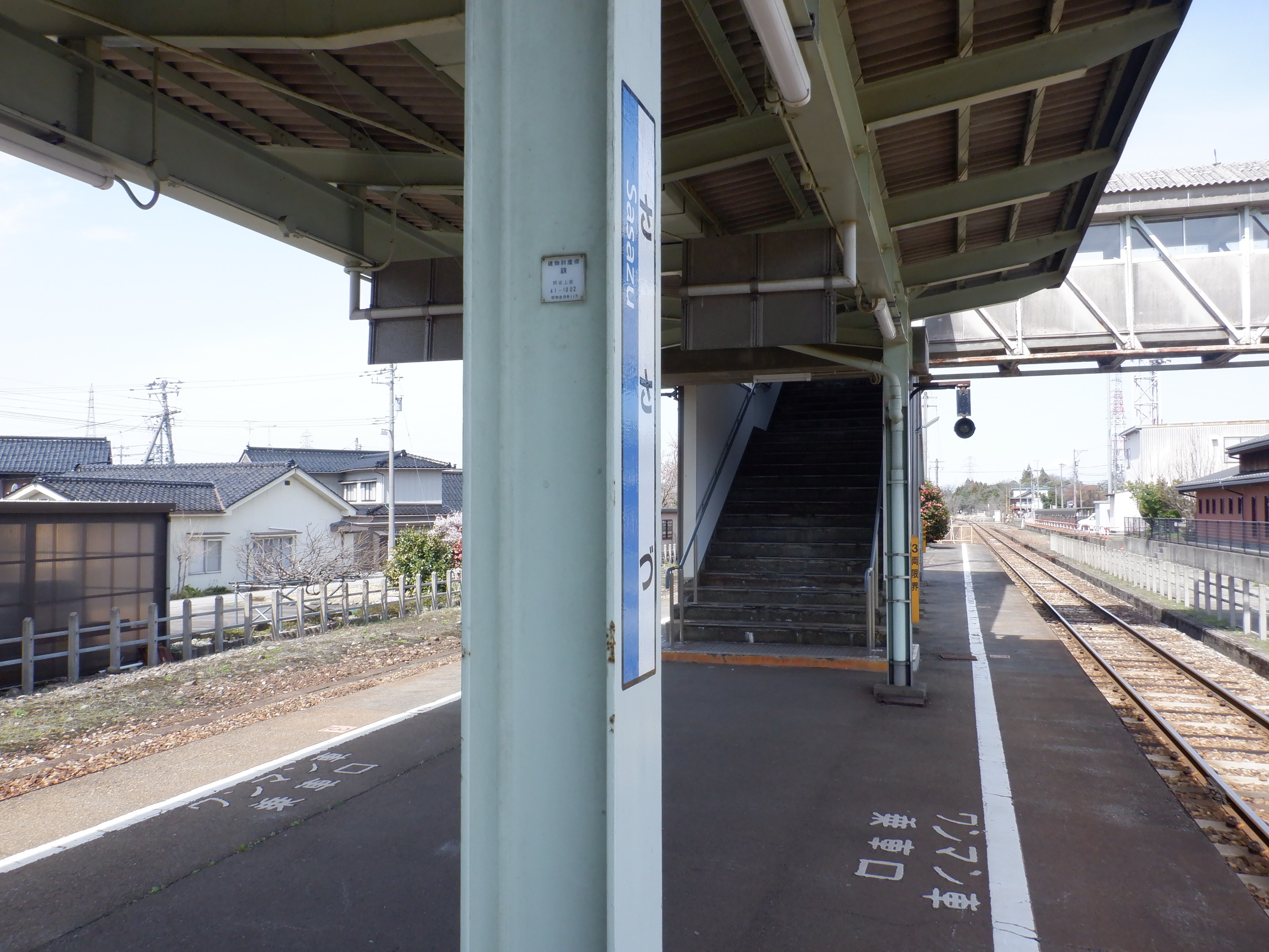 ホーム側跨線橋階段の壁が新しくなり、そこにあった駅名標が撤去されていました。その他、久しぶりなので一通り撮っています。