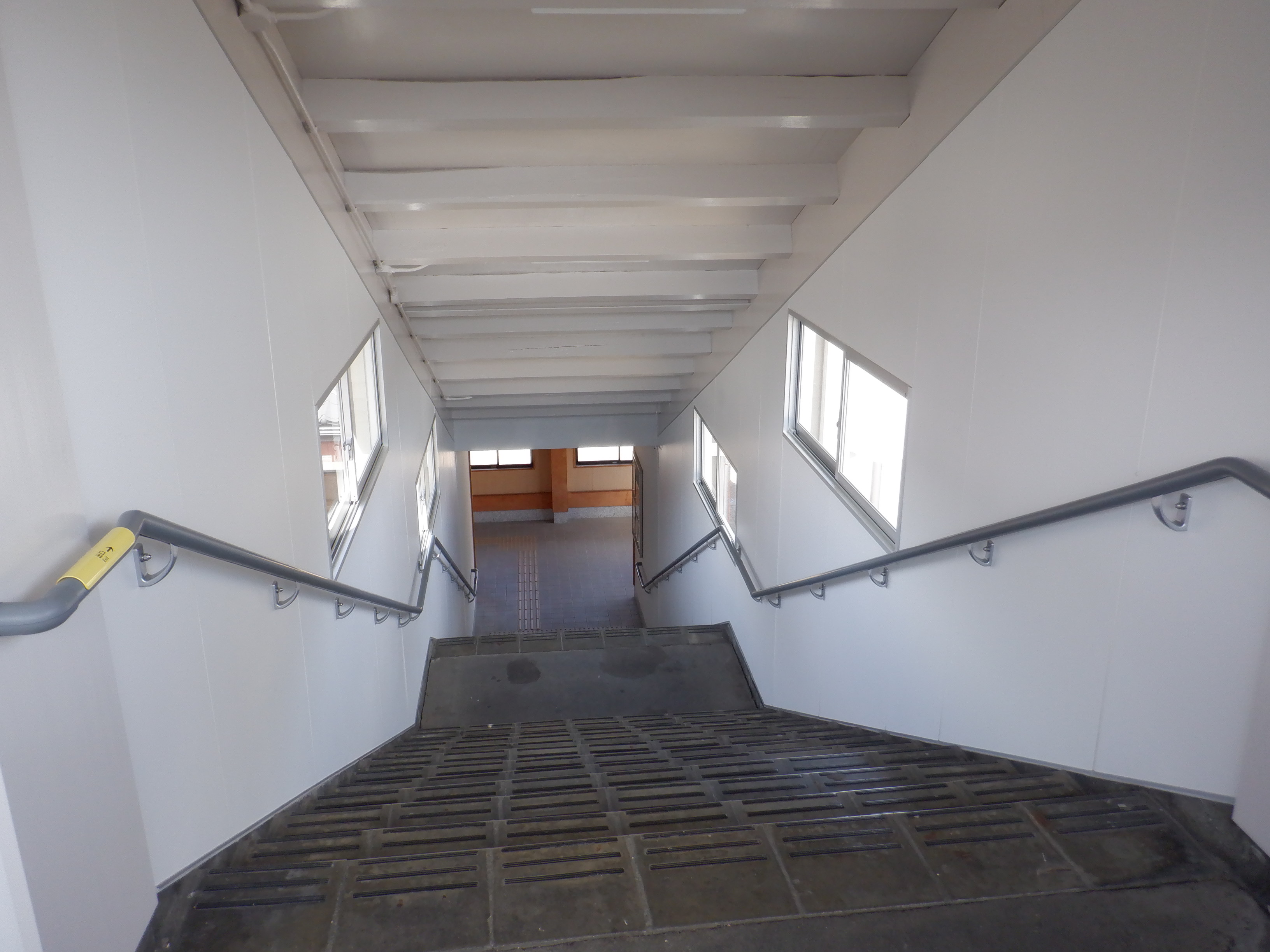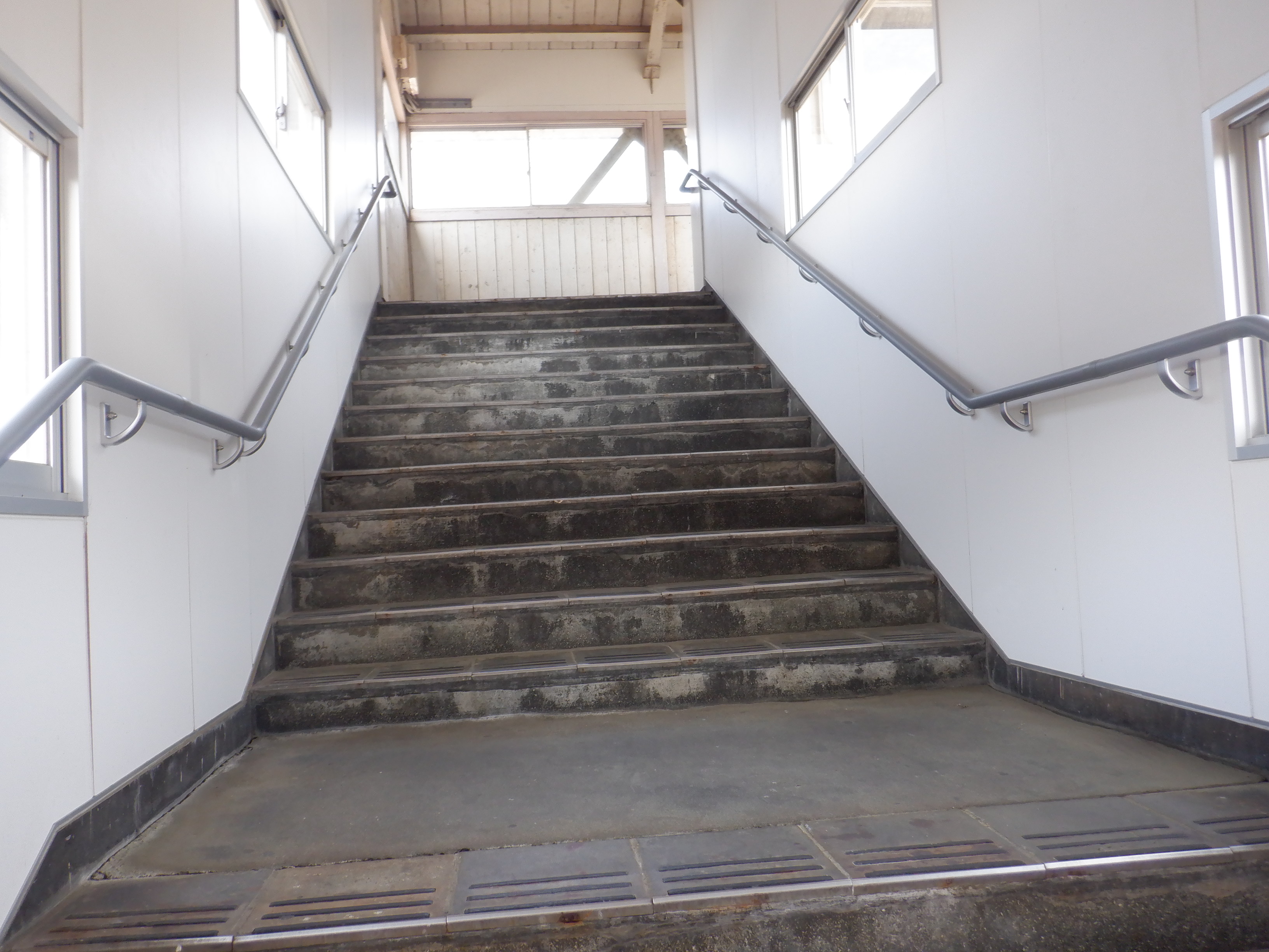 駅舎側の跨線橋階段。こちらも新しくなっています。