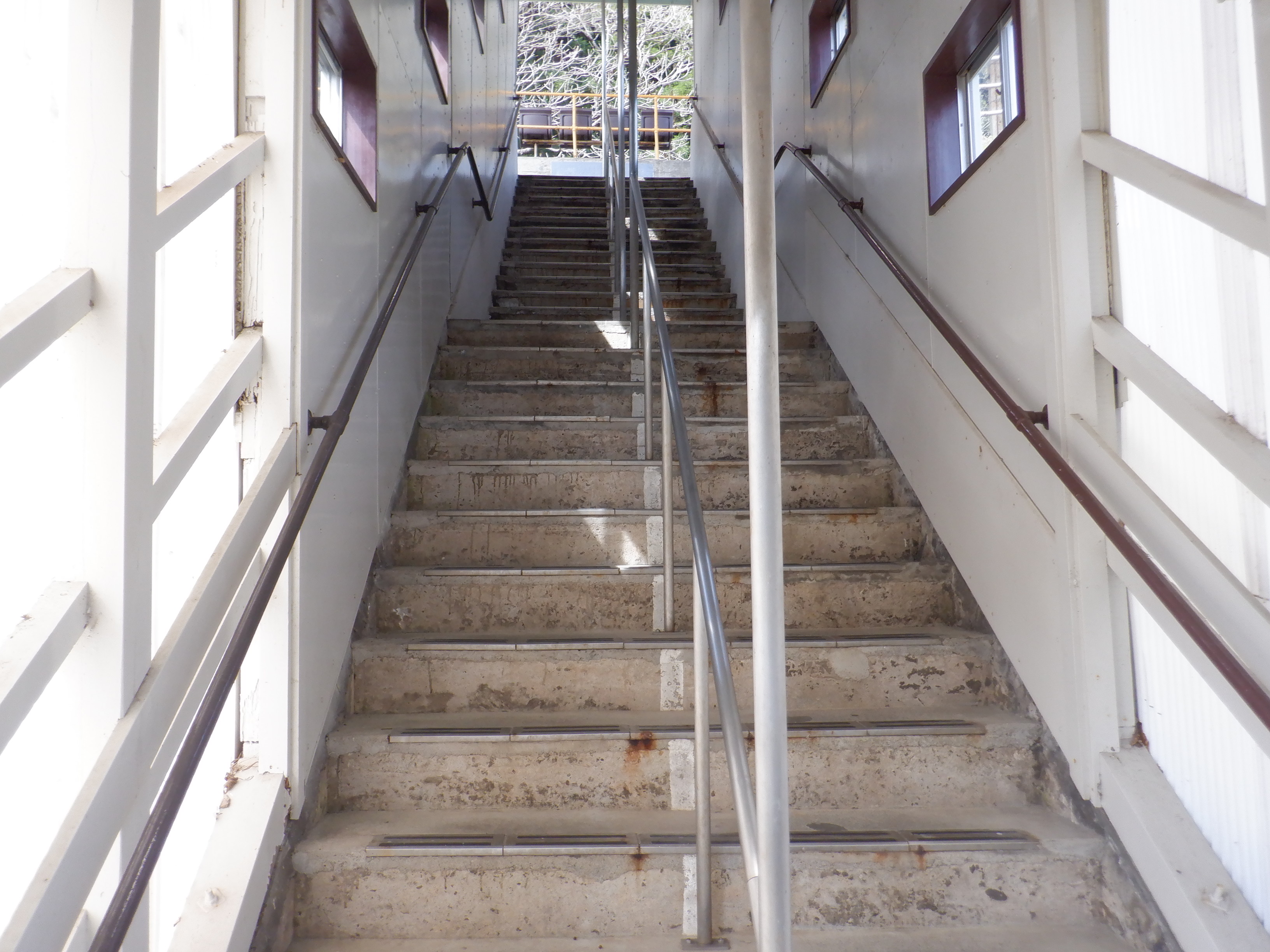 駅舎への階段とそこにある財産標。