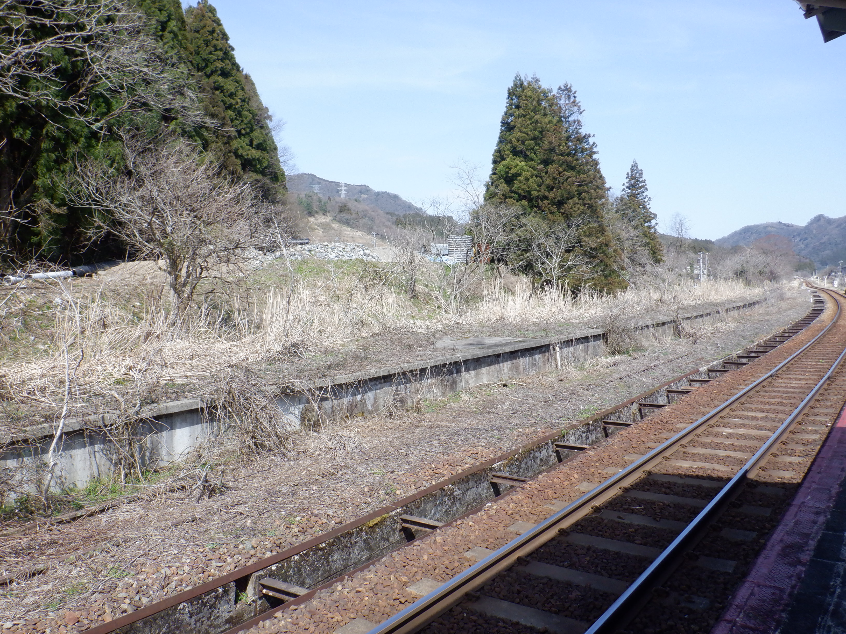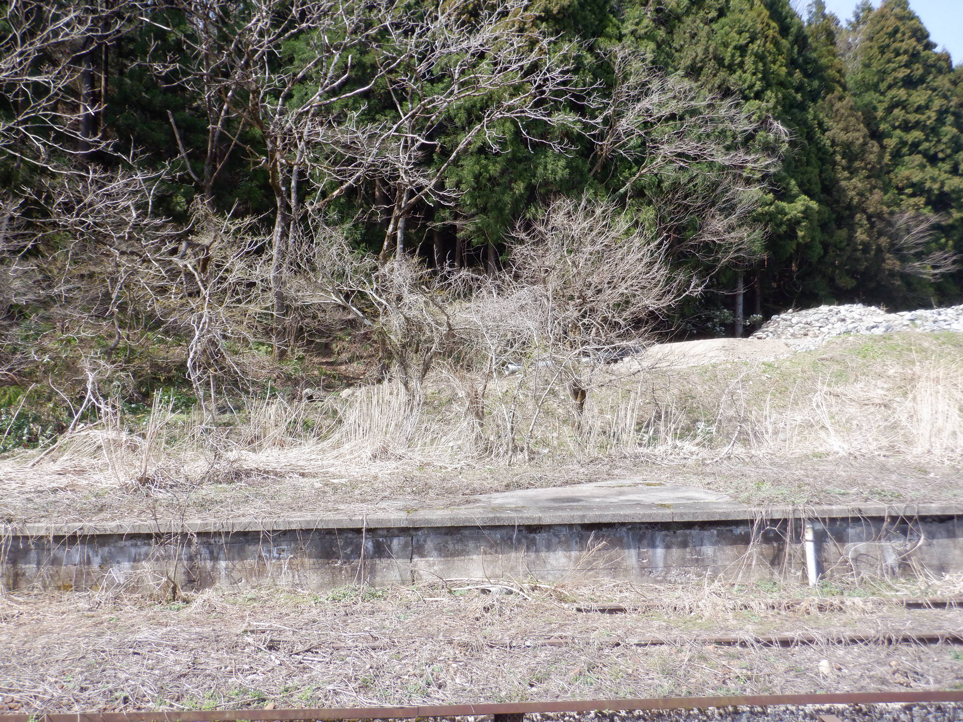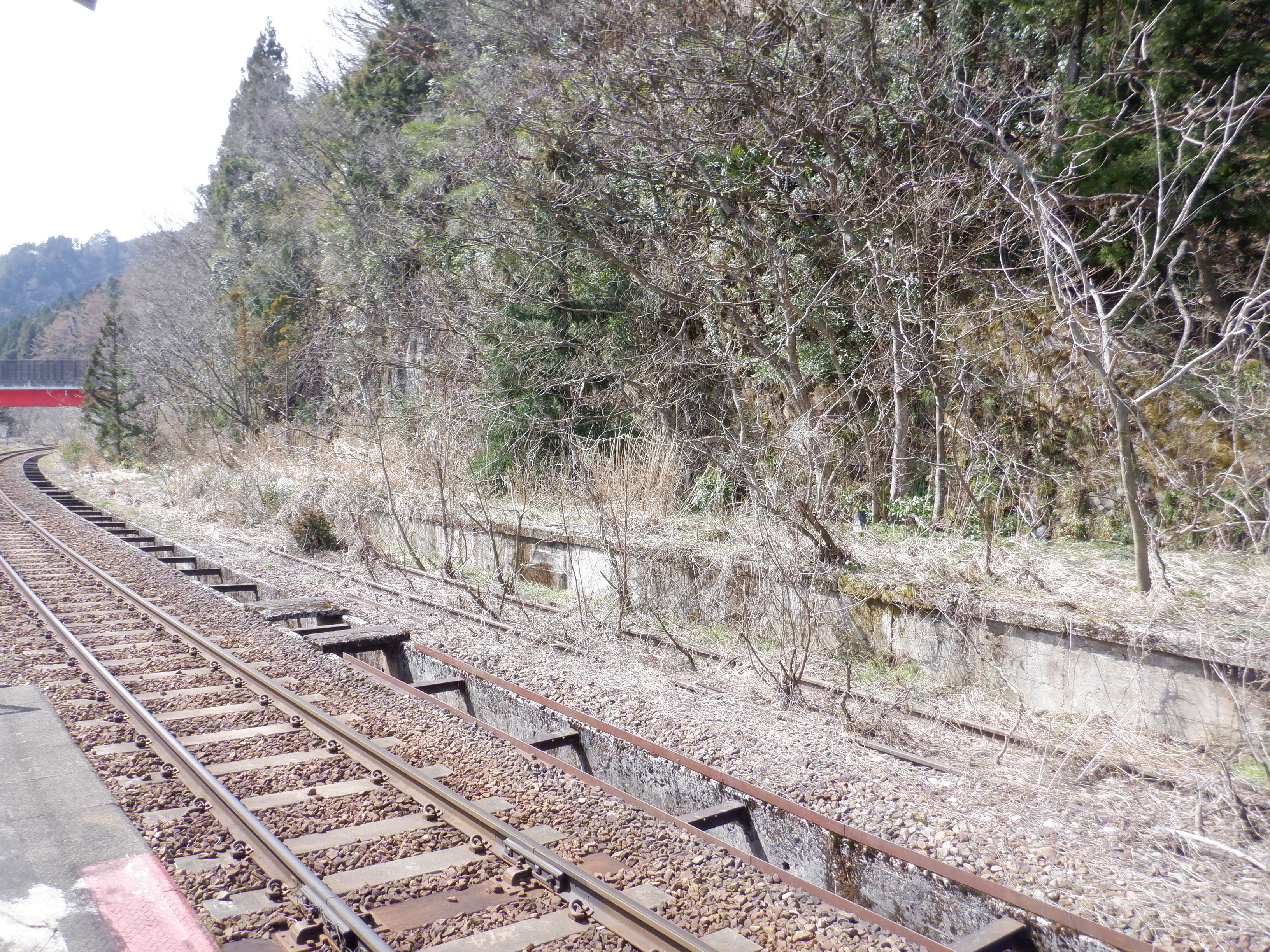 現在は使用されていない反対側のホーム。3月でホームがよく見える頃なので改めて全体を撮ってあります。