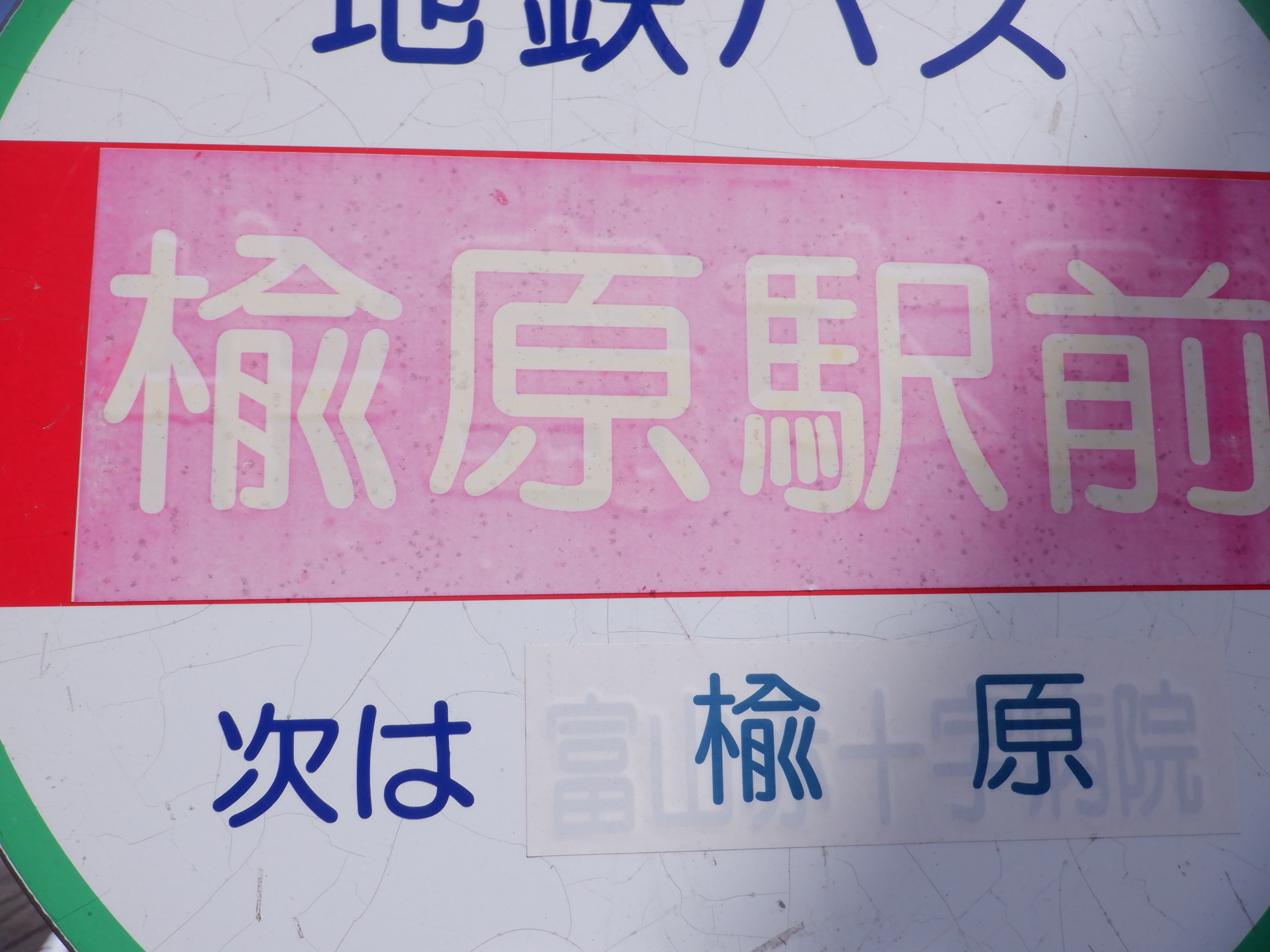 駅前のバス停。他のバス停だったものを再利用しているようです。