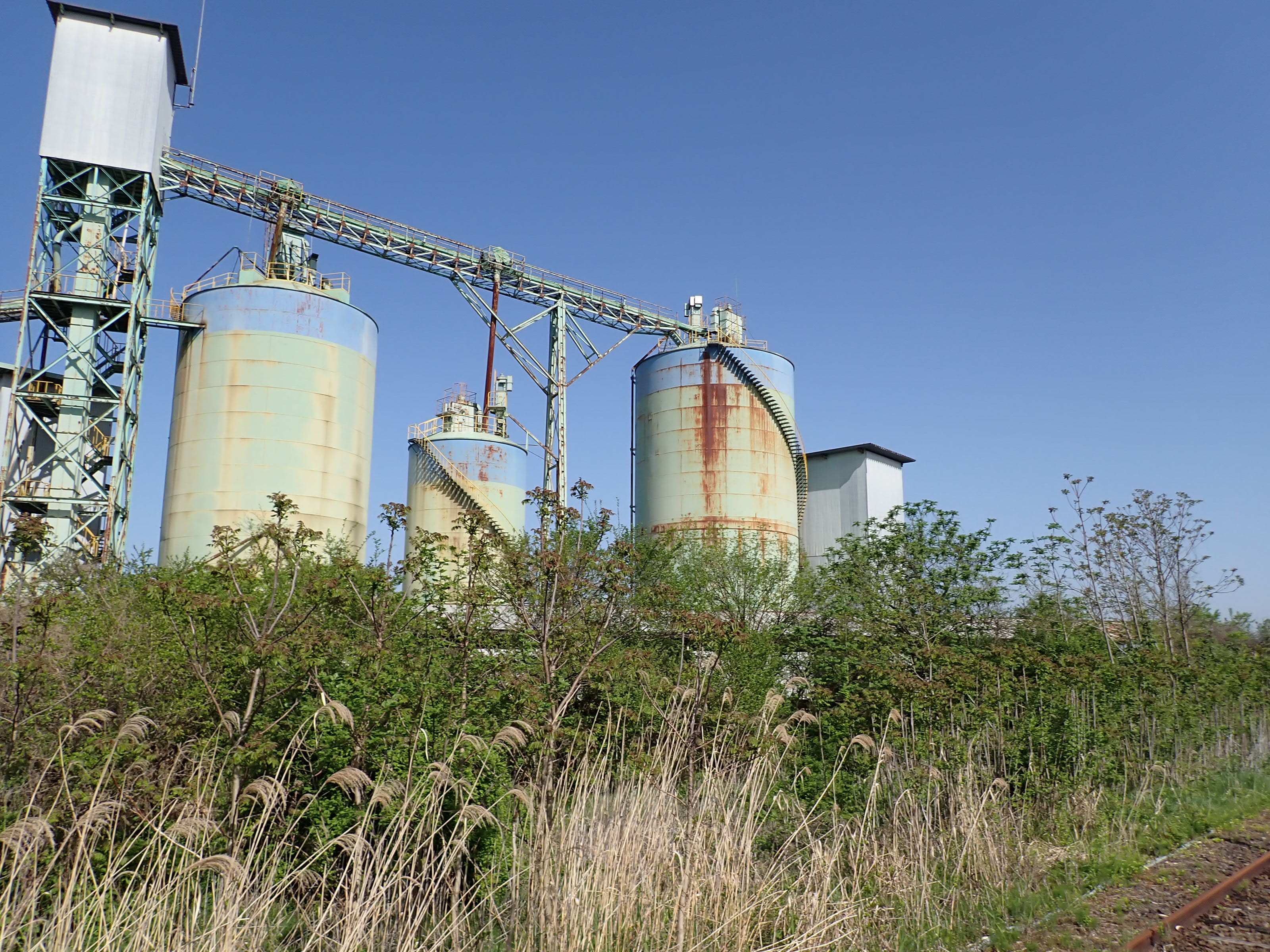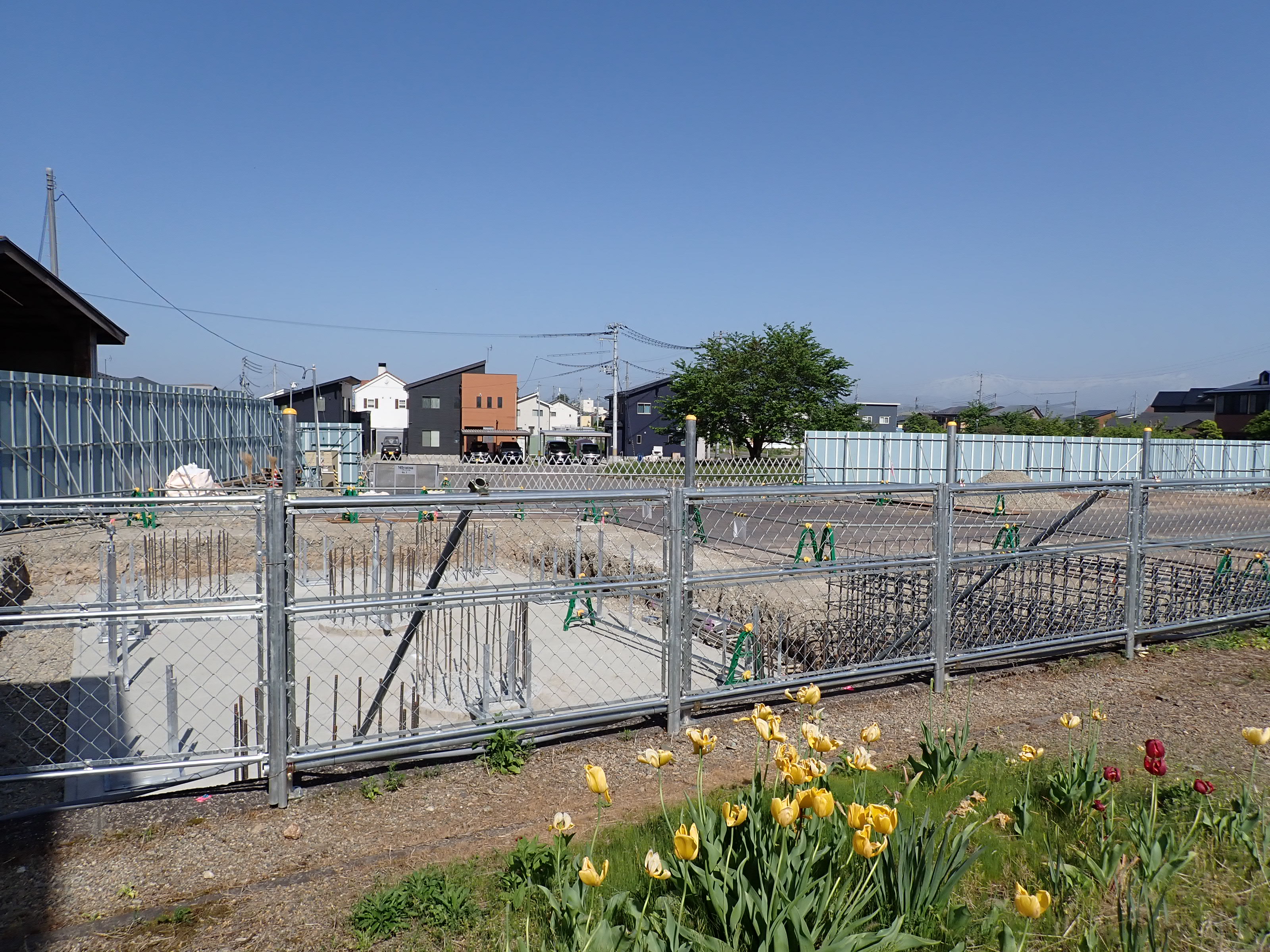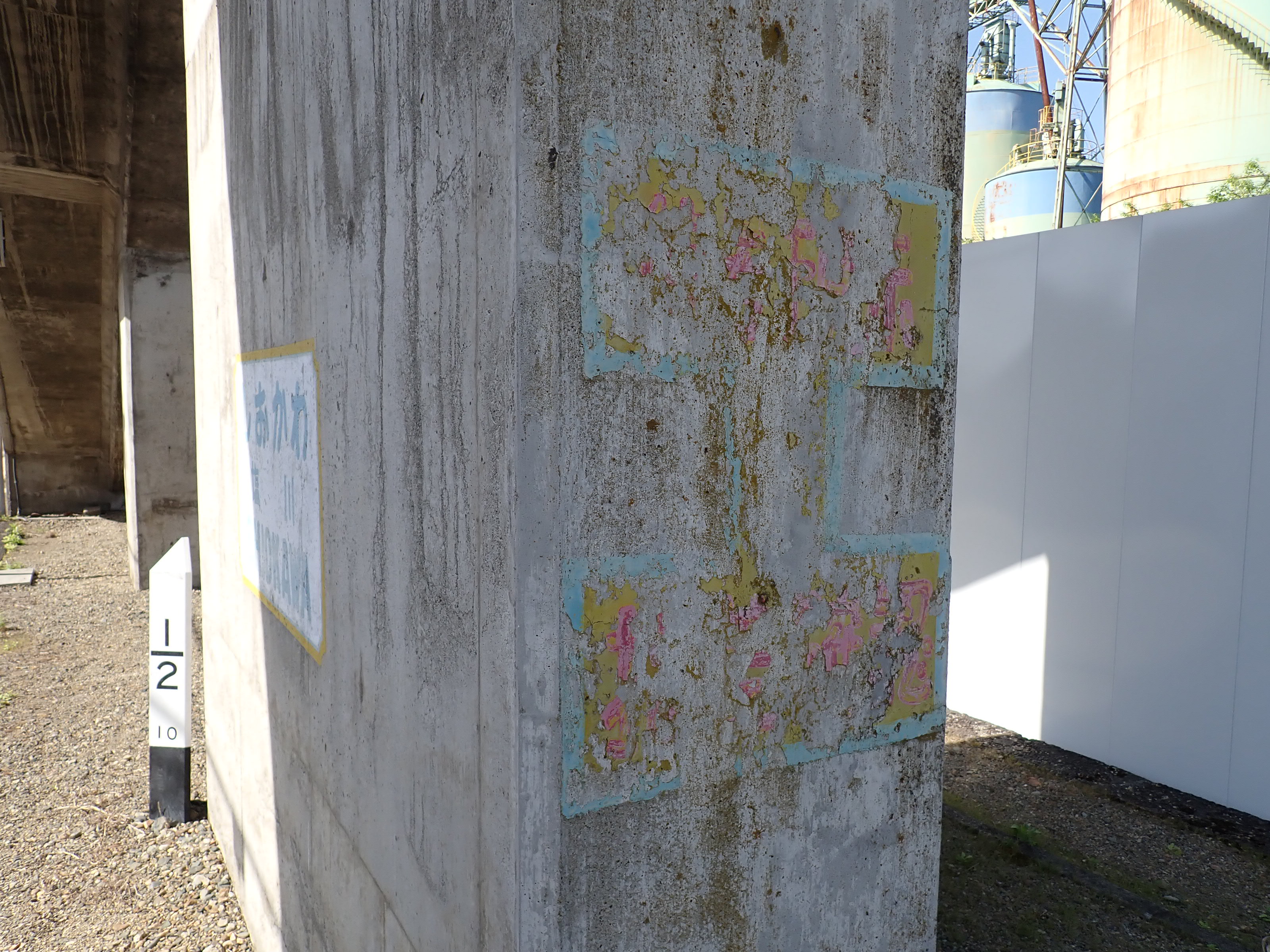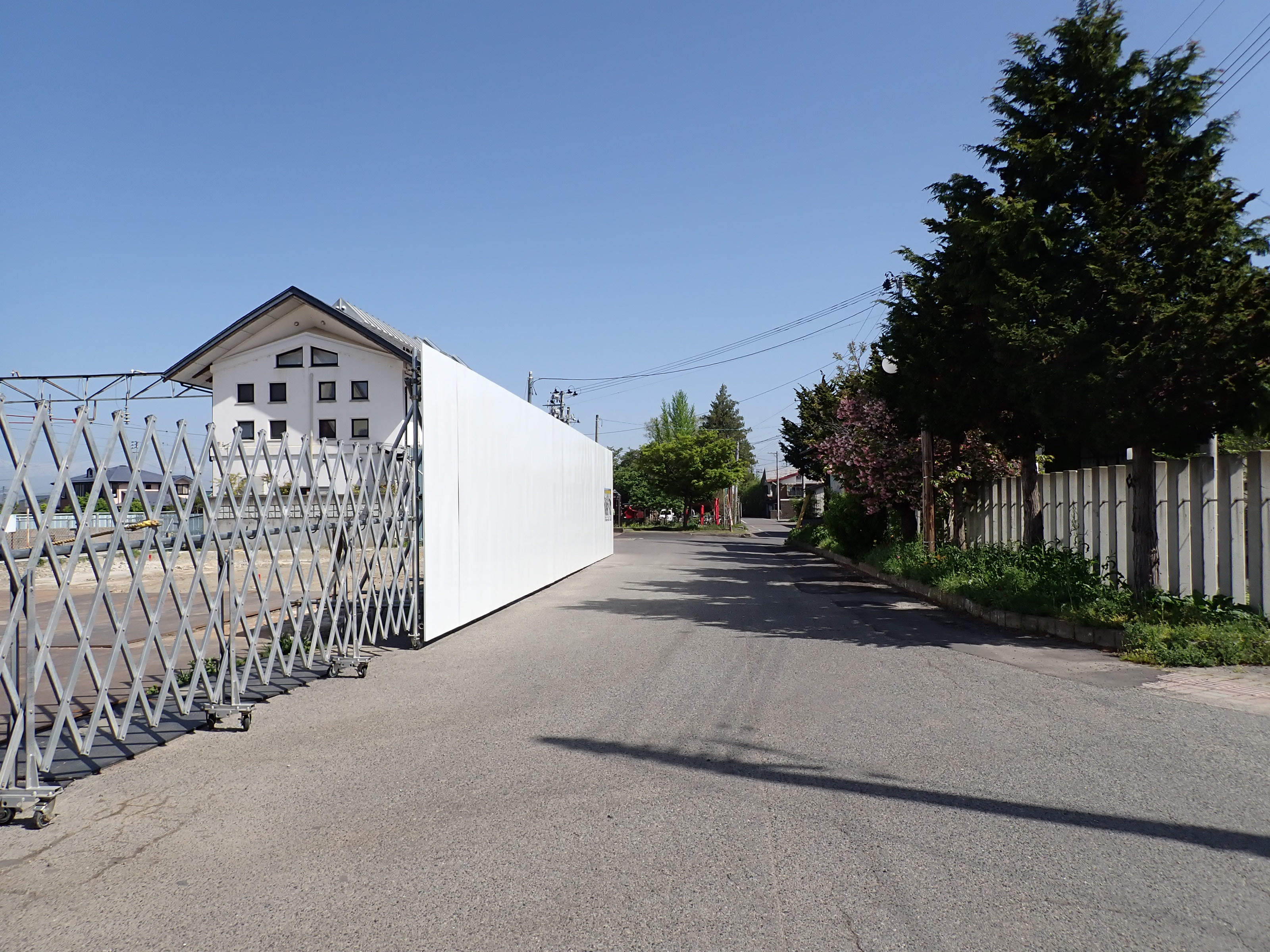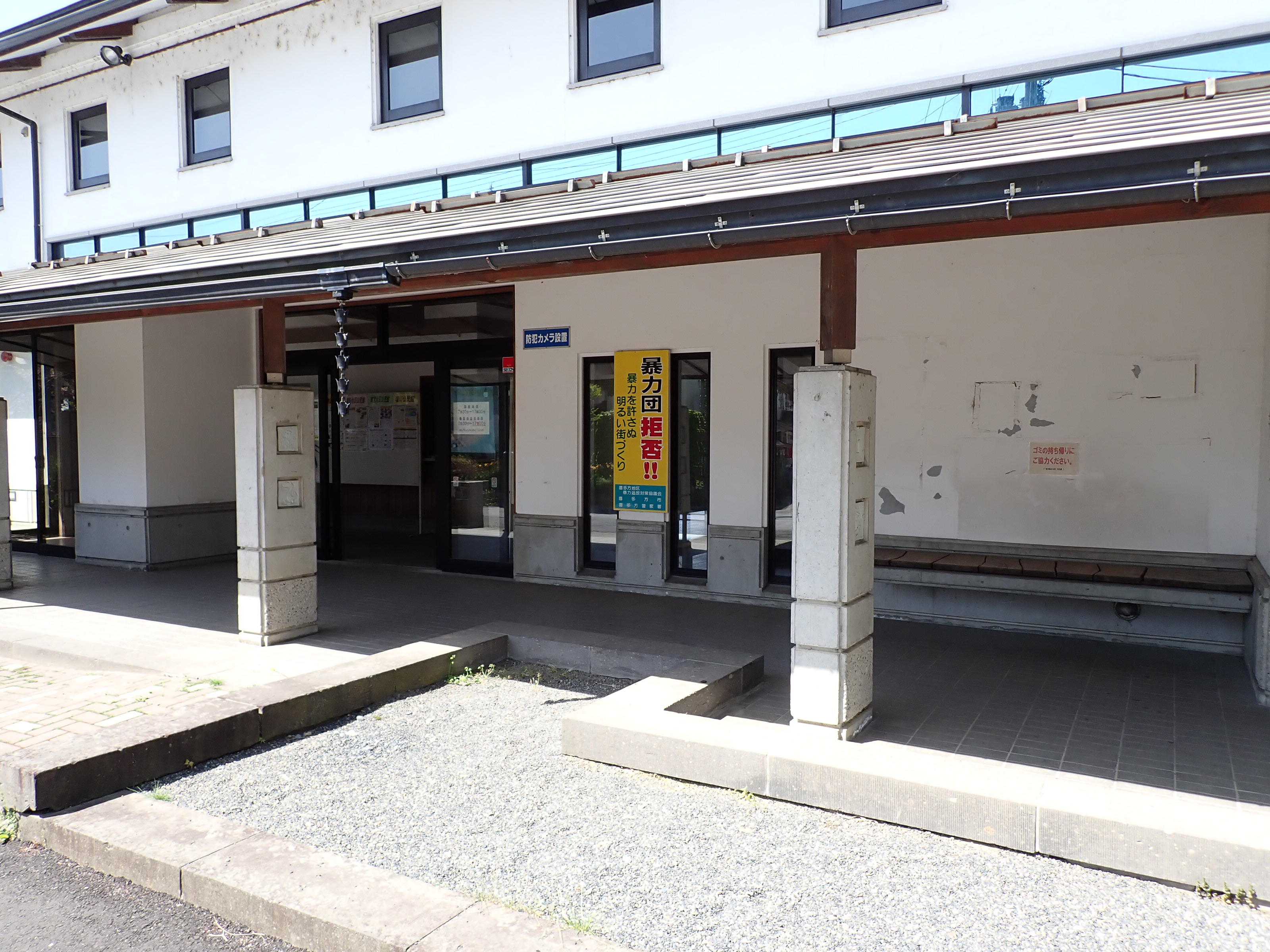 駐輪場には塩川町の表示があり、その下に喜多方市という字が見えます。