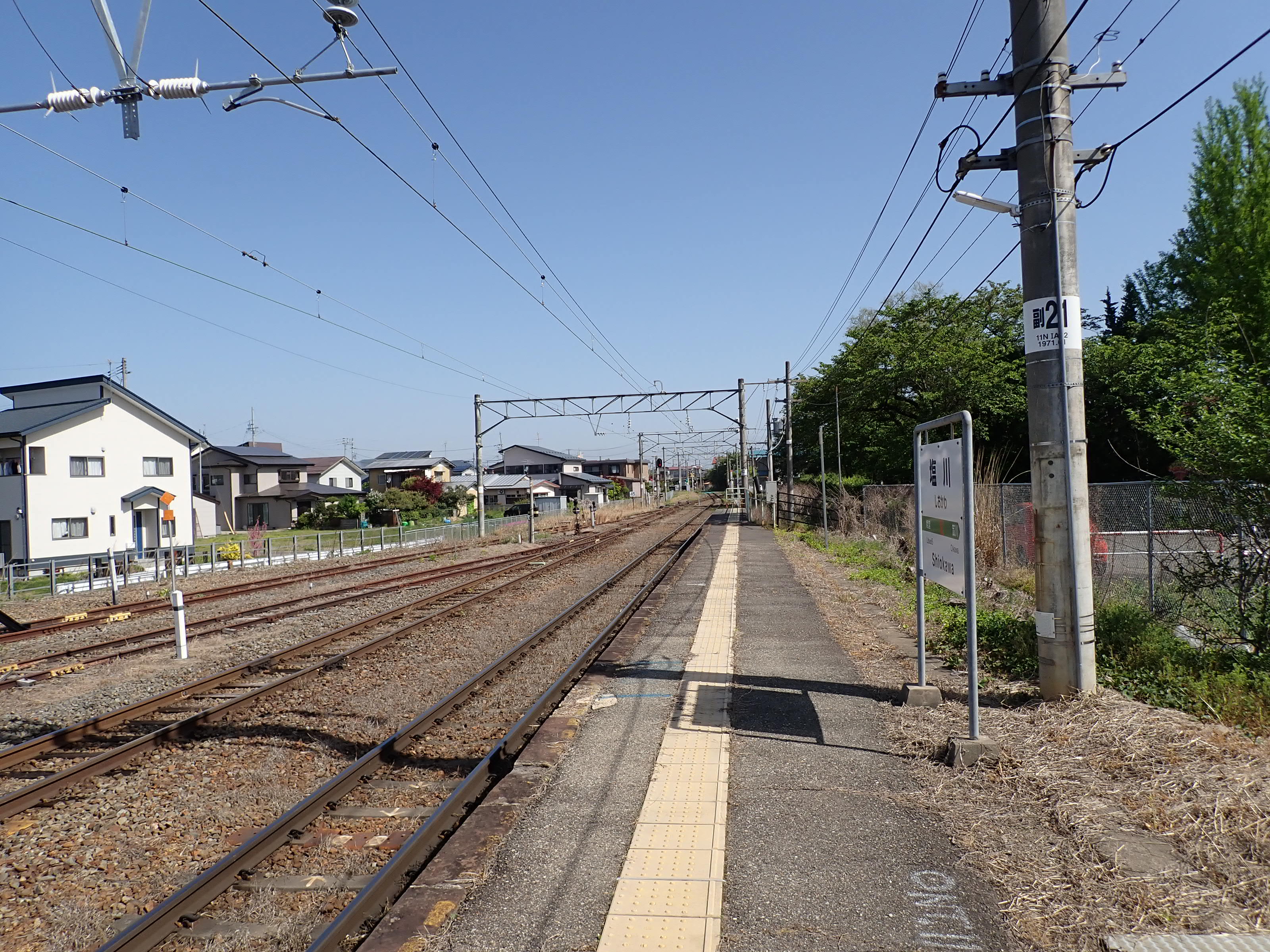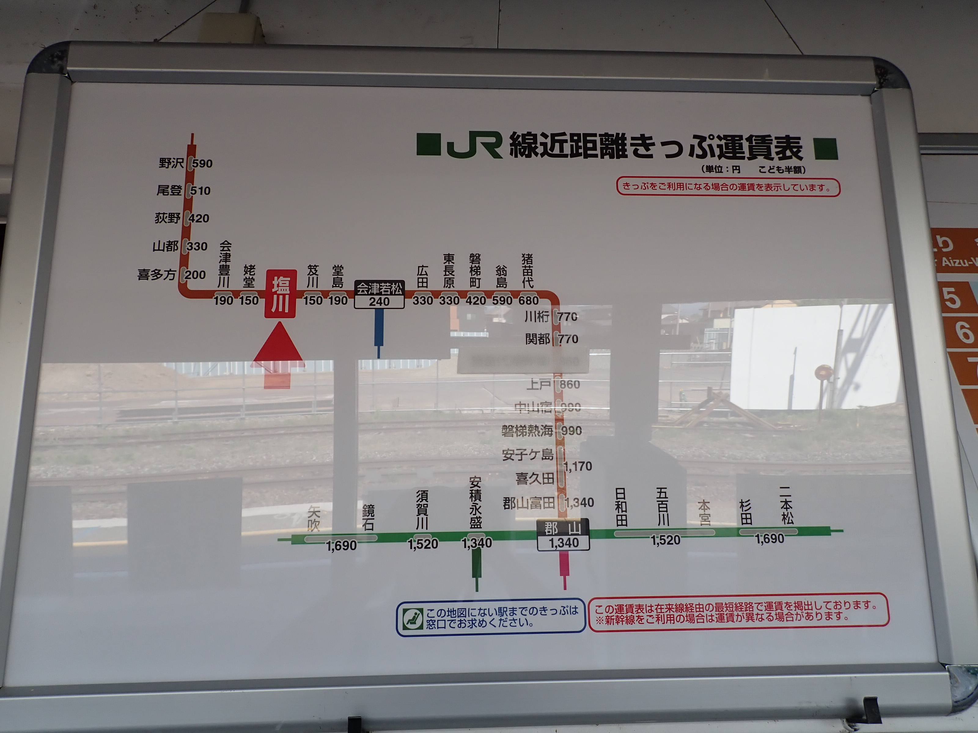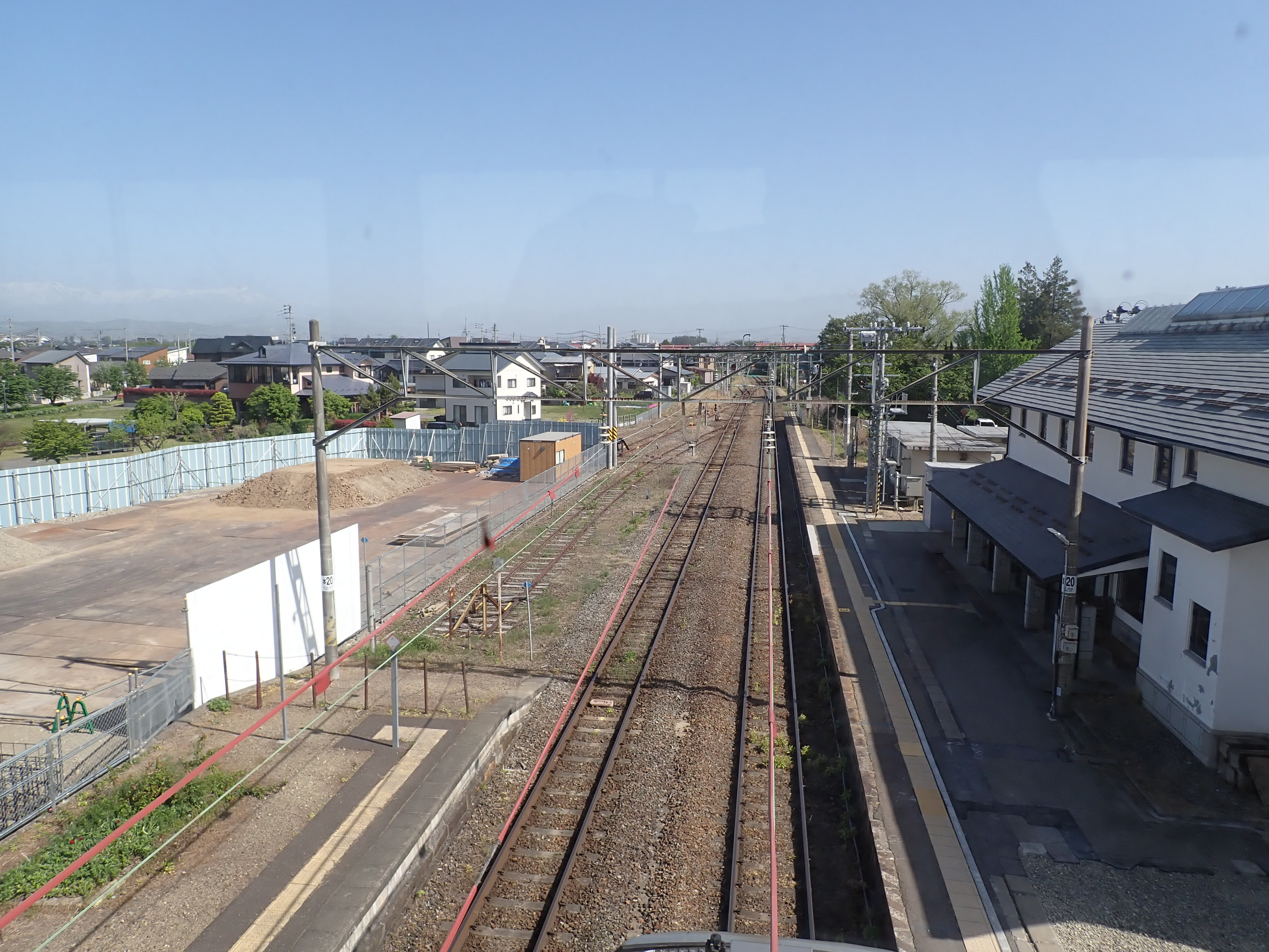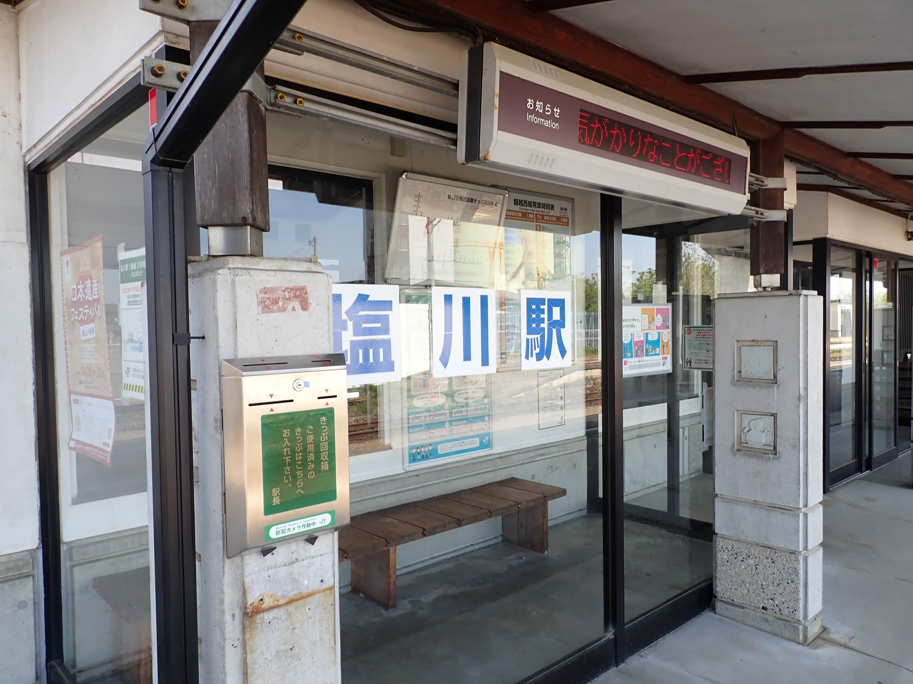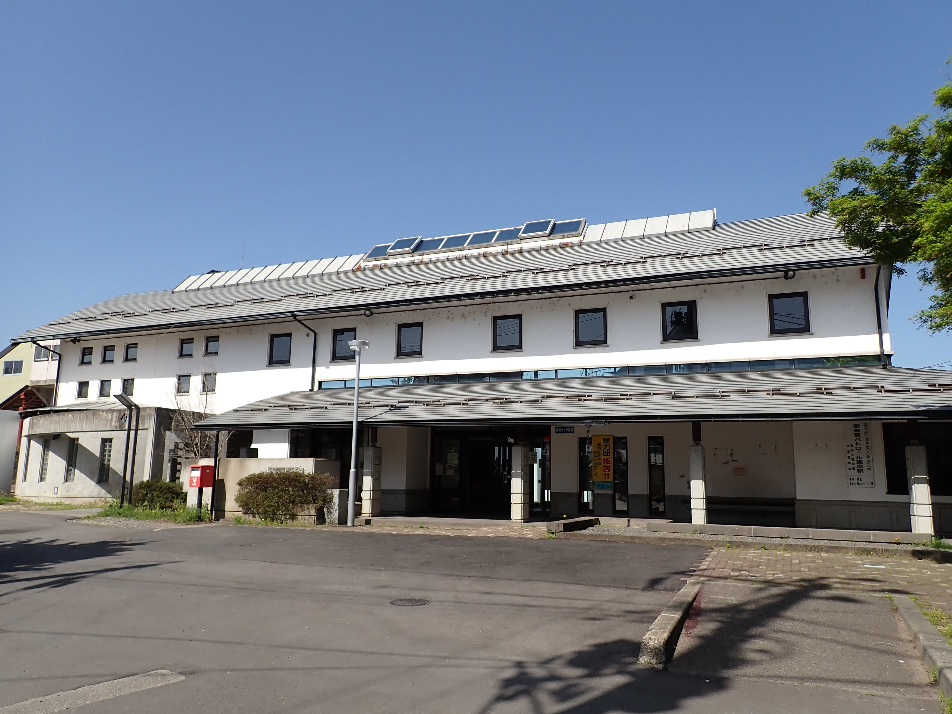 周辺の駅が極端に停車本数が少ない中にあって、喜多方と会津若松の間ではこの駅だけは全ての普通列車が停車します。駅から少し進むと古い町並みが続いています。2024年・2025年現在、駅舎と反対側との間の自由通路を建設中です。