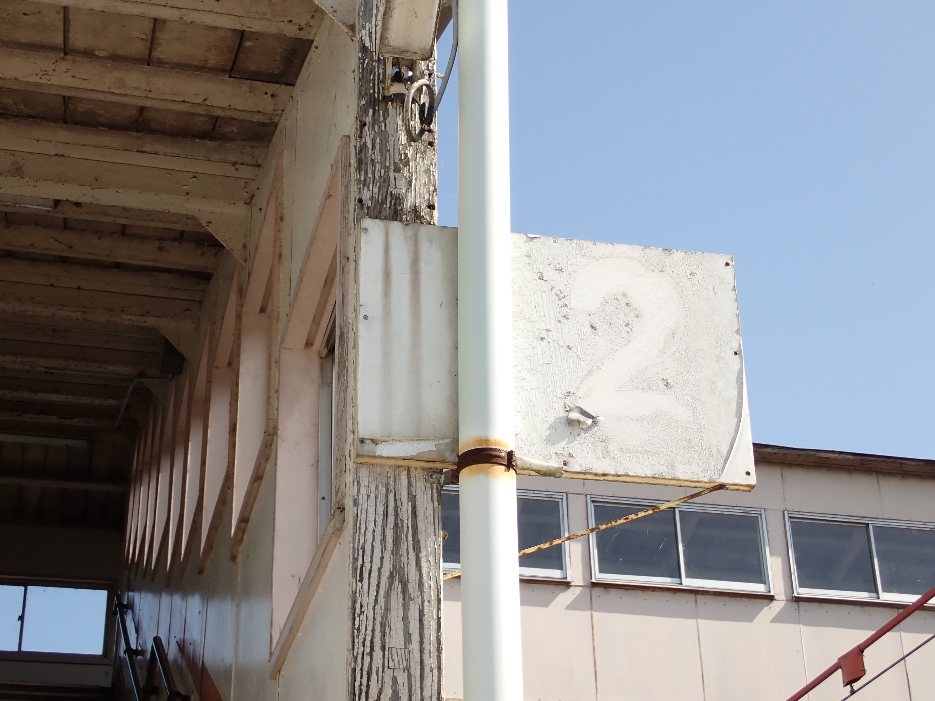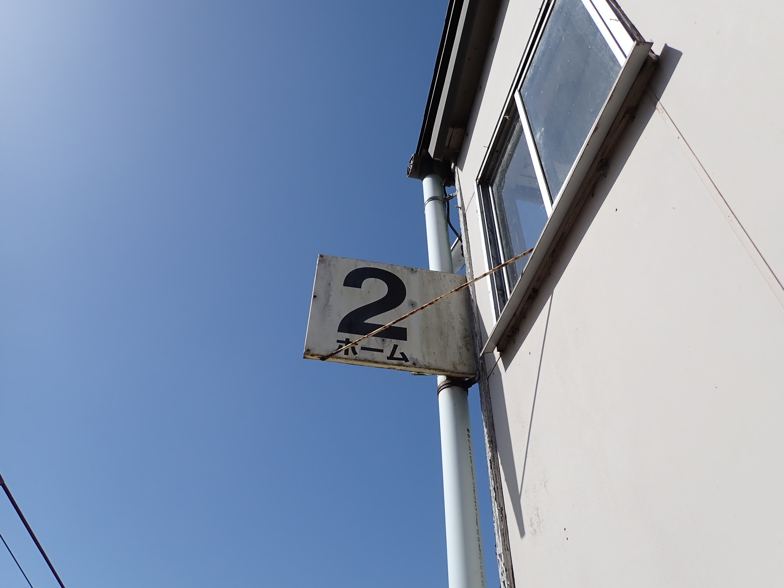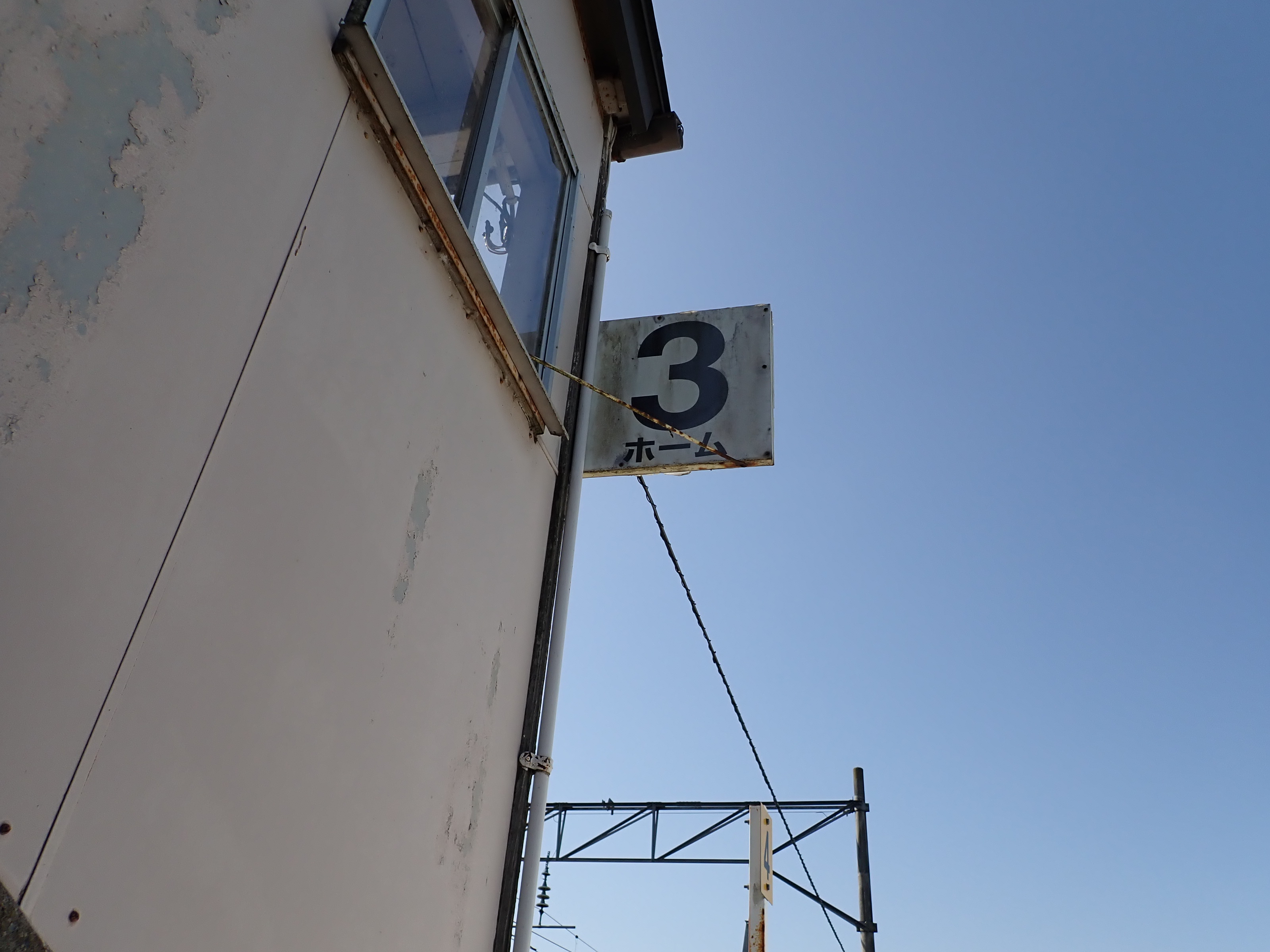 2番線・3番線の跨線橋階段入口に掲げられた番線標。