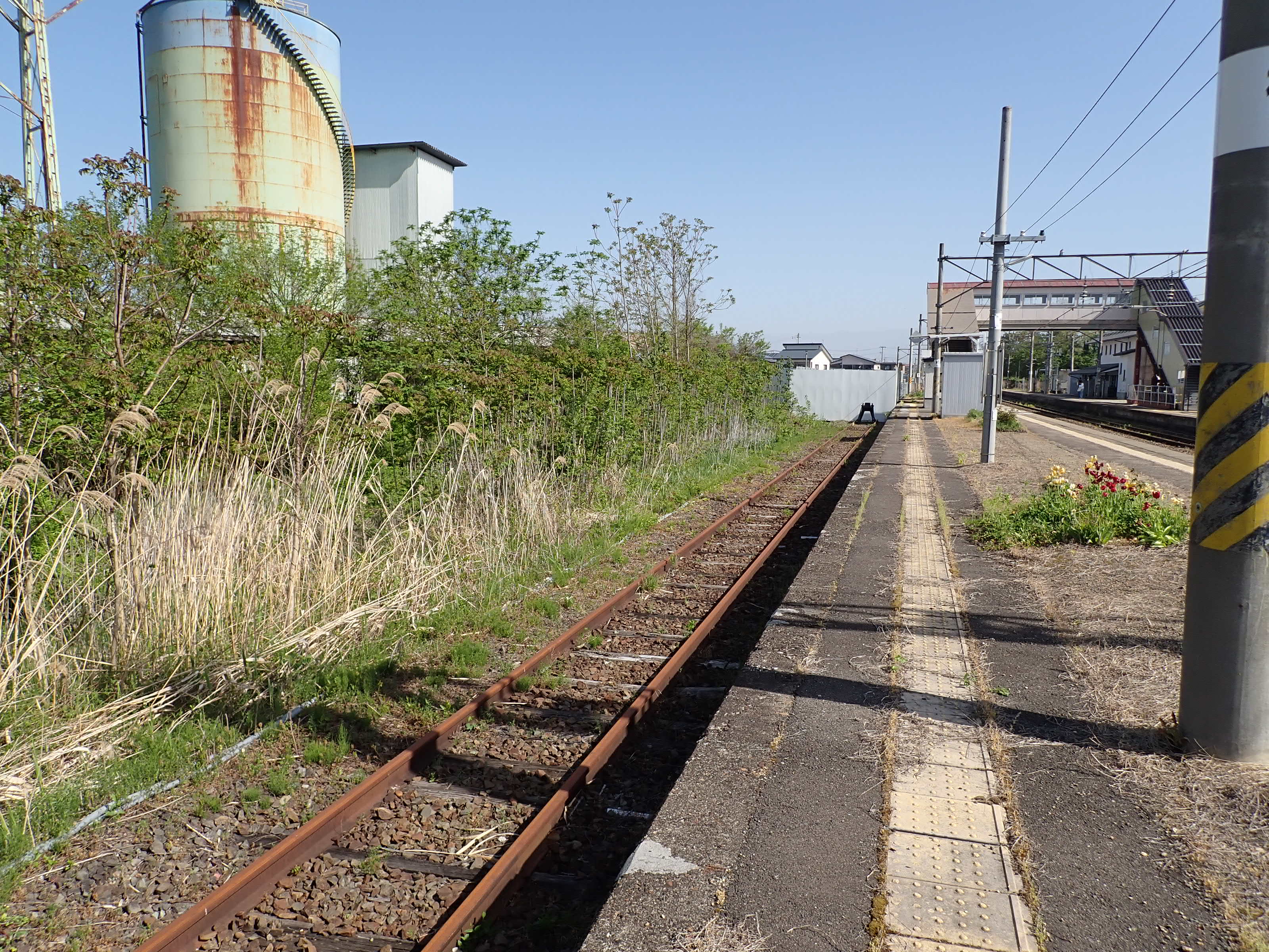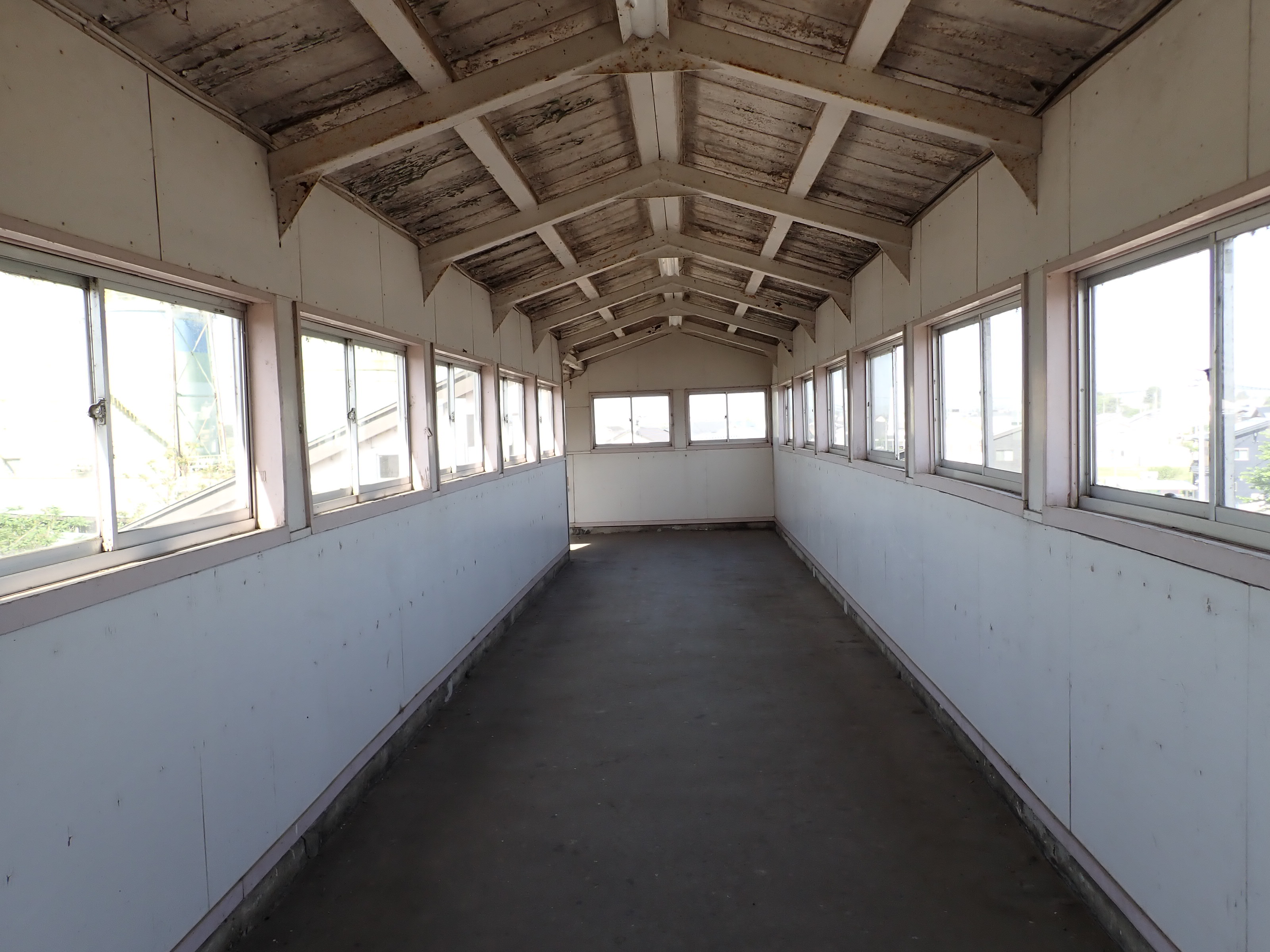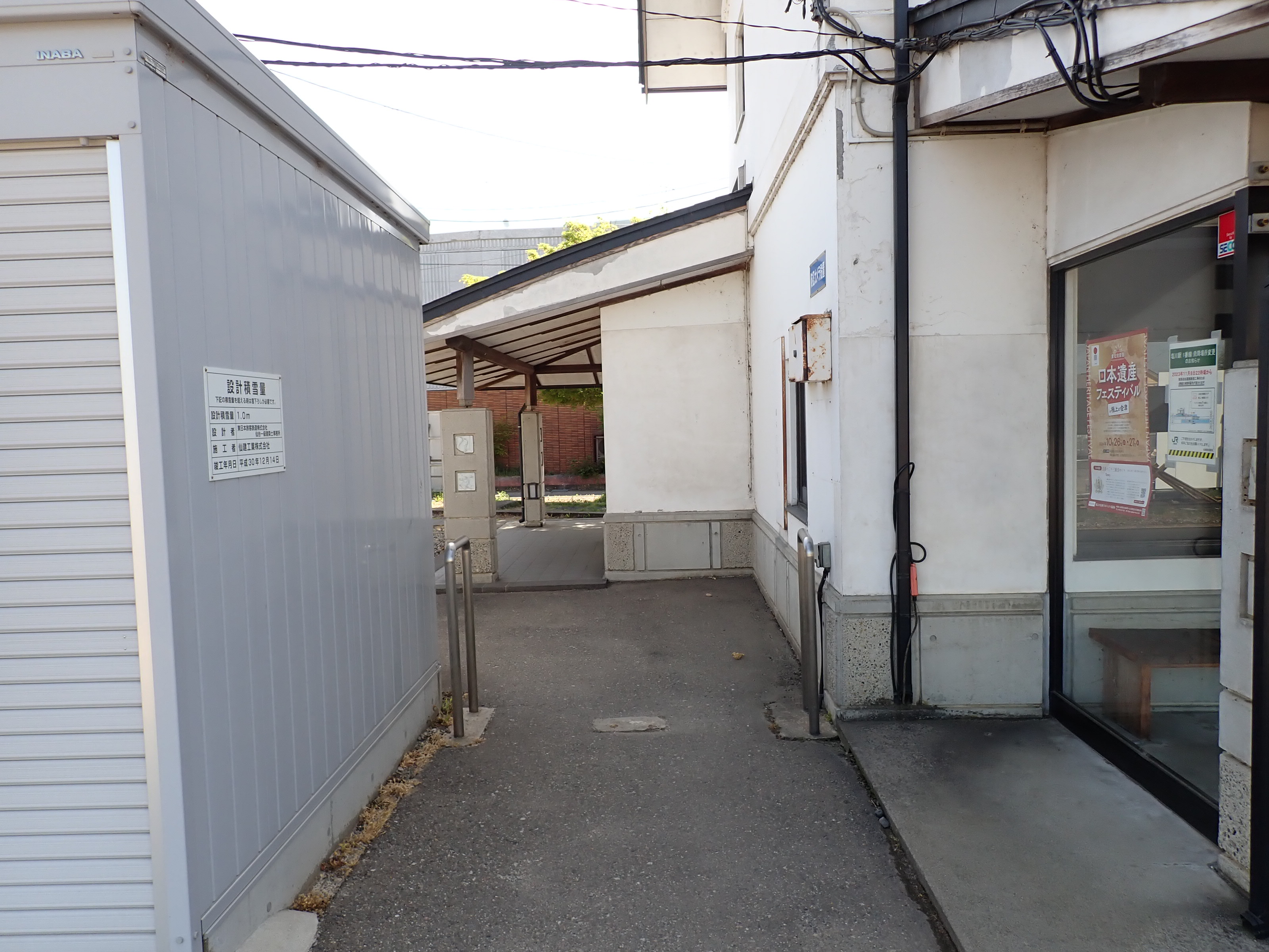 1番線駅舎側から見た跨線橋と、かつて階段があったと思われるところ。