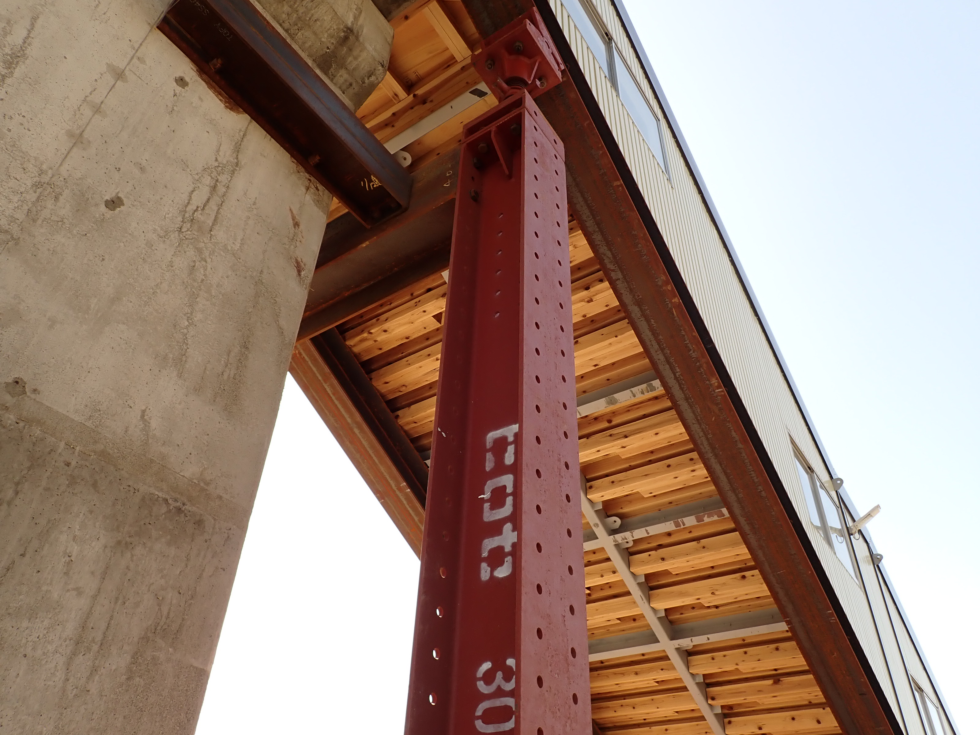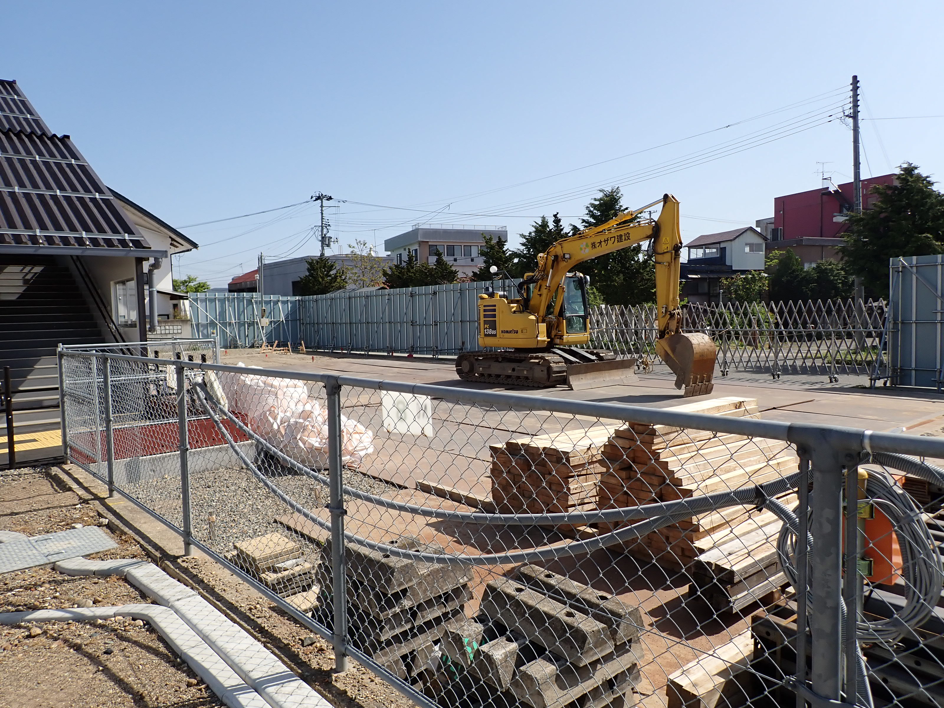 1番線側から見た駅舎横の自由通路建設中の様子。