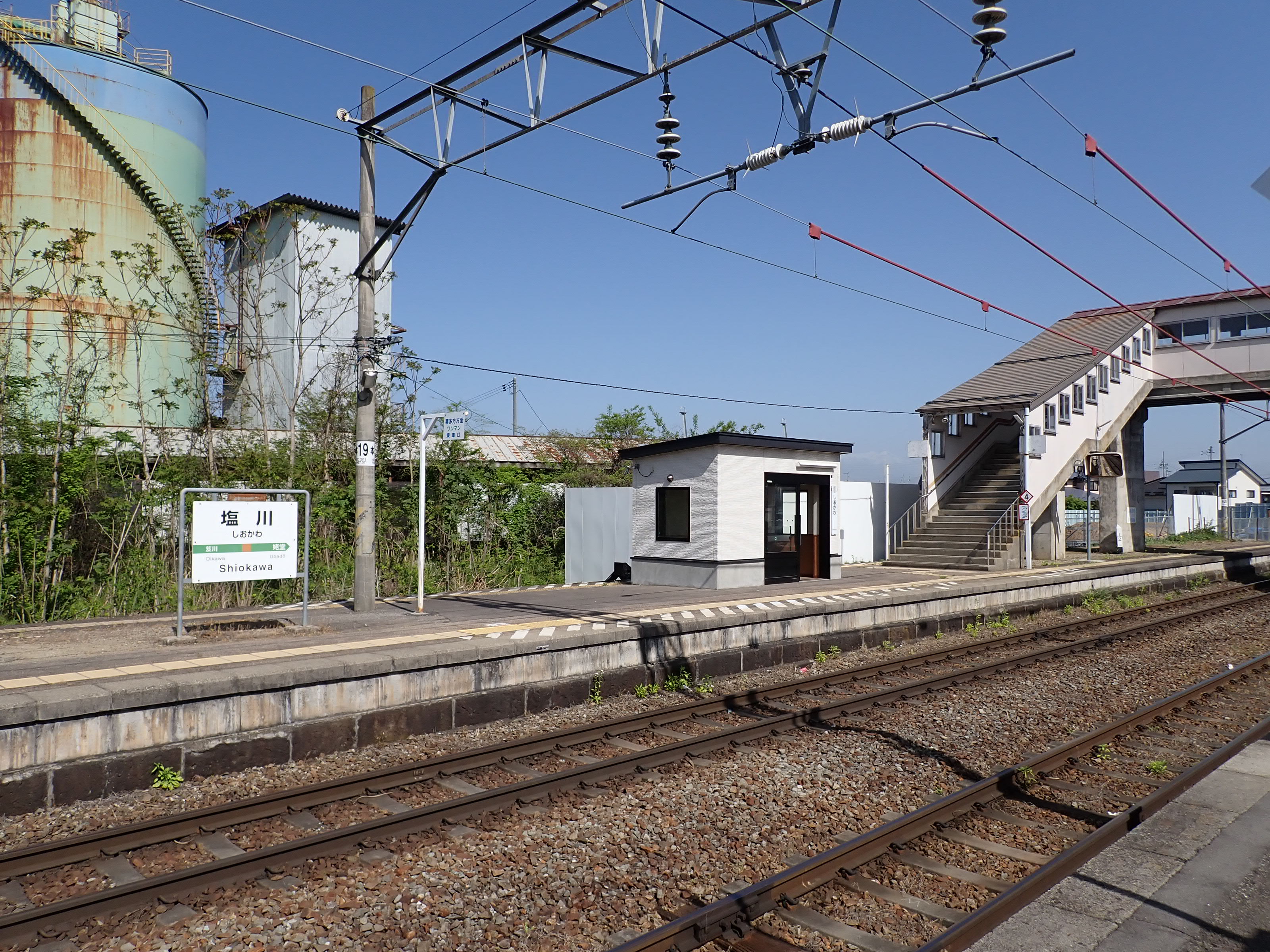 先ほどの道を戻り、塩川駅への道の交差点に戻ってきました。