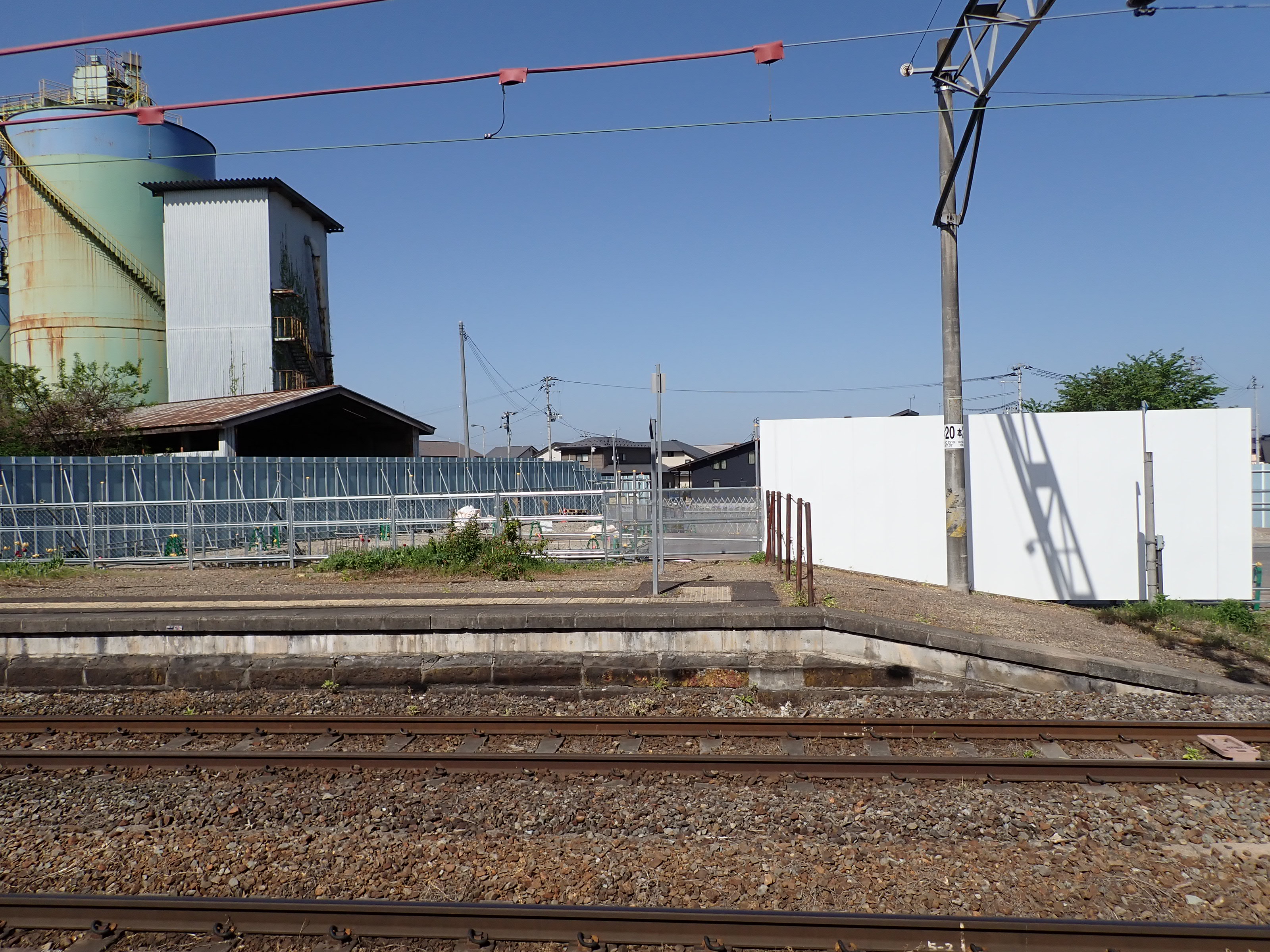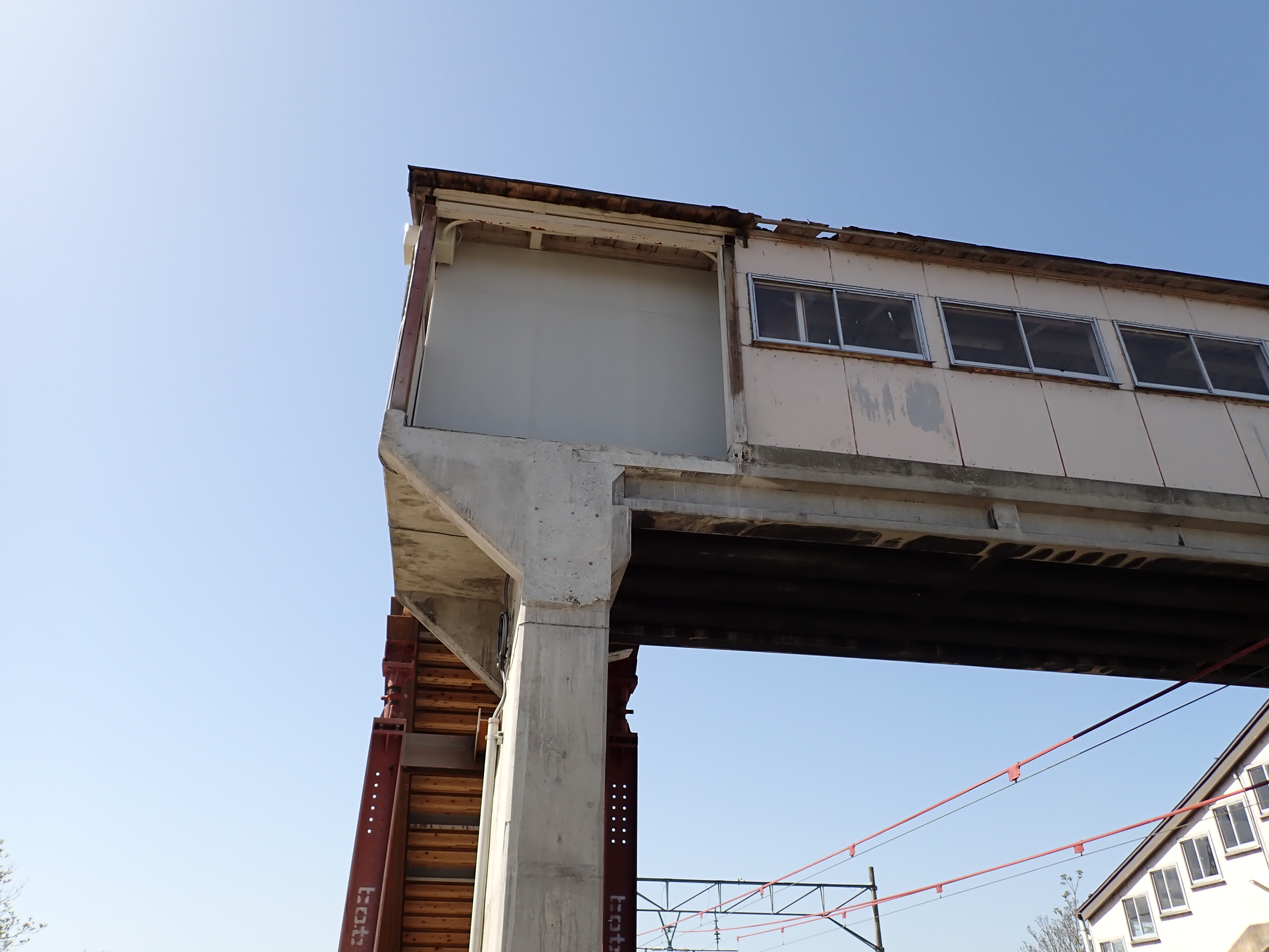 跨線橋の1番線側。工事のために駅舎側が封鎖されています。