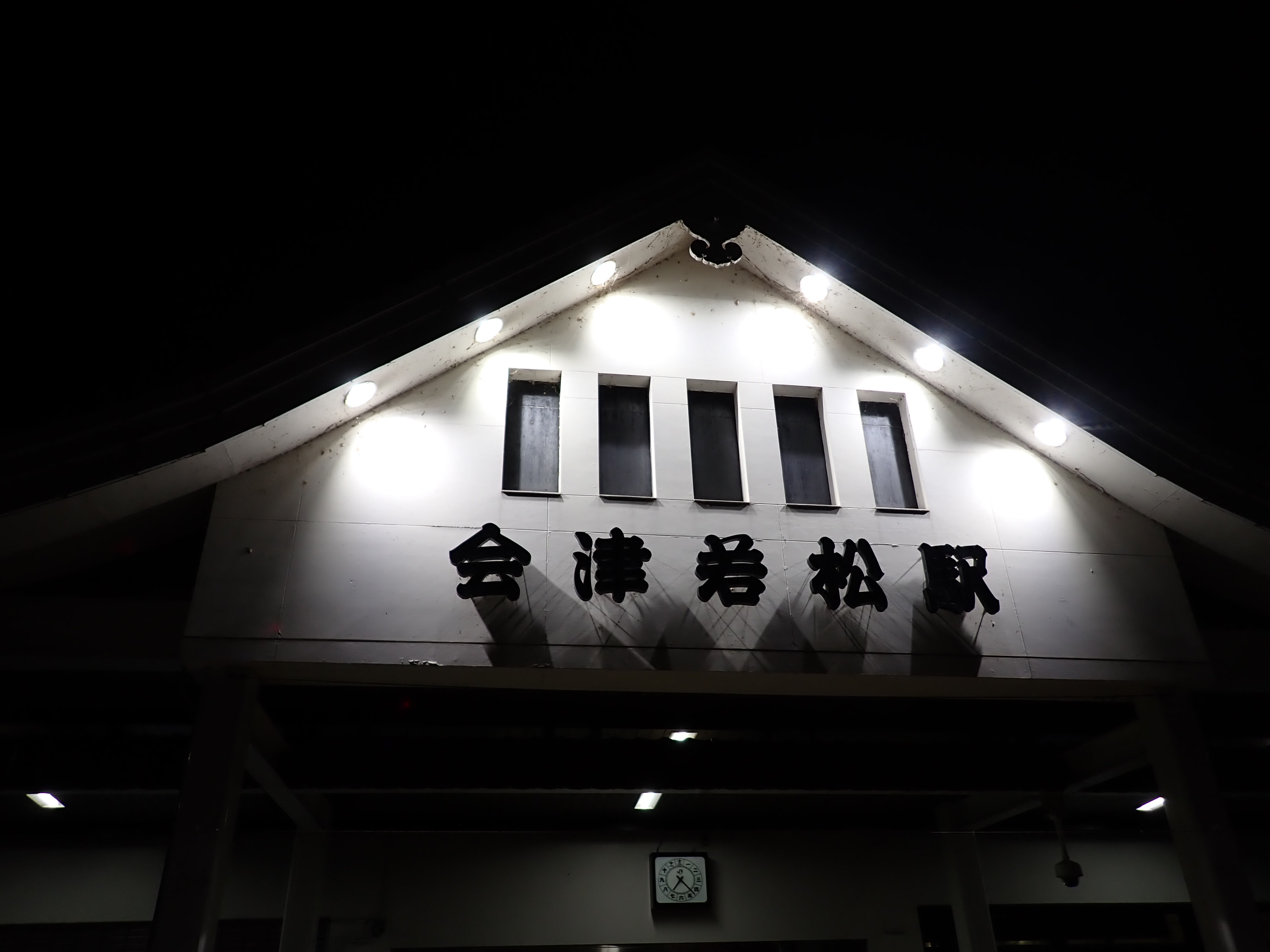 日没後の駅舎の様子。