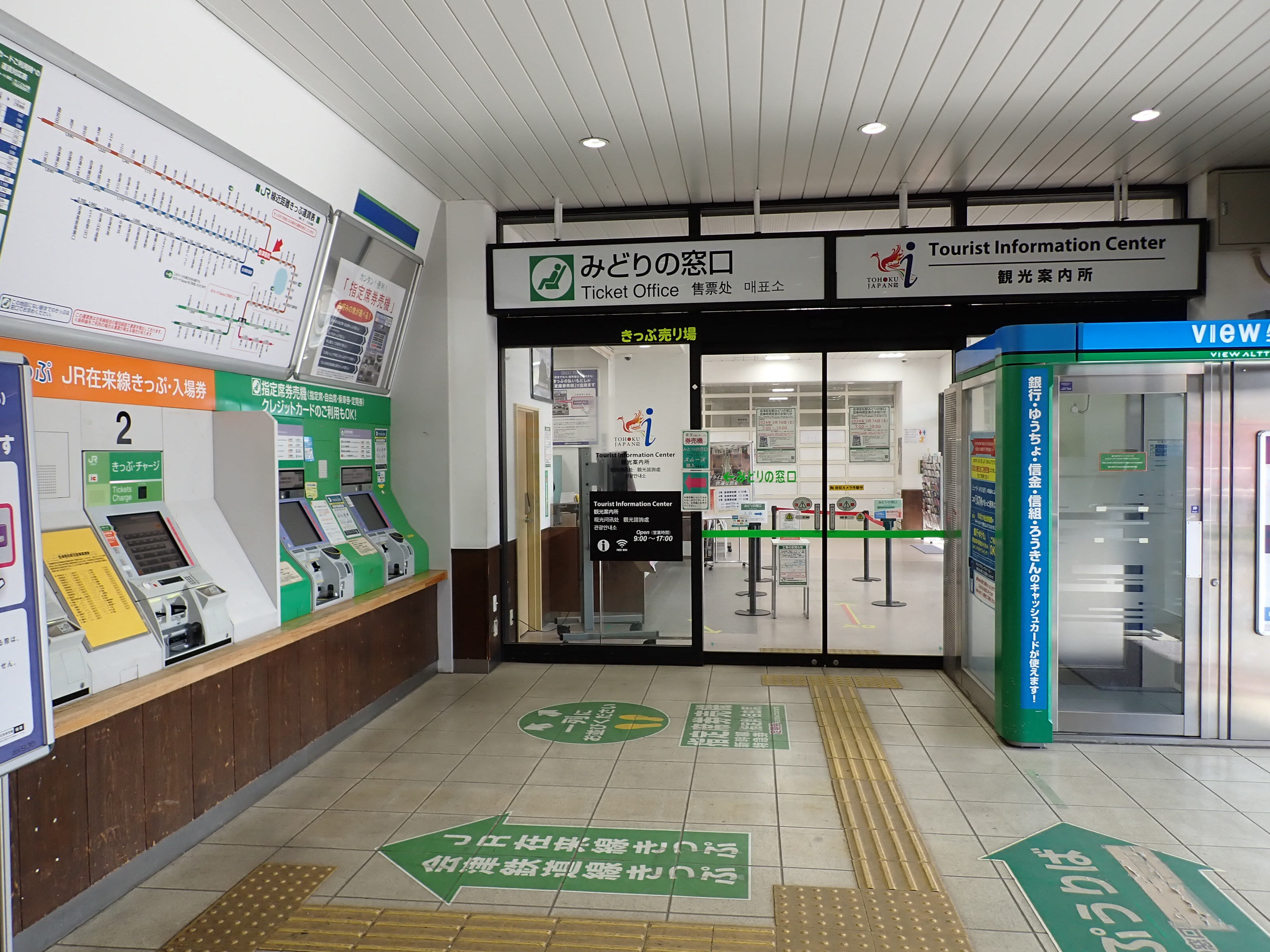 改札口・券売機・窓口の様子。