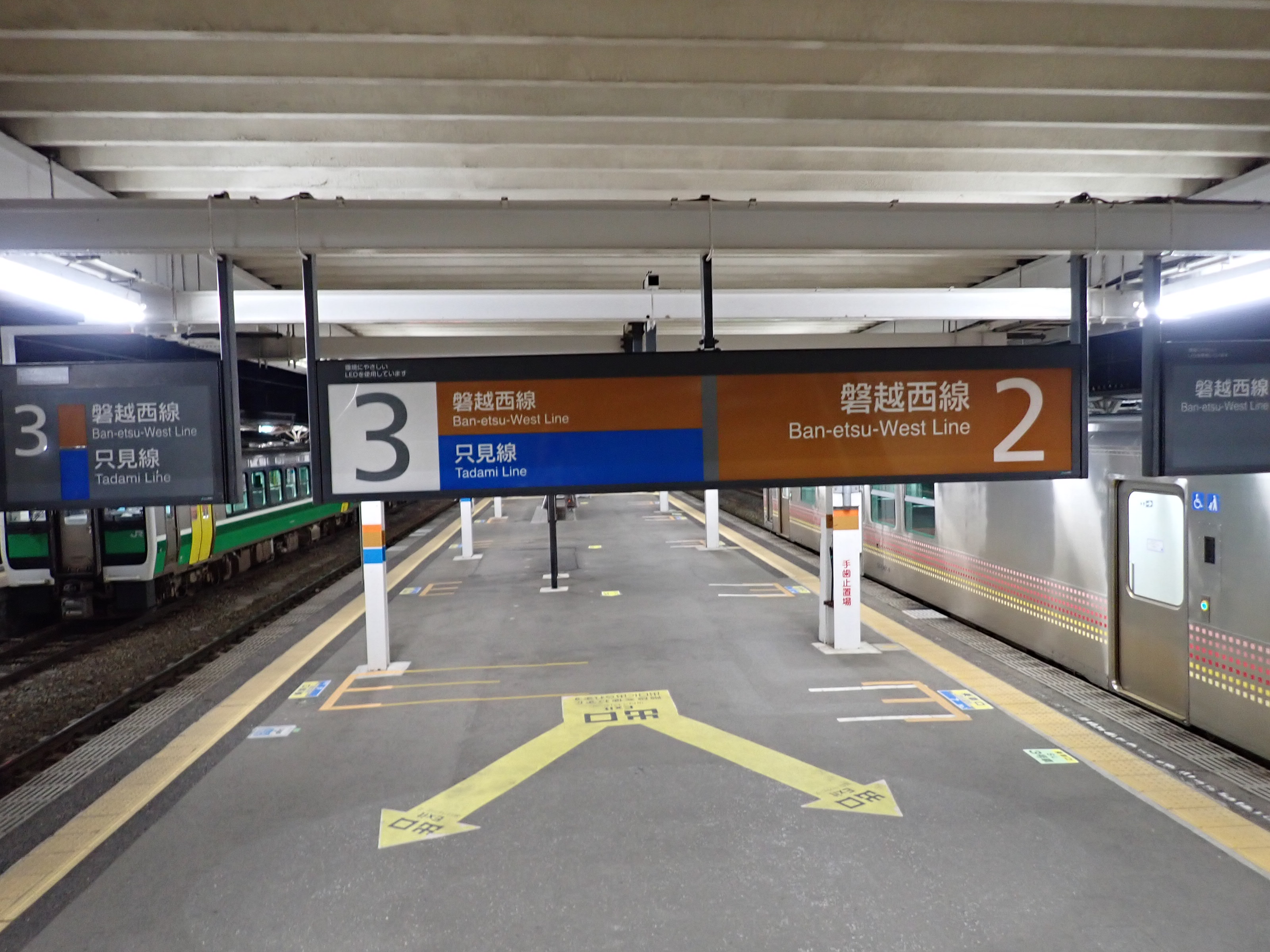 2・3番線から見た1番線のばんえつ物語号用駅名標。