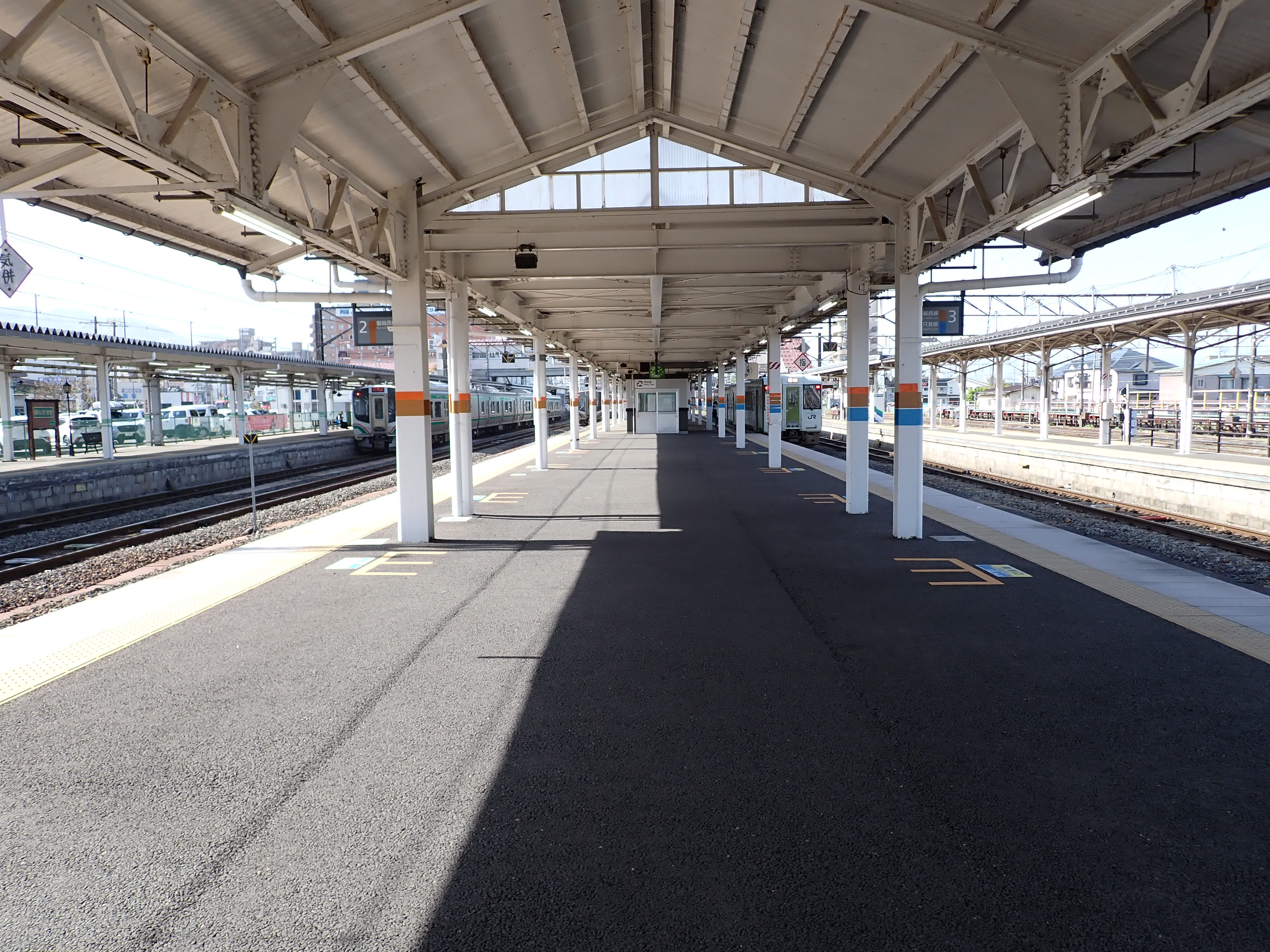 2番線は頭端式、3番線はそのまま七日町方面へ繋がっていますが、2番線の頭端部分へ進みます。