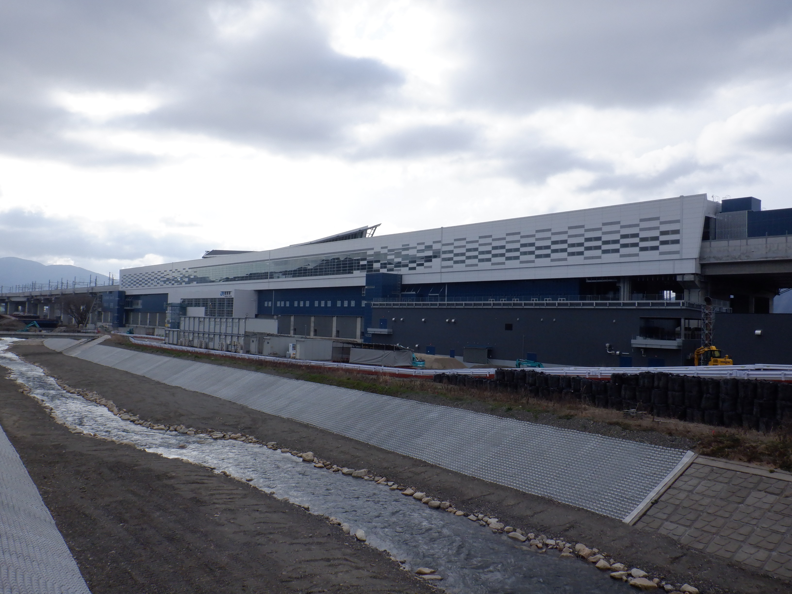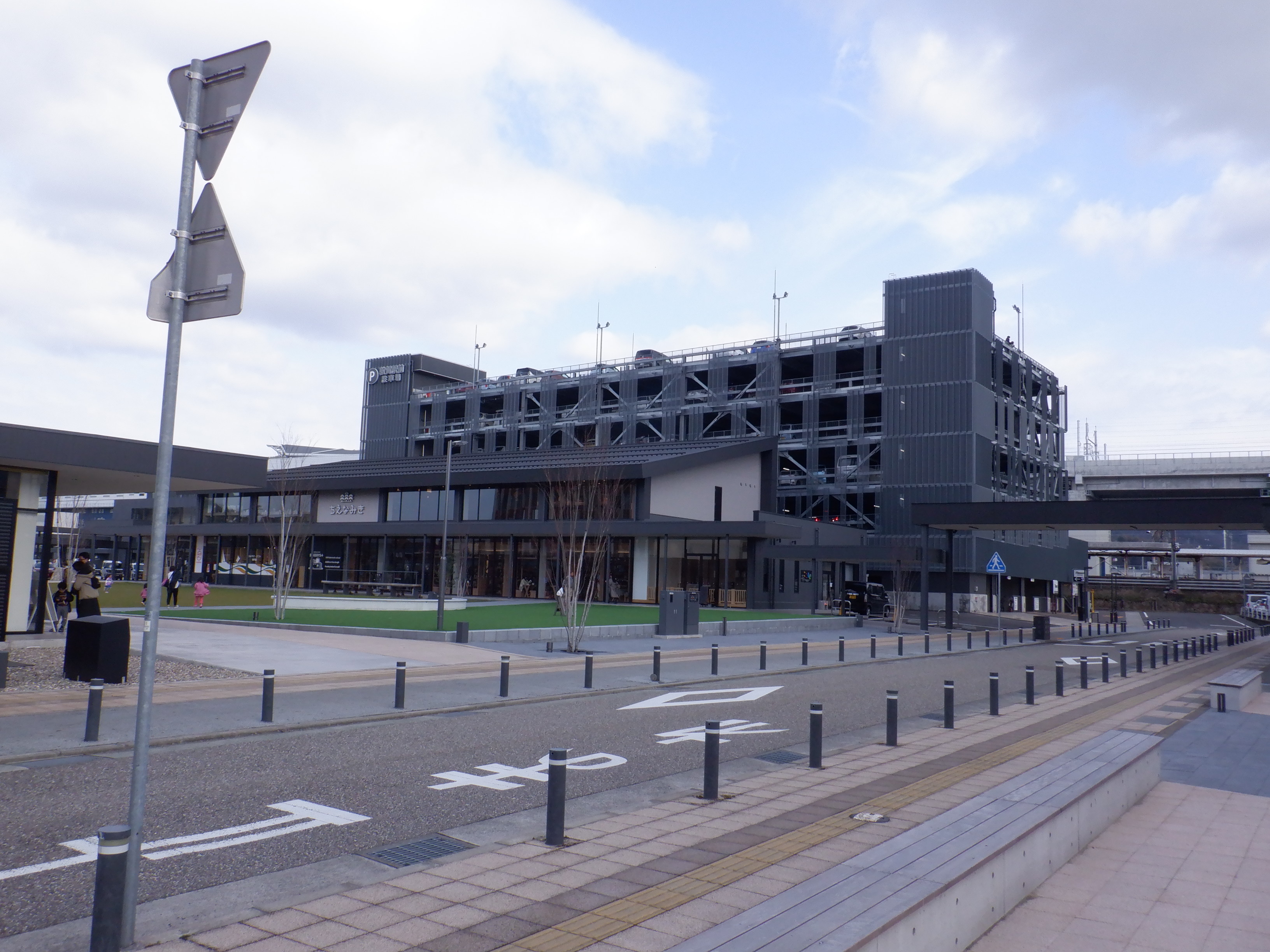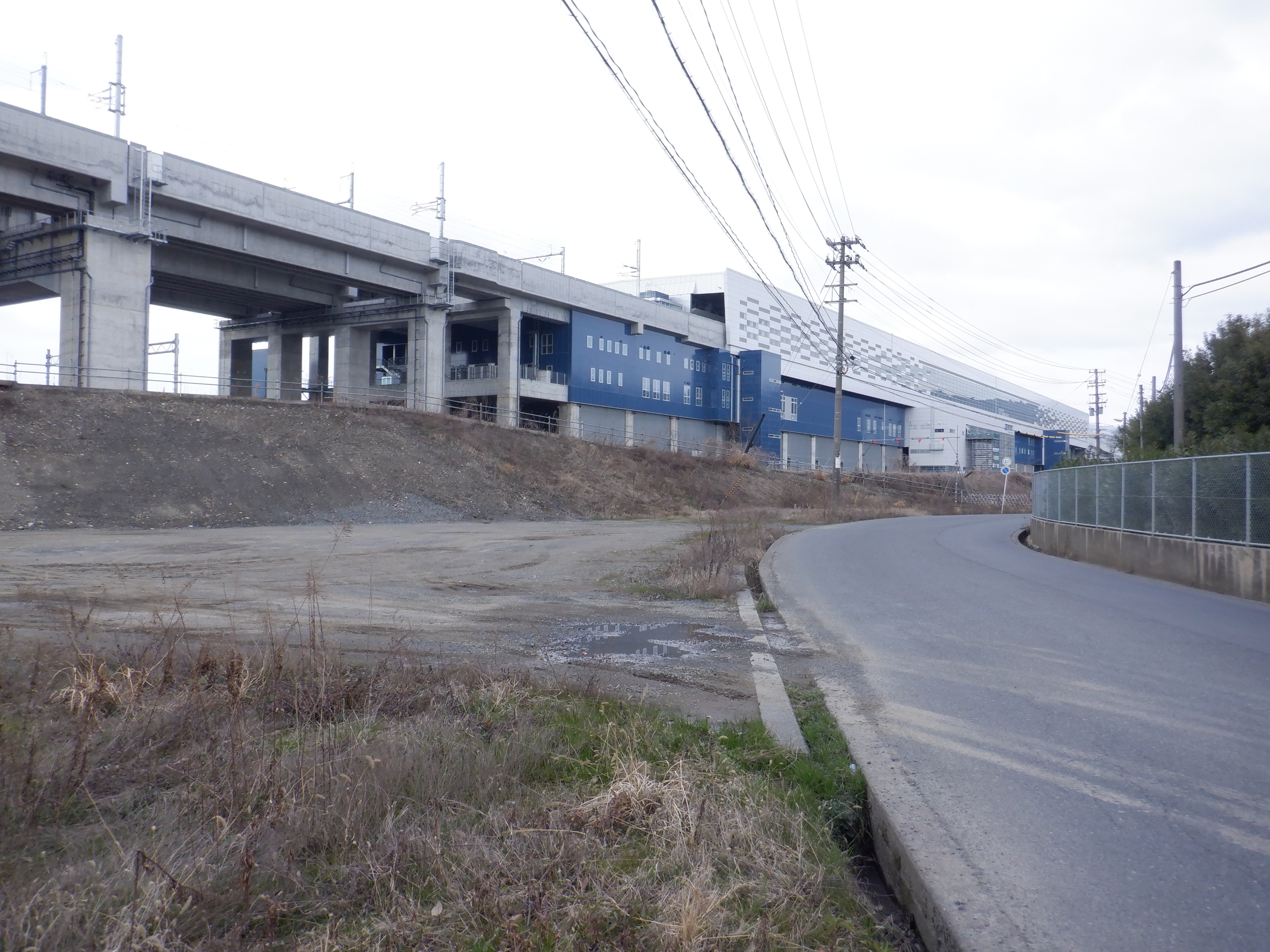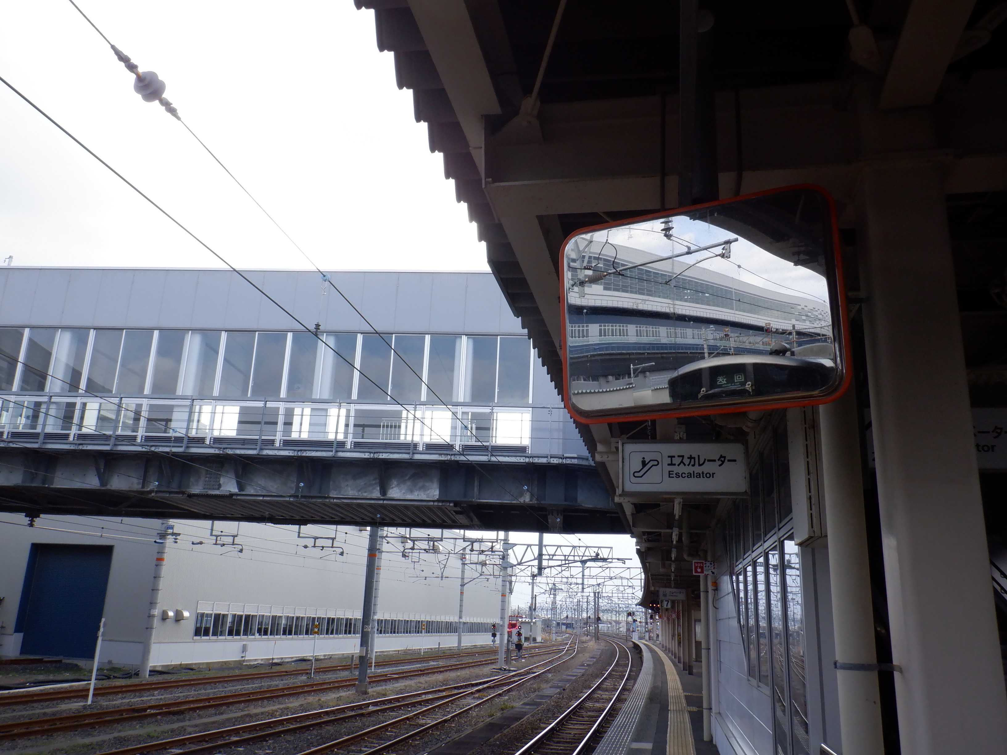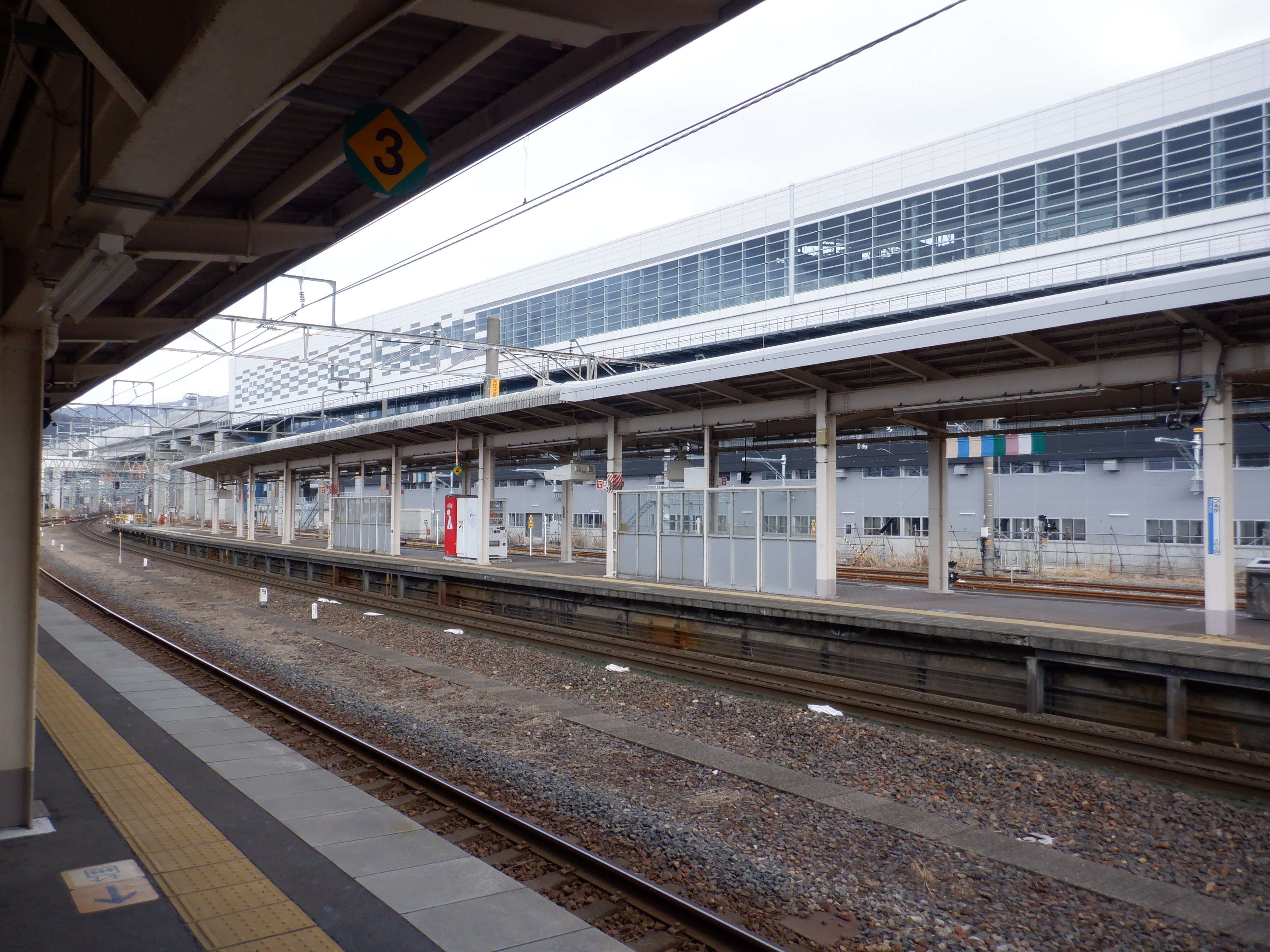 やまなみ口側も少し残っていた足場がほとんど無くなり、ごく一部を除いて足場がなくなった様子を見ることができるようになりました。また、在来線と新幹線高架の間に特急列車の検修線ができつつあります。