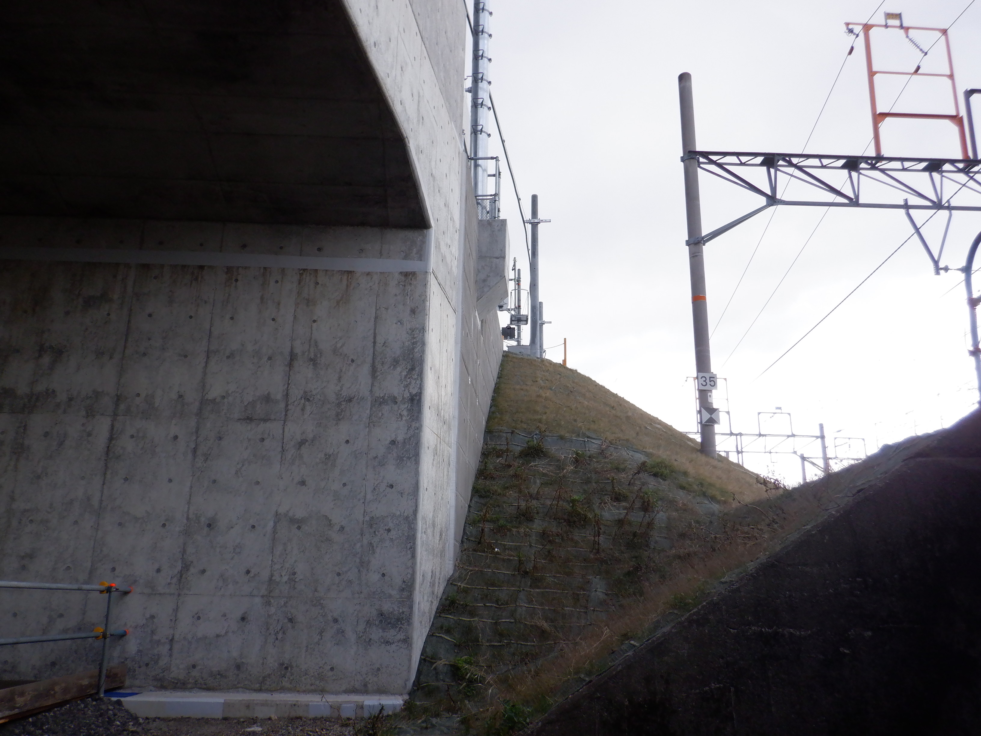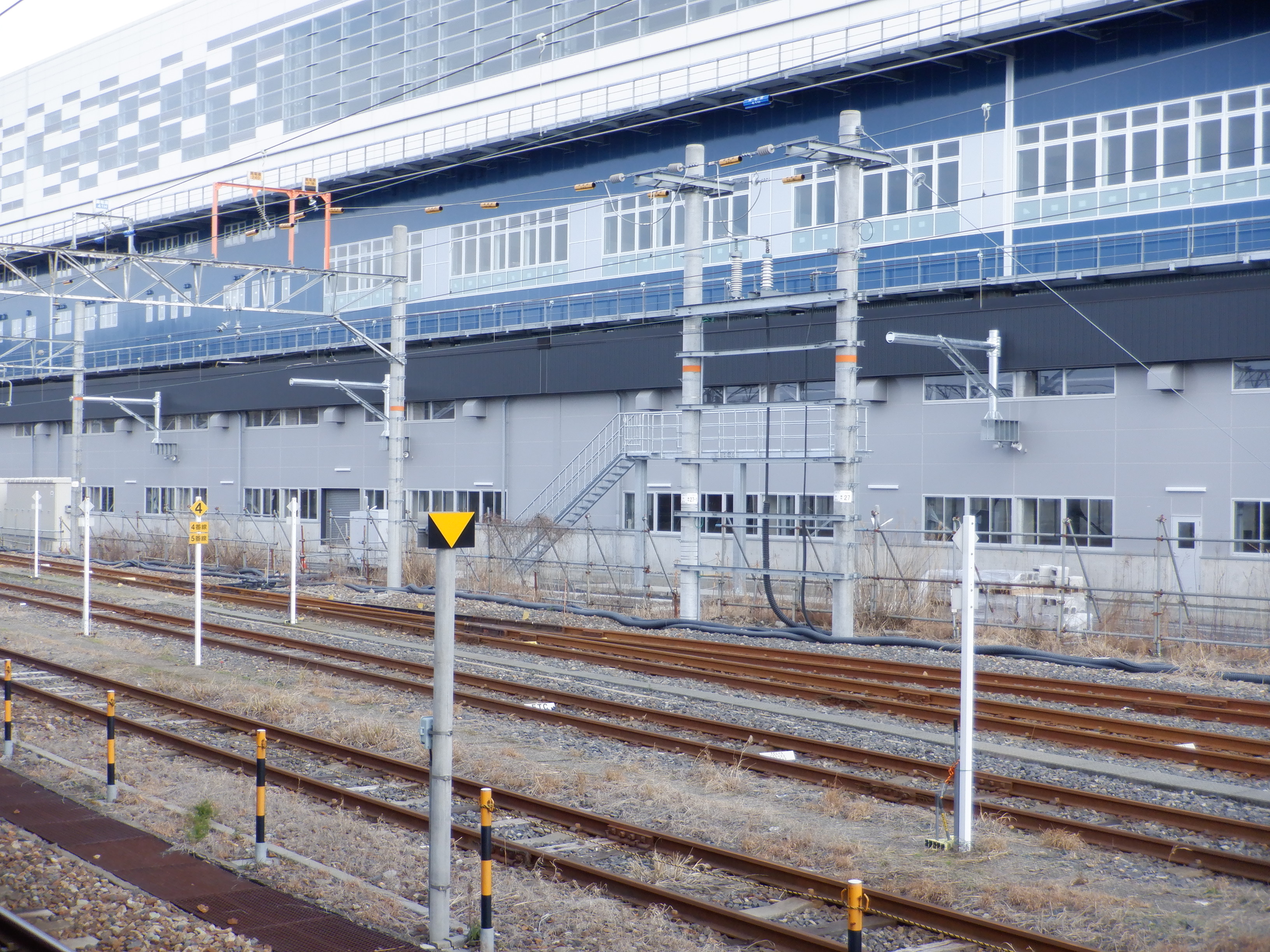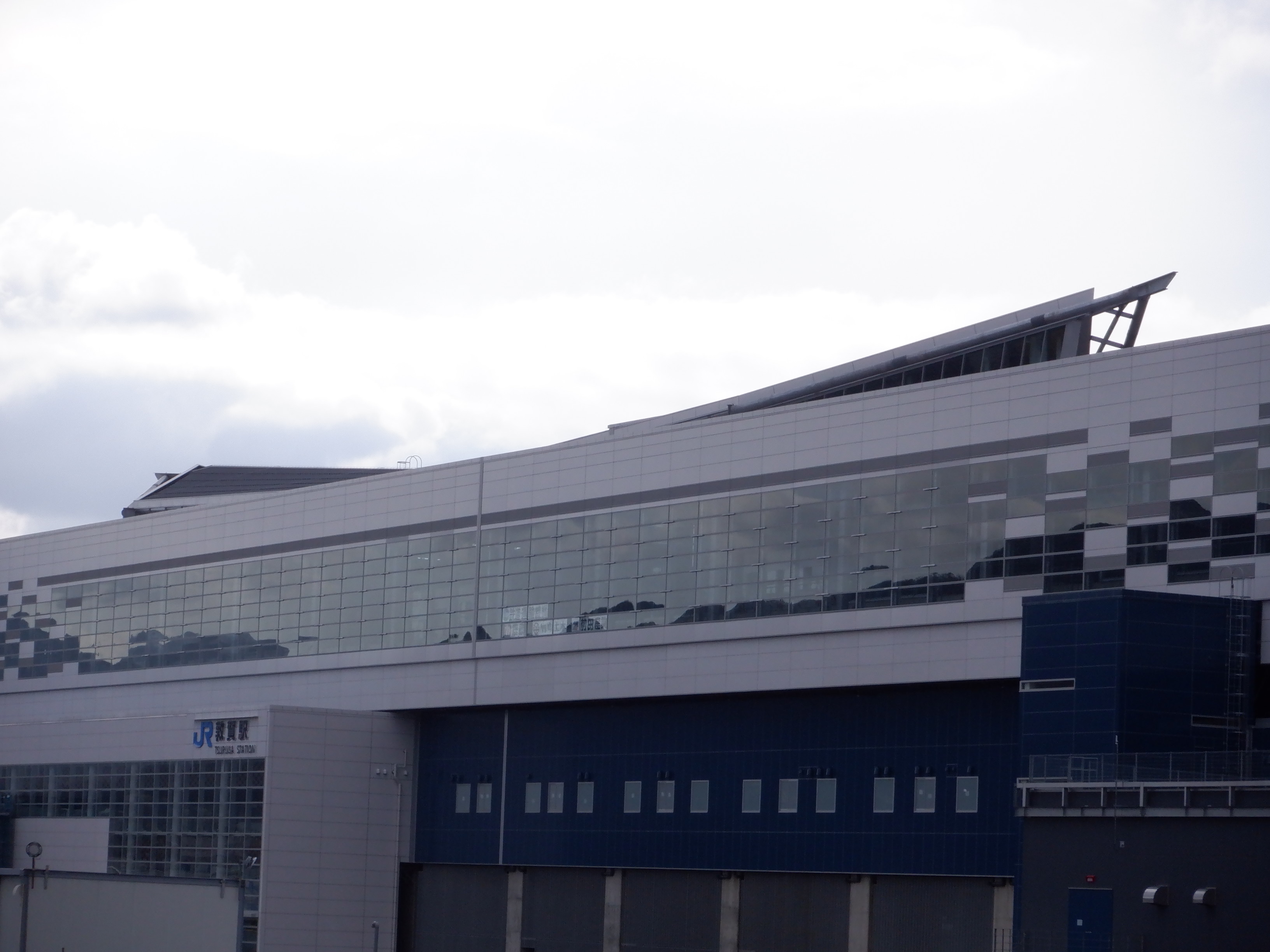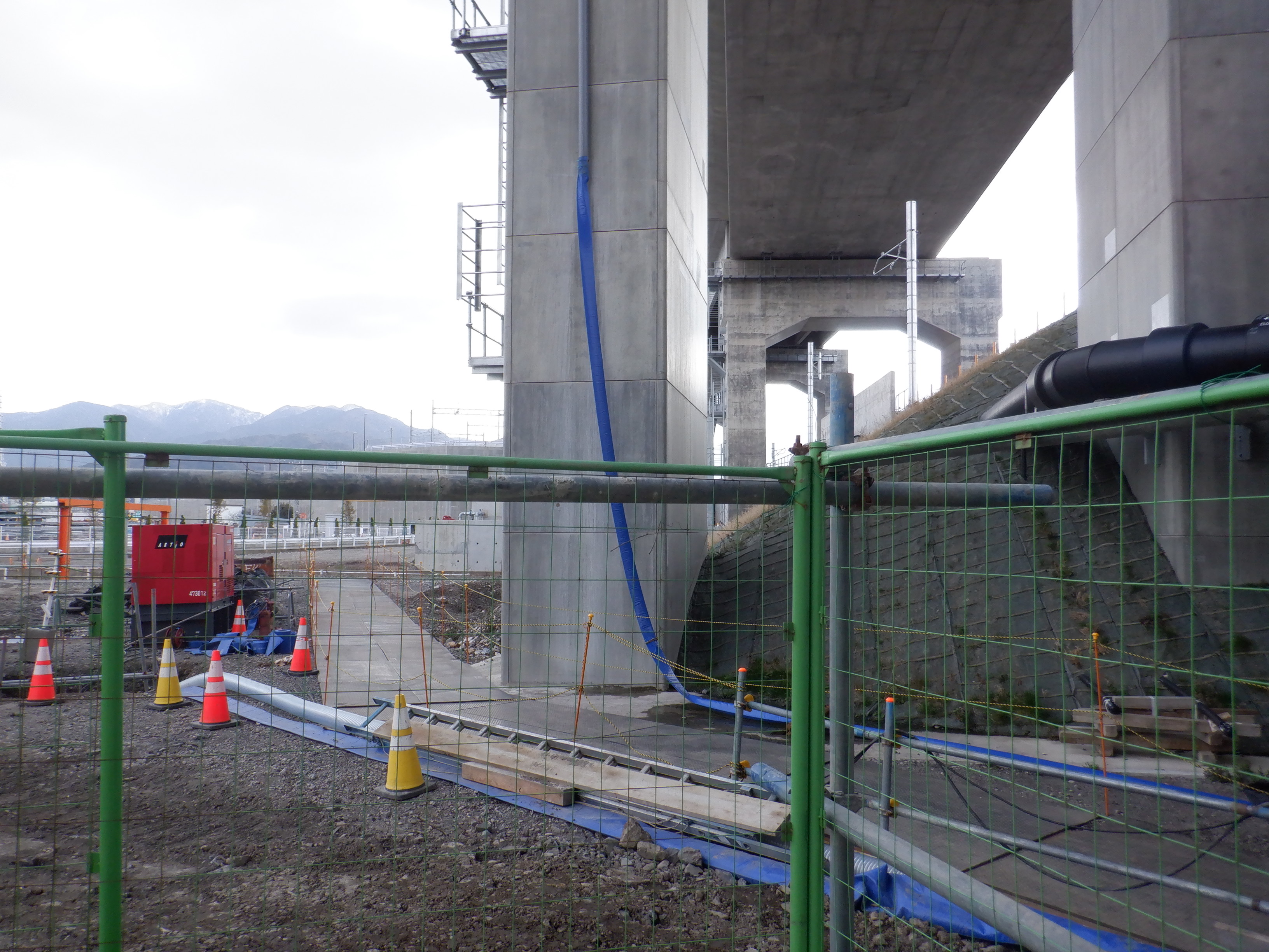 やまなみ口側も少し残っていた足場がほとんど無くなり、ごく一部を除いて足場がなくなった様子を見ることができるようになりました。また、在来線と新幹線高架の間に特急列車の検修線ができつつあります。