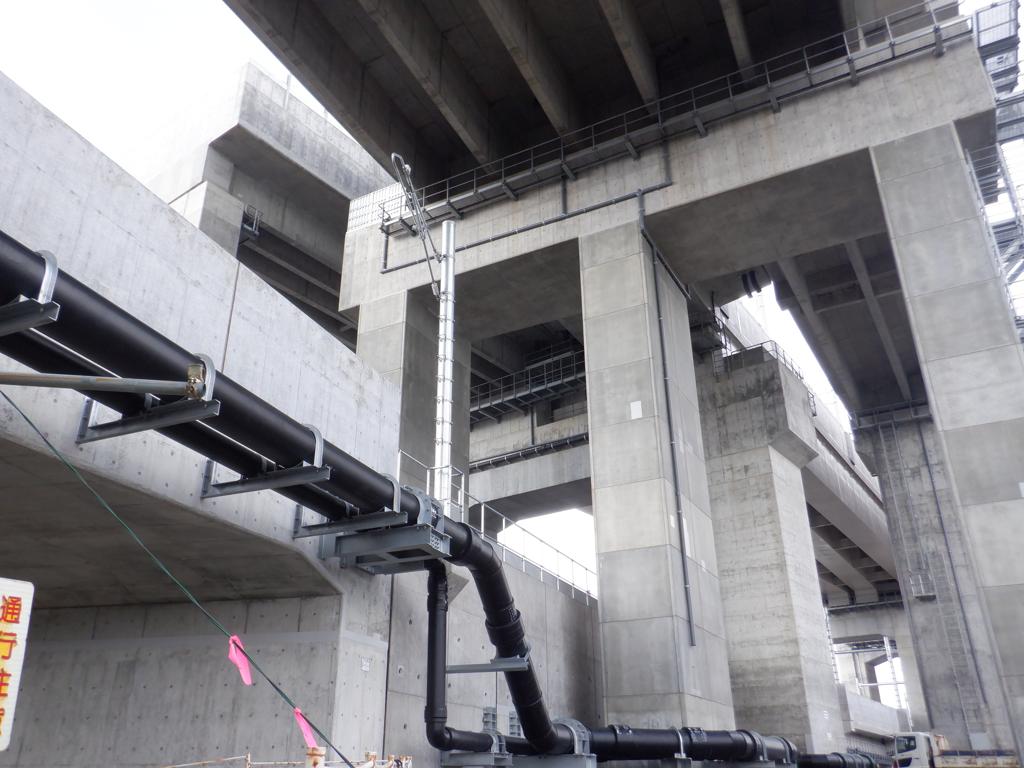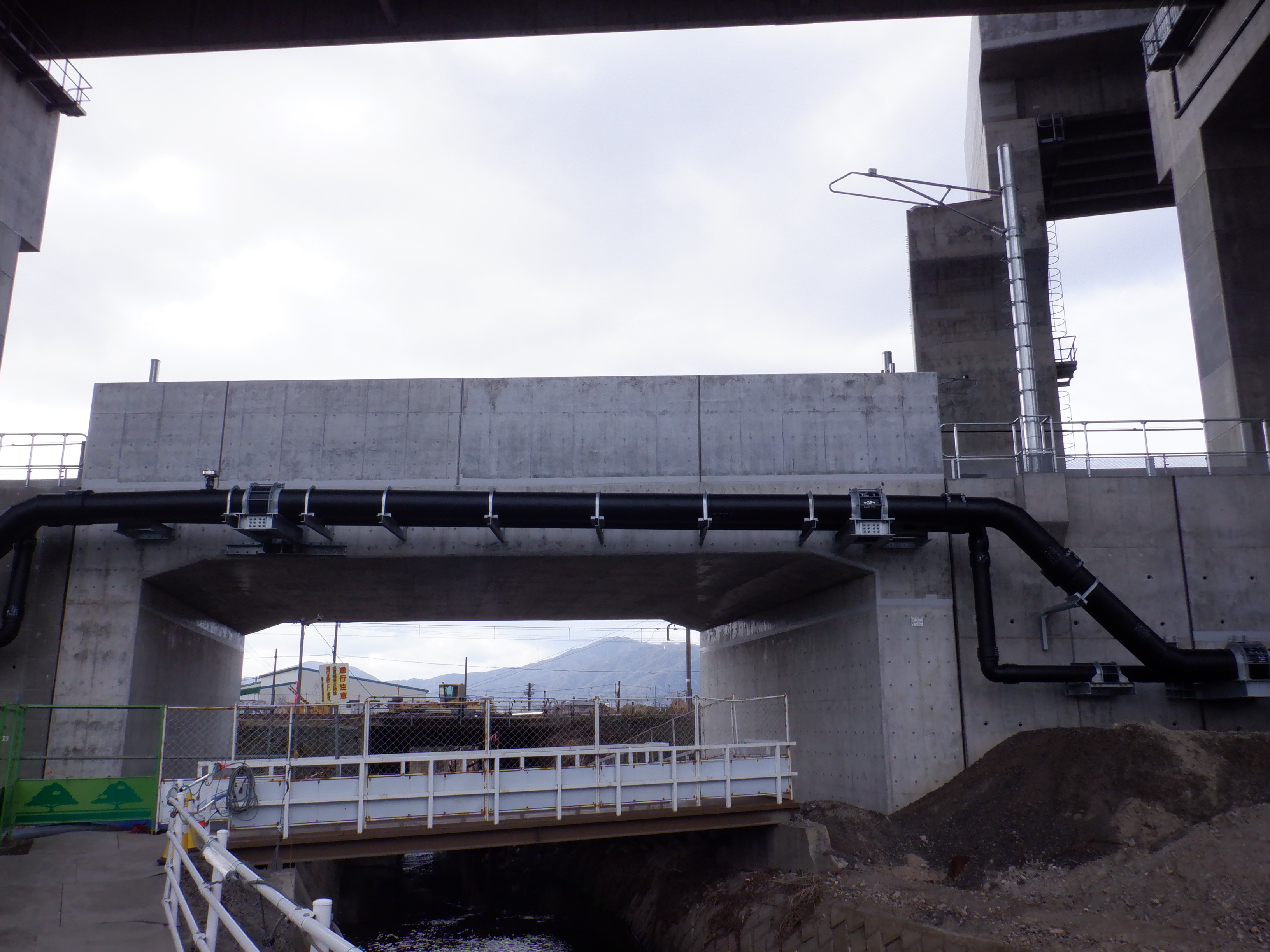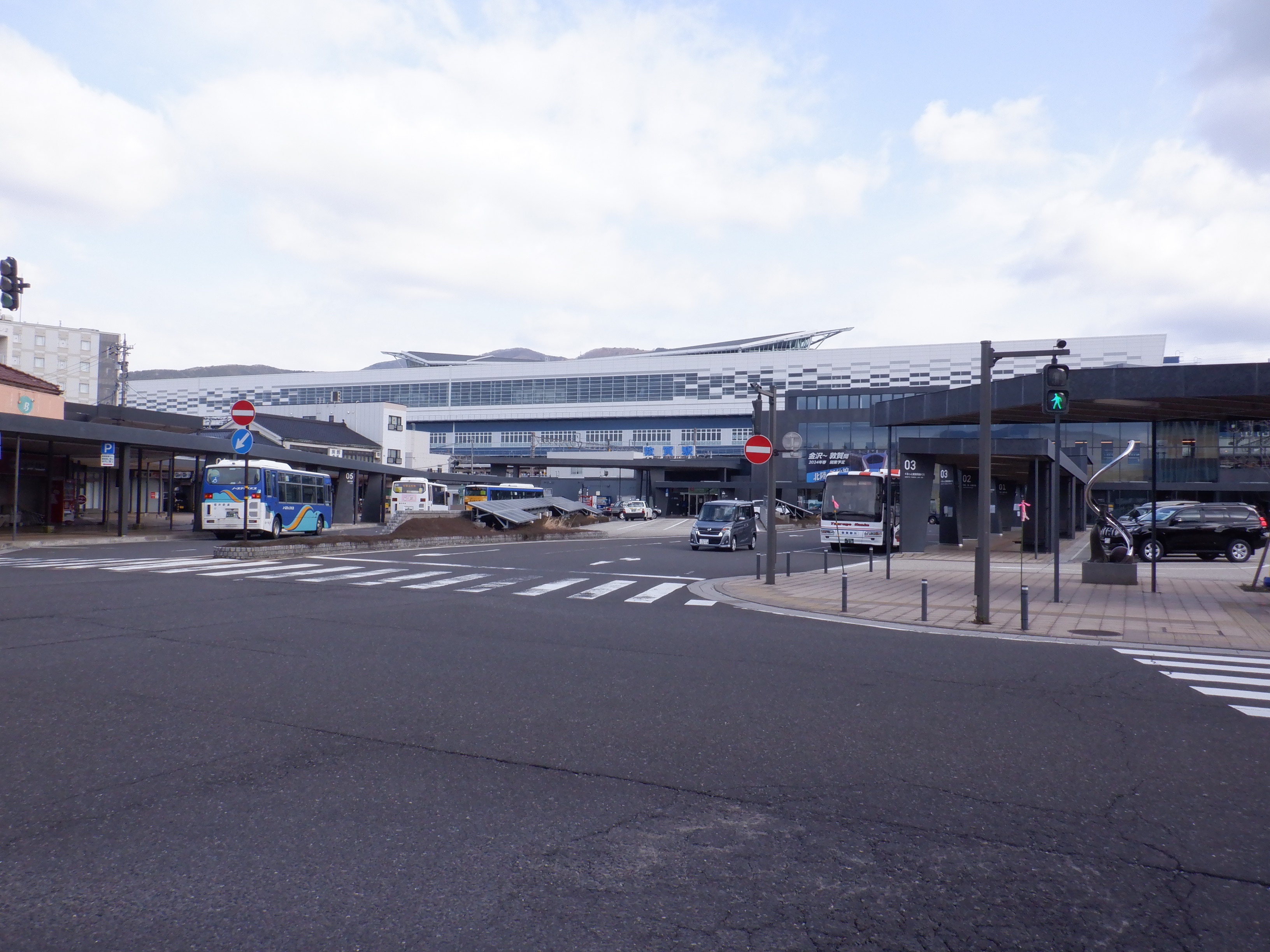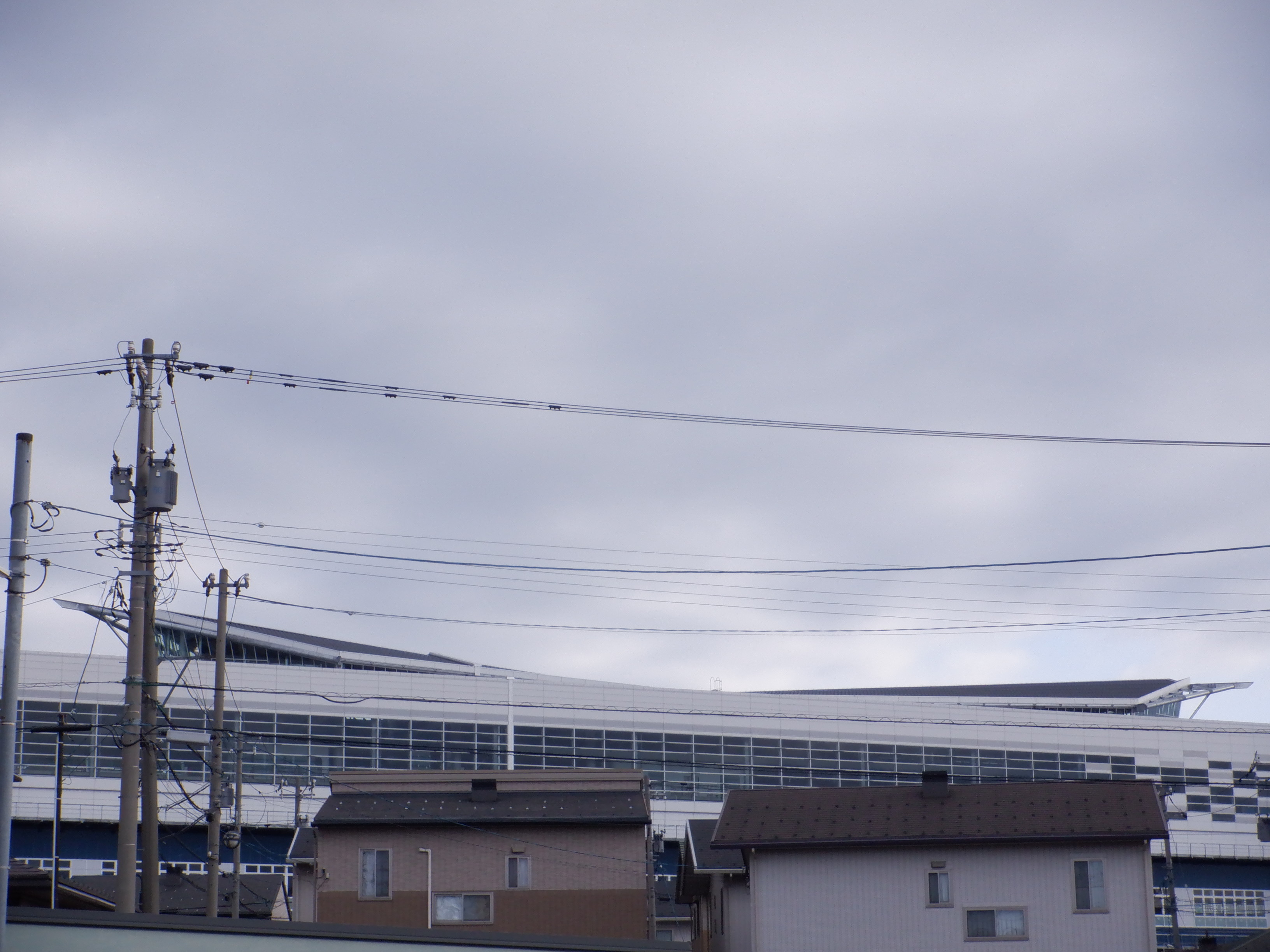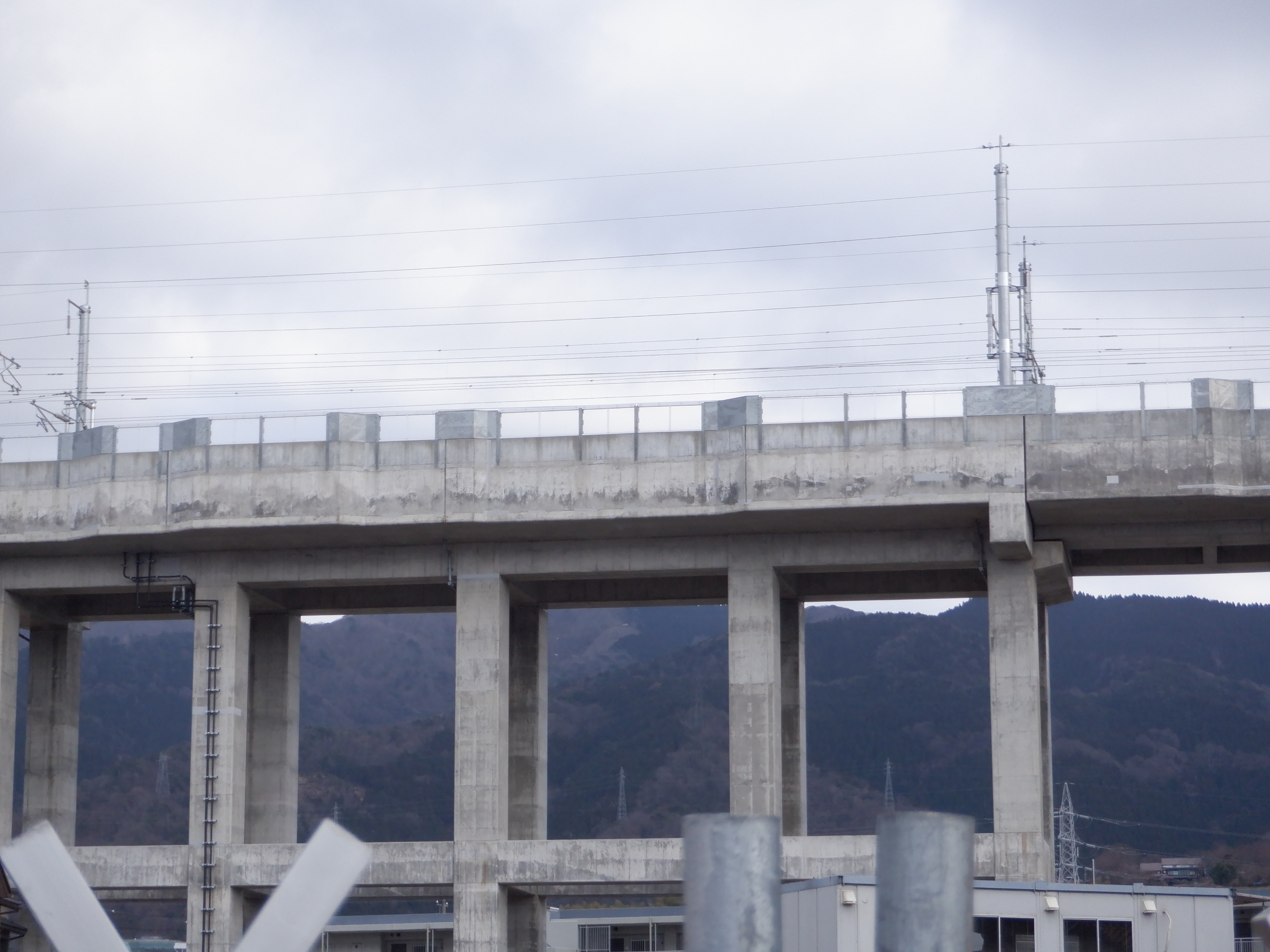 やまなみ口側も少し残っていた足場がほとんど無くなり、ごく一部を除いて足場がなくなった様子を見ることができるようになりました。また、在来線と新幹線高架の間に特急列車の検修線ができつつあります。