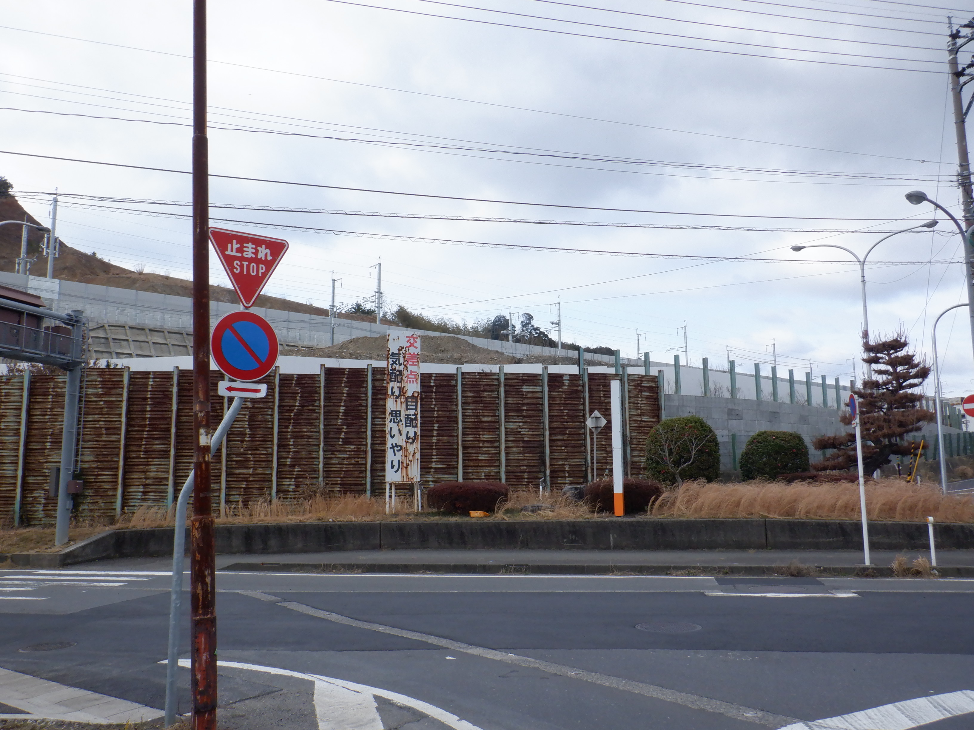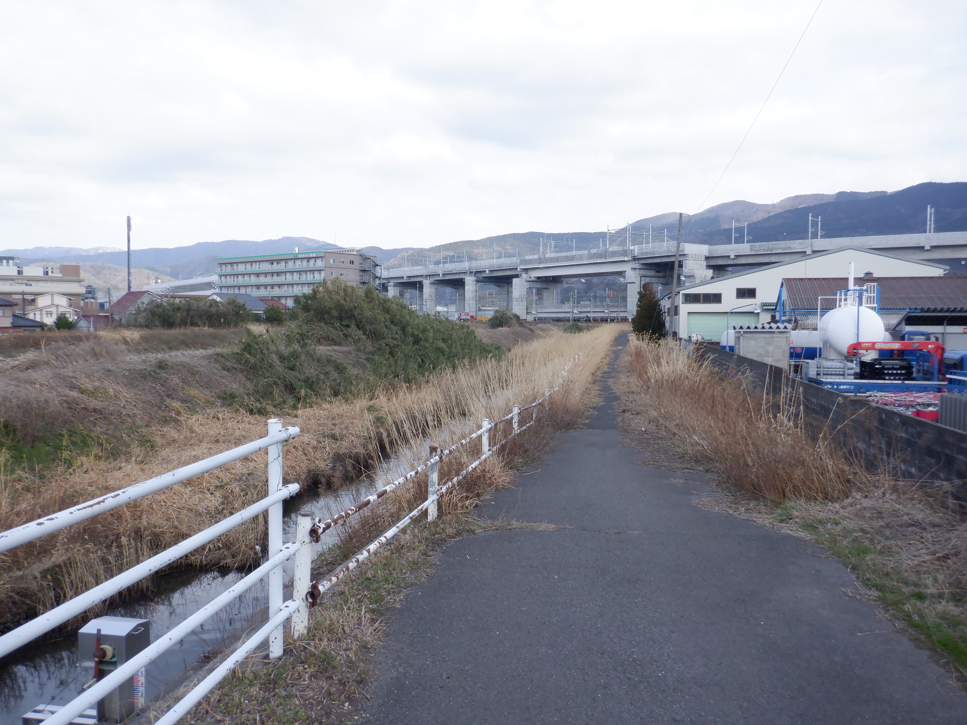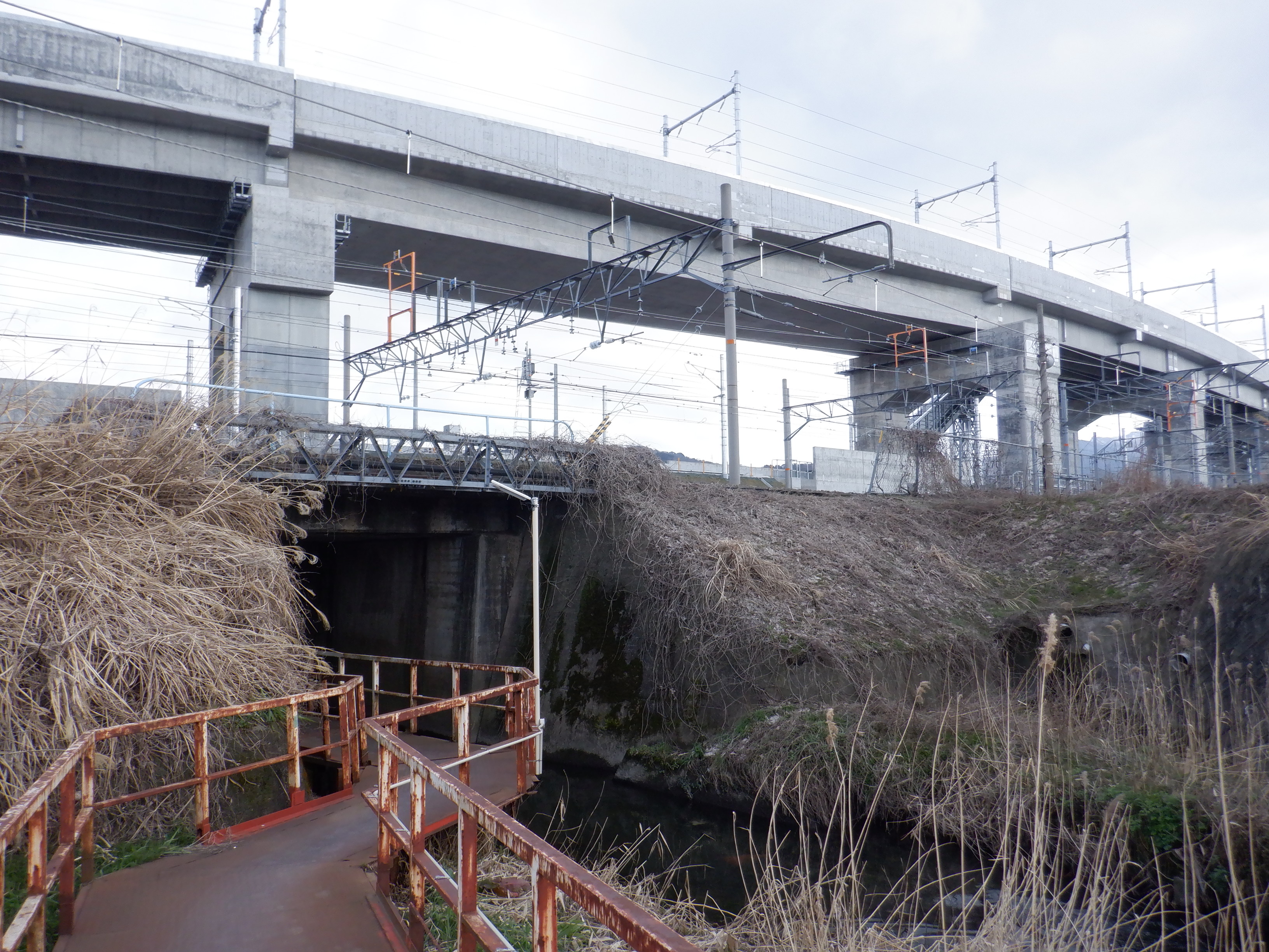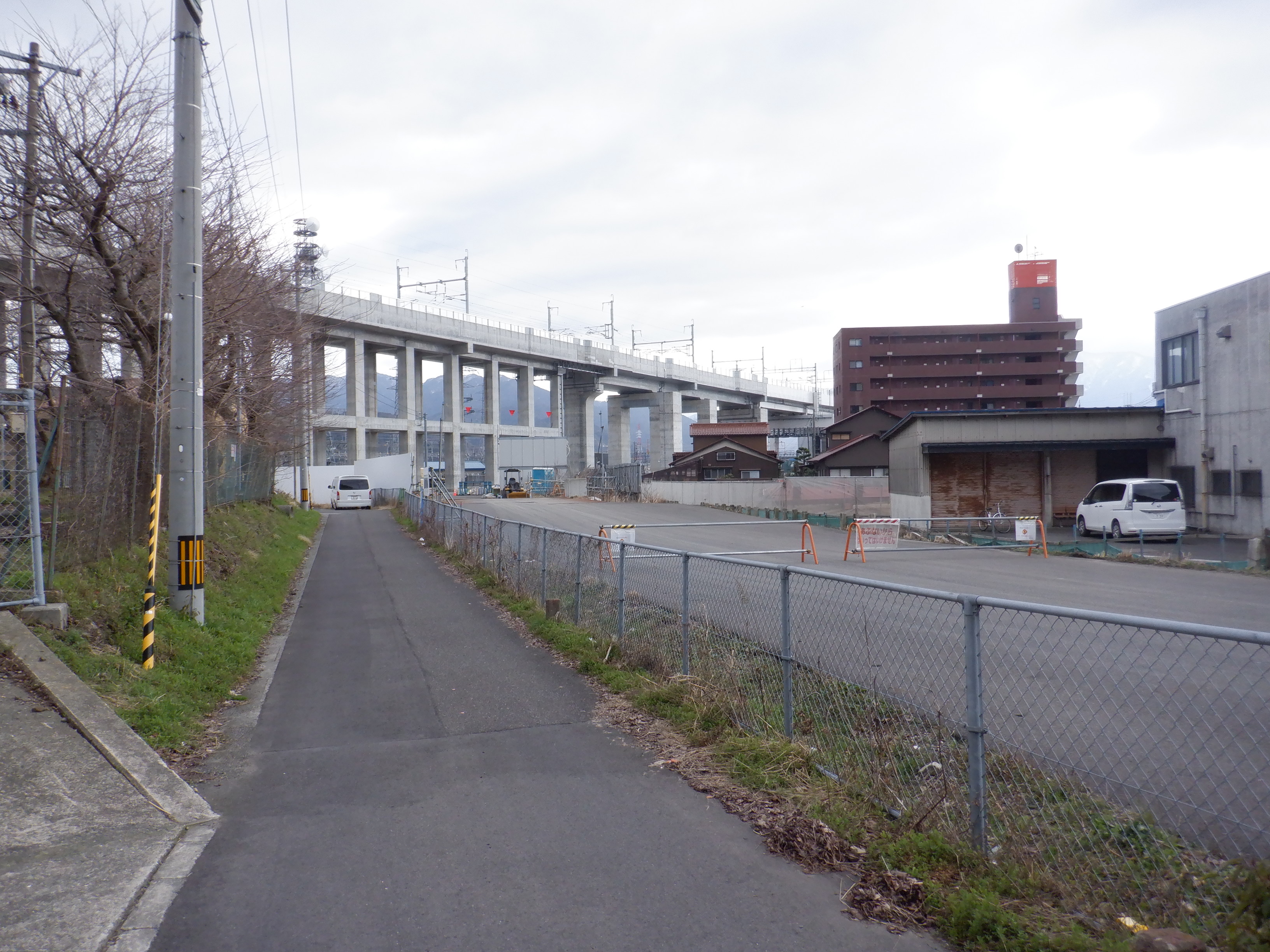 踏切を渡ったところとそのあたりから見た高架の様子。