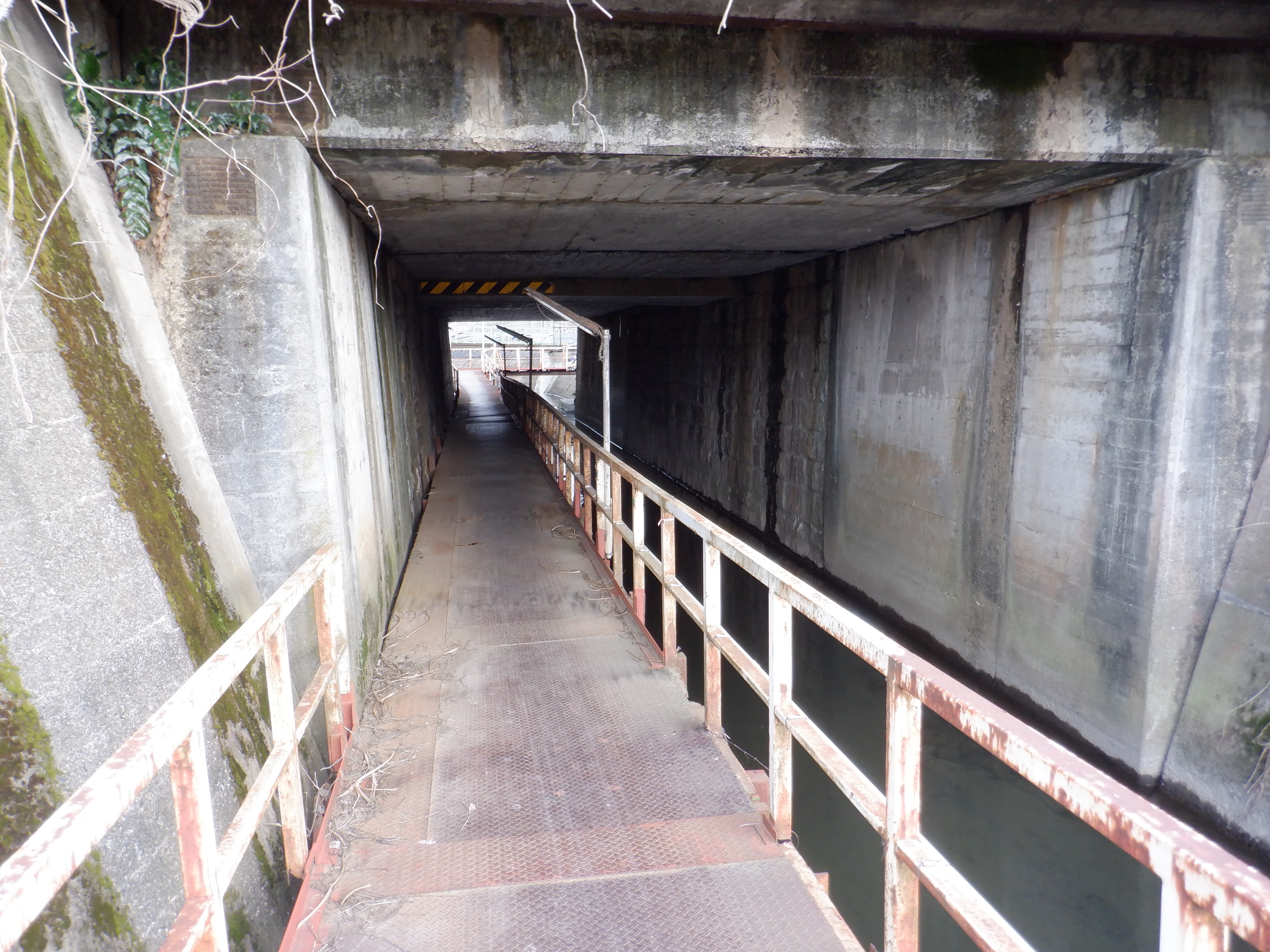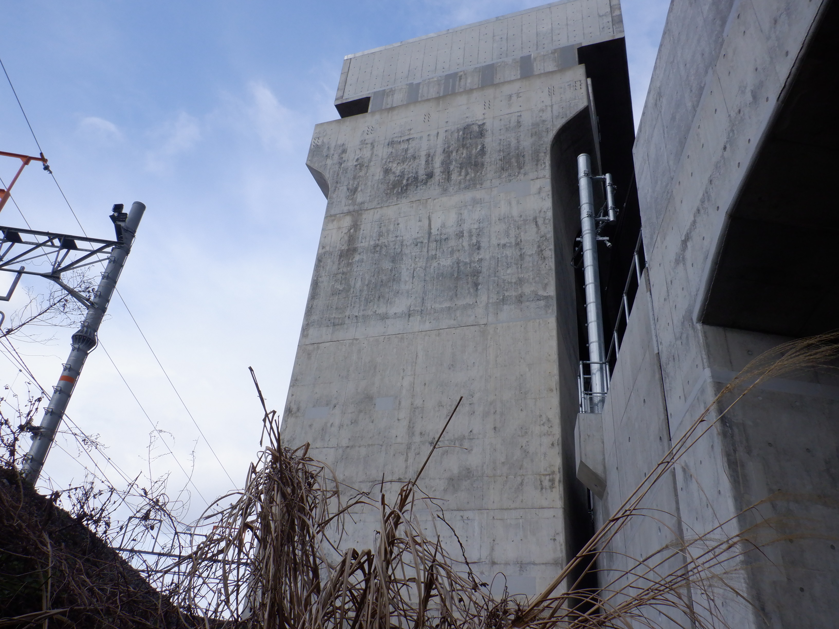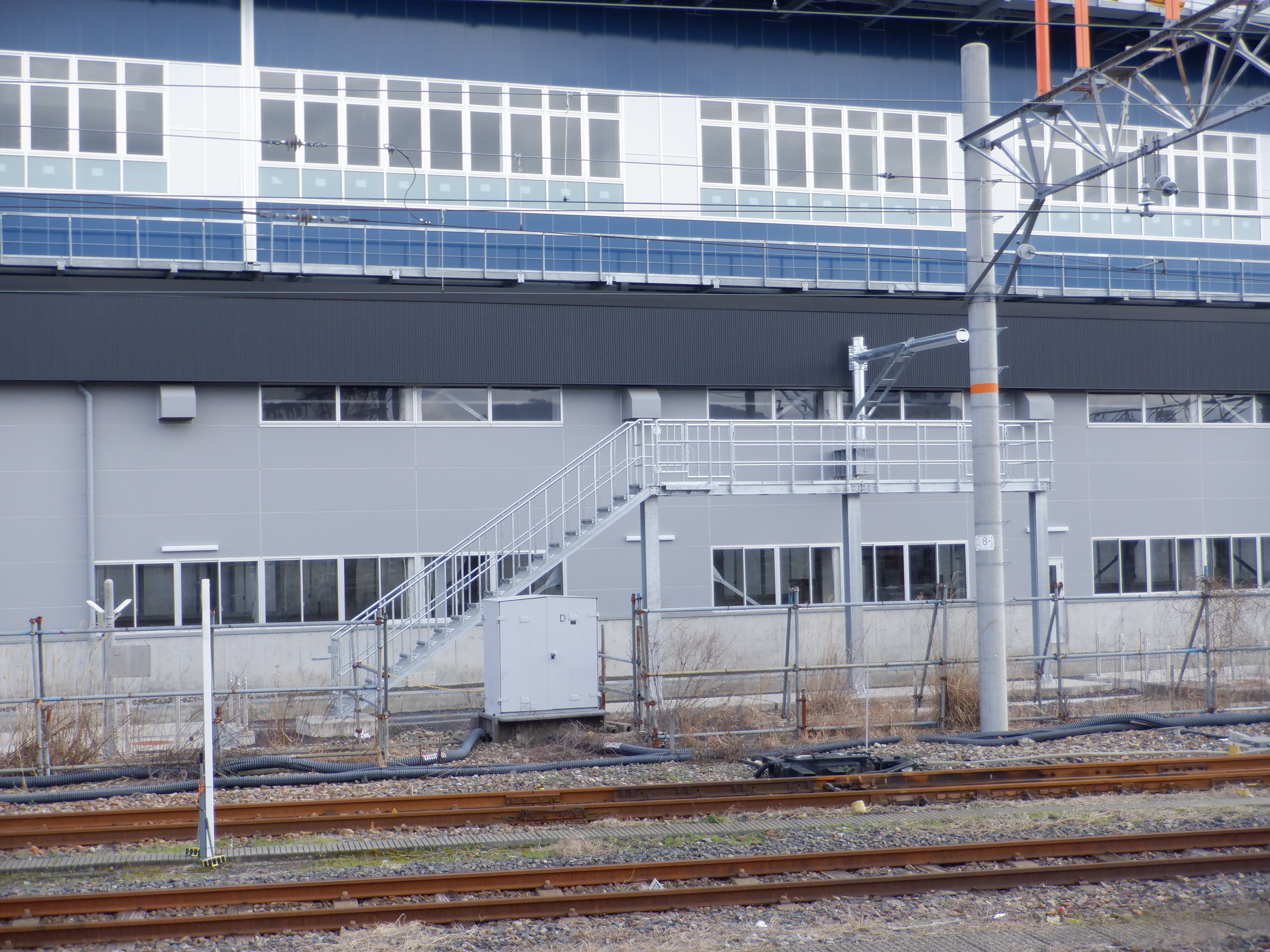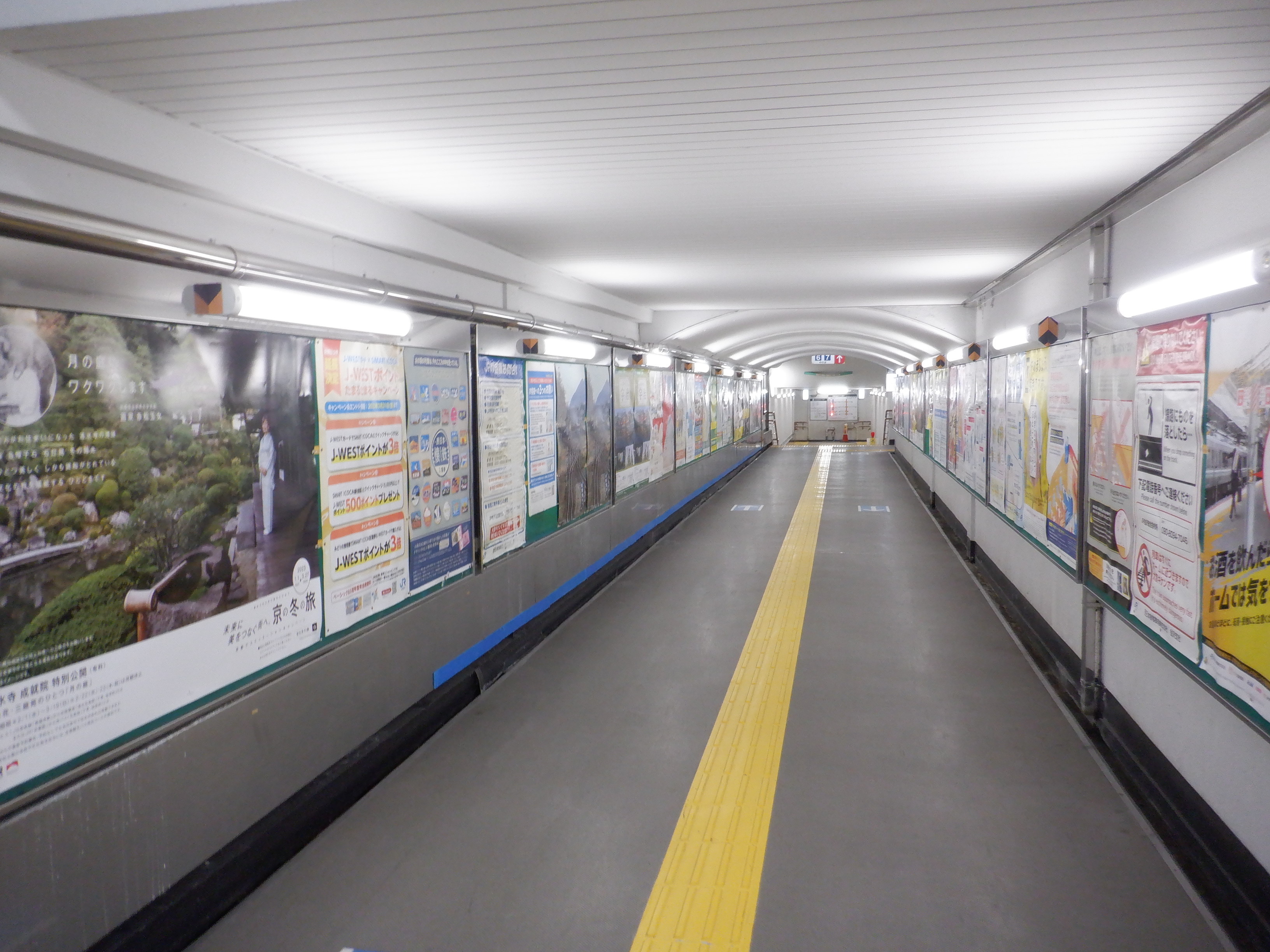跨線橋に上がってきて、連絡通路となるところを見たところ。