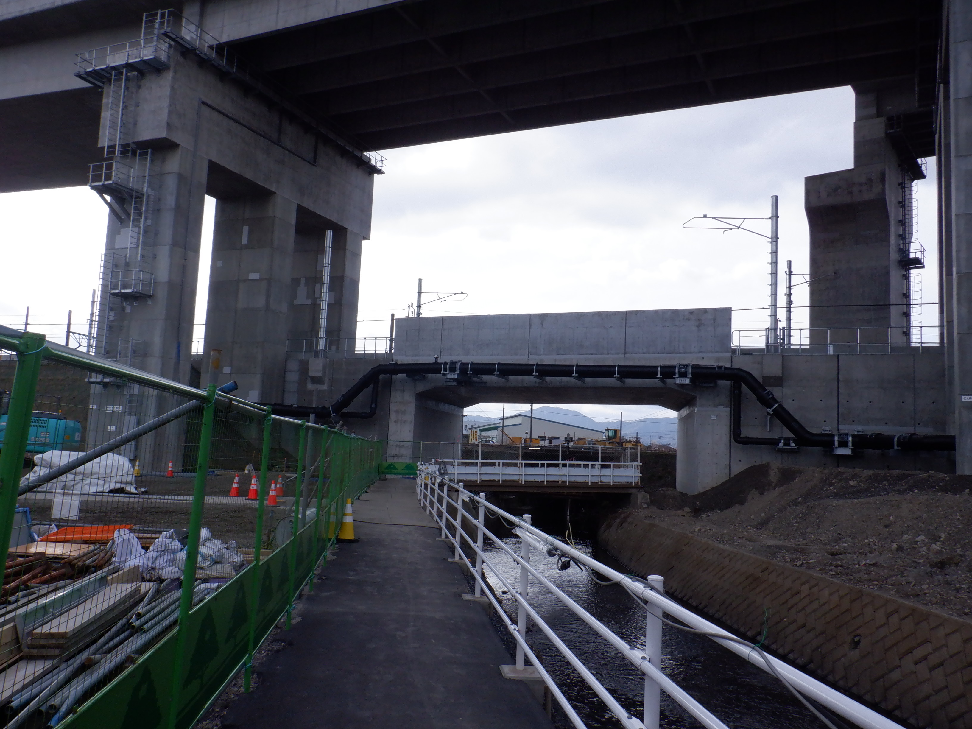 橋のところは歩道の工事も進み、特に支障がなく通ることができるようになっていました。