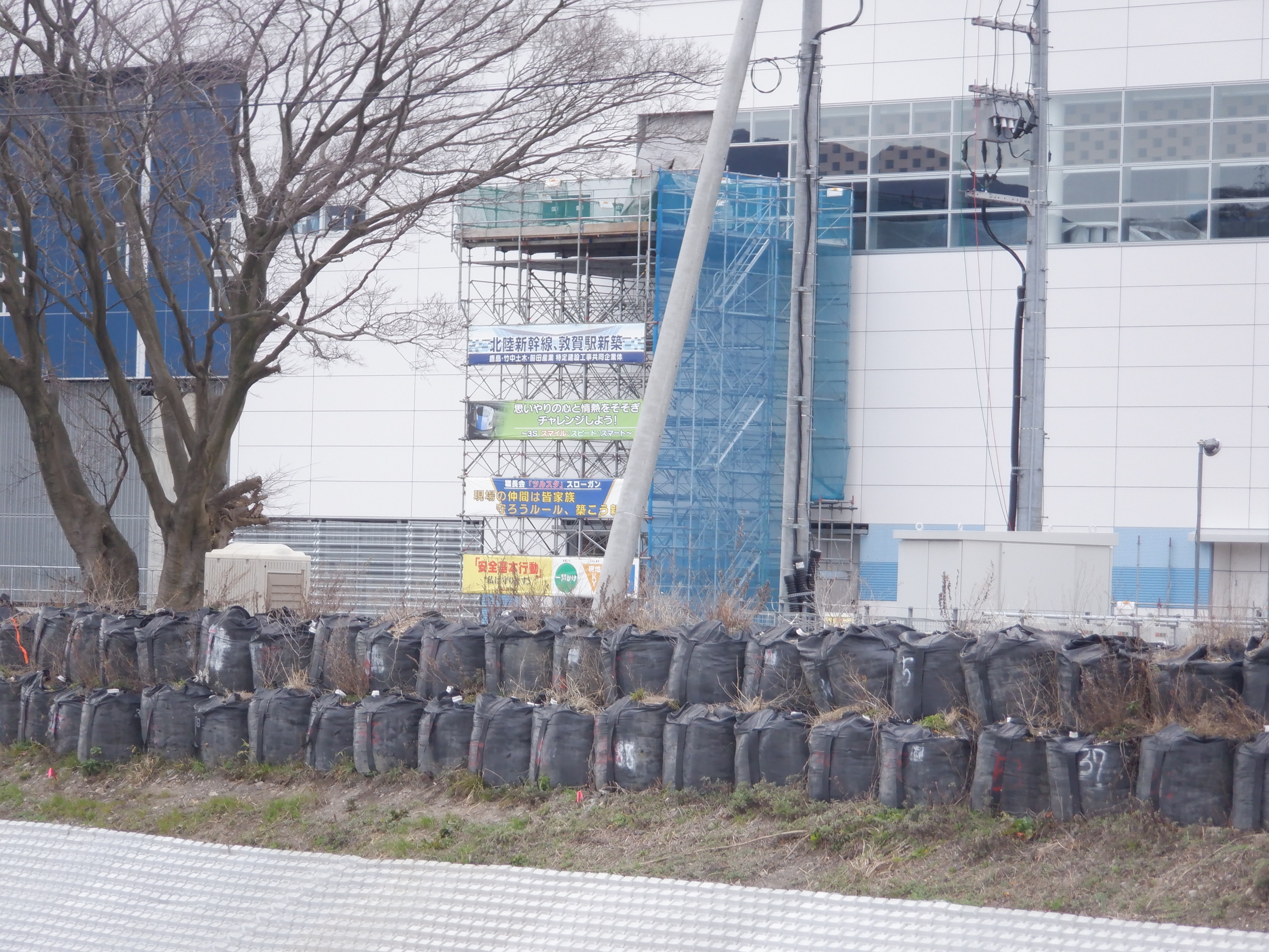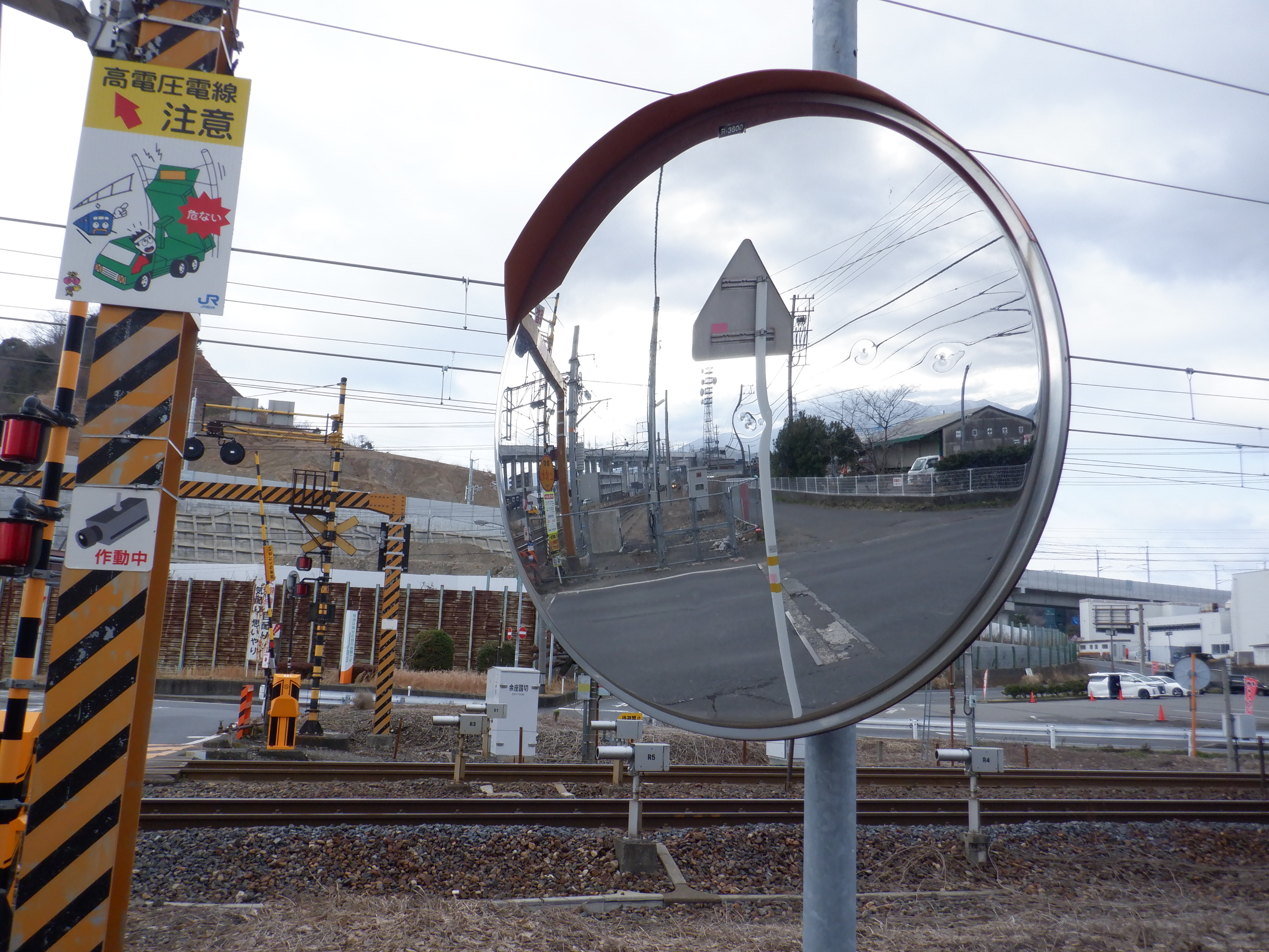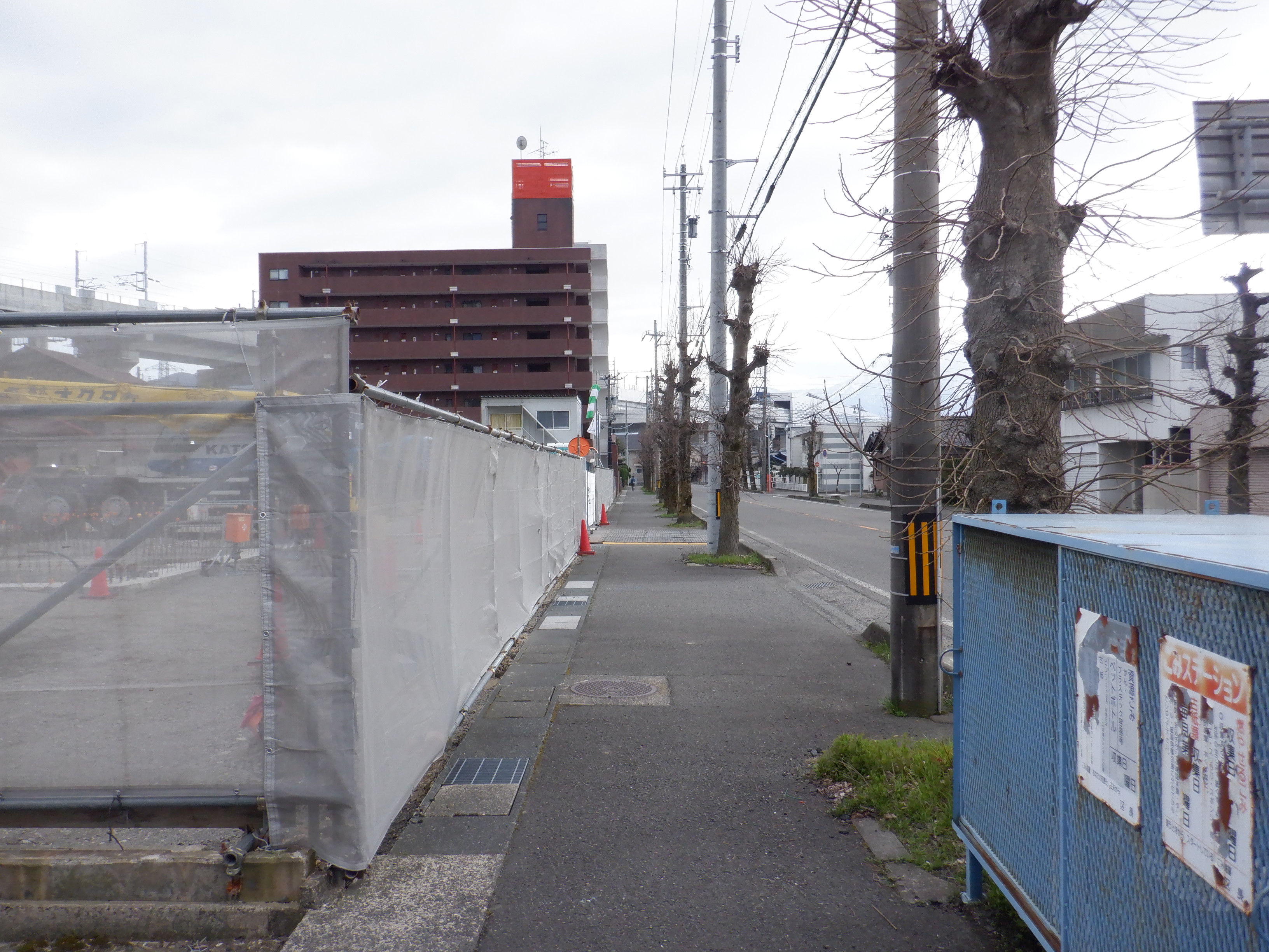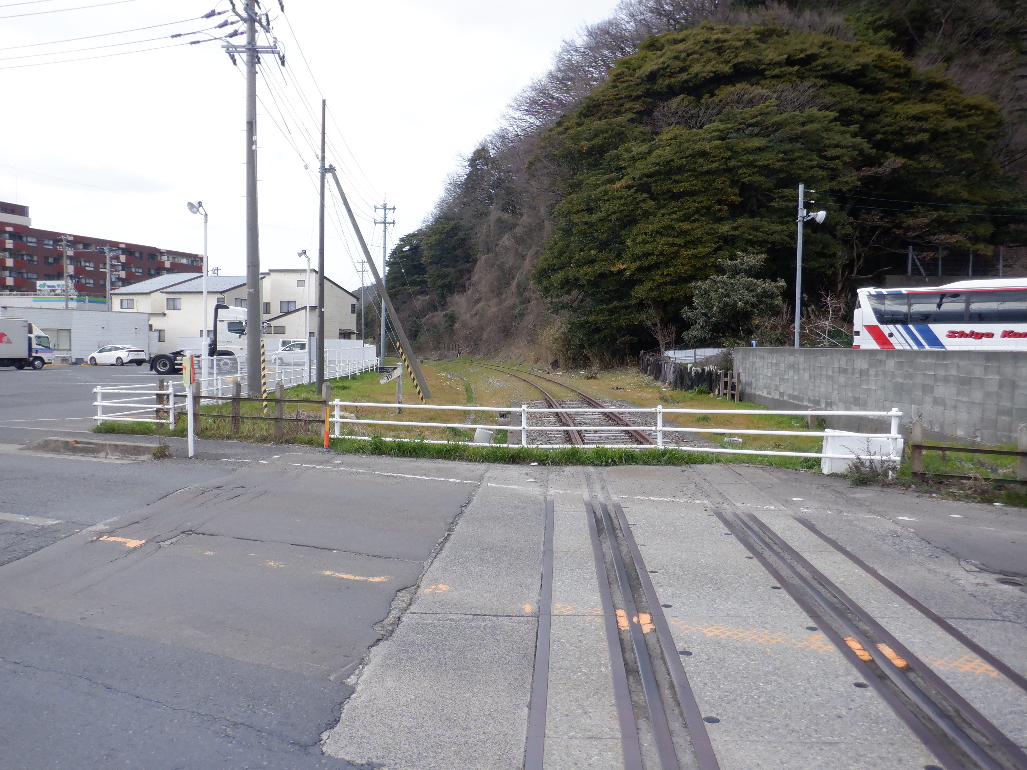 線路沿いのところで、敦賀駅側(元々通り抜け不可)はすぐに通行止めになっていて、いつもどおり踏切に向かいます。