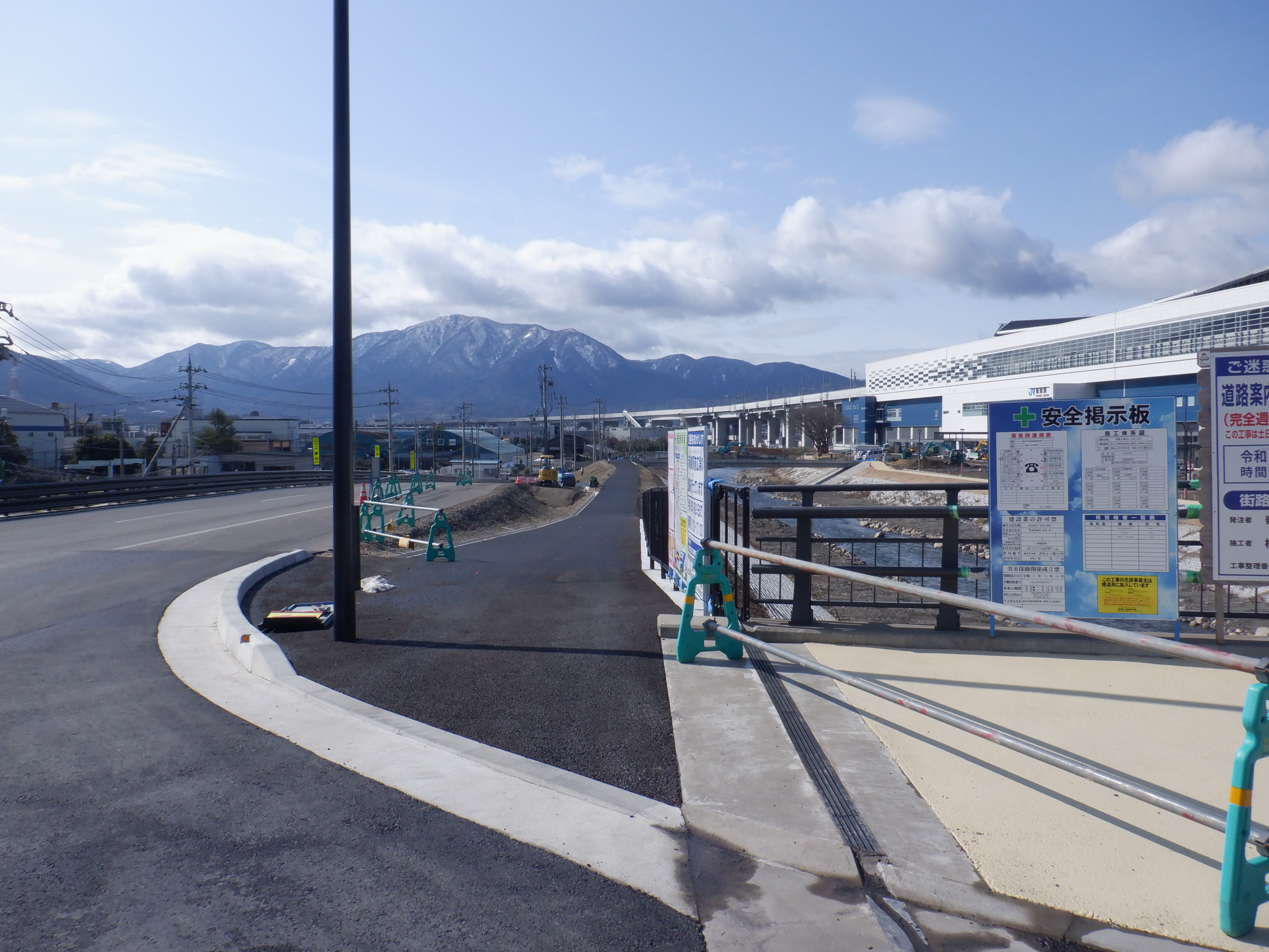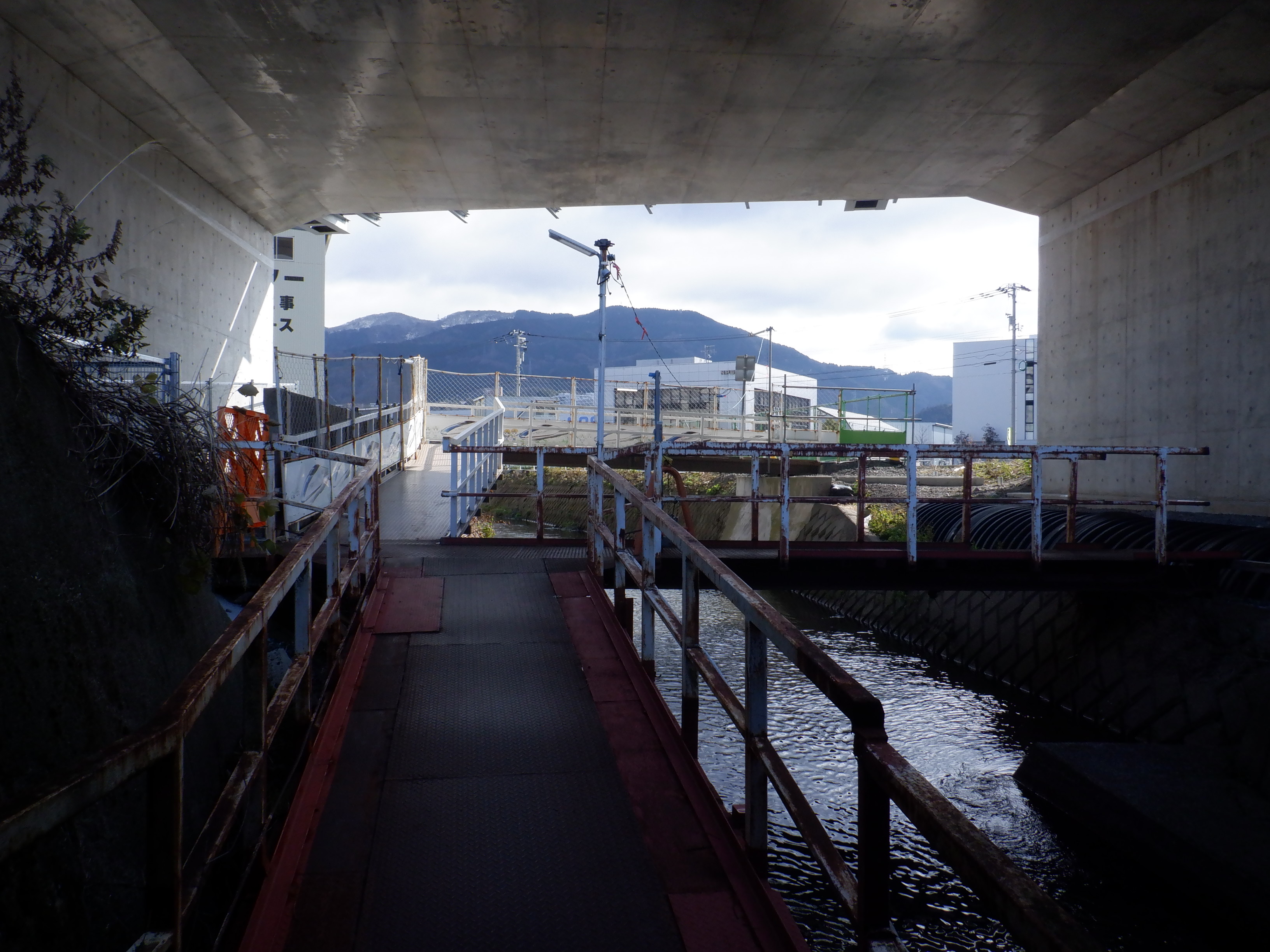 堤防沿いを少し戻ることができたので、新しい橋のあたりから見たやまなみ口。