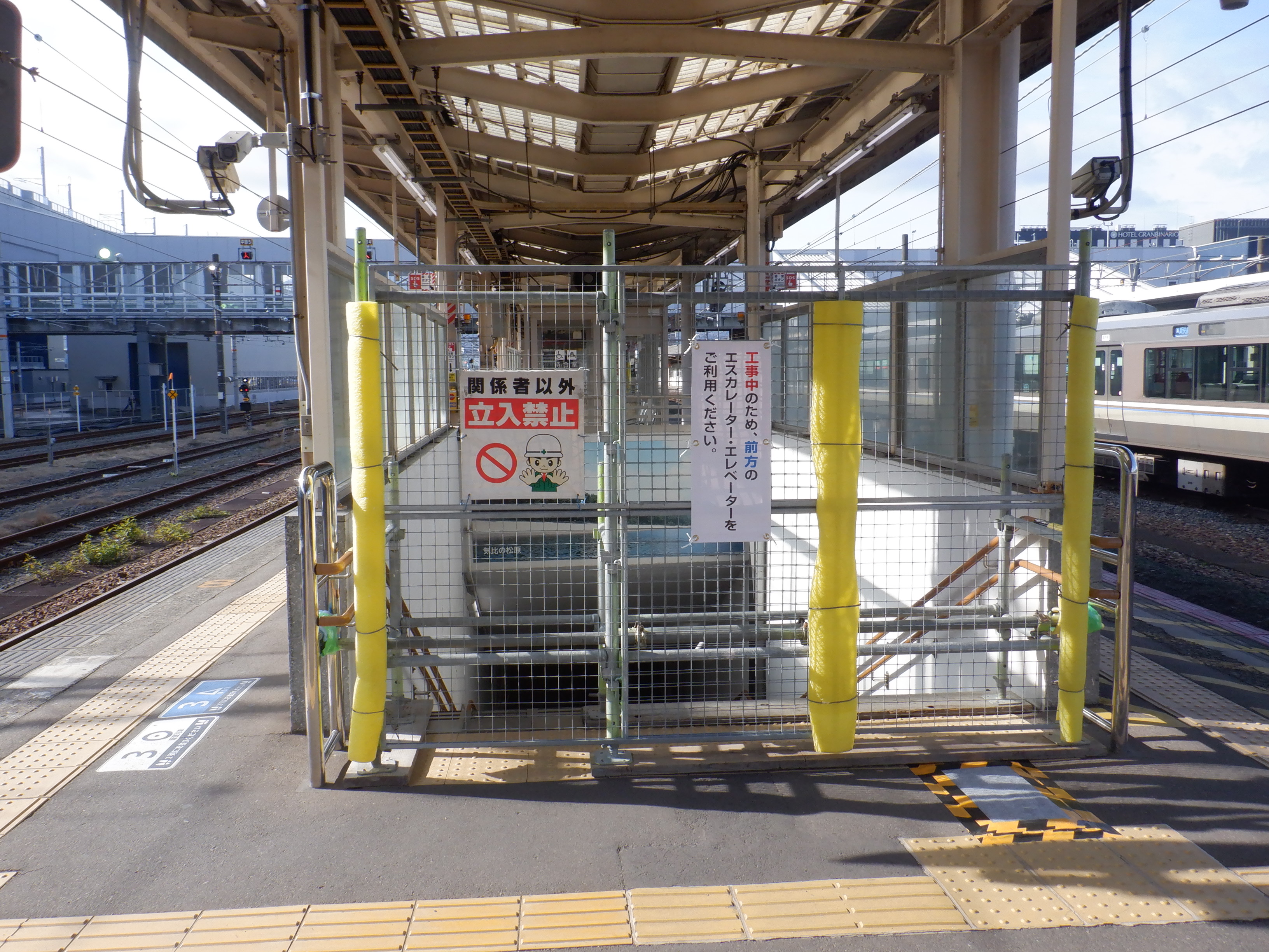 3・5番のりばの地下道改修のところ。上がって行くところののりば案内も変わってきています。