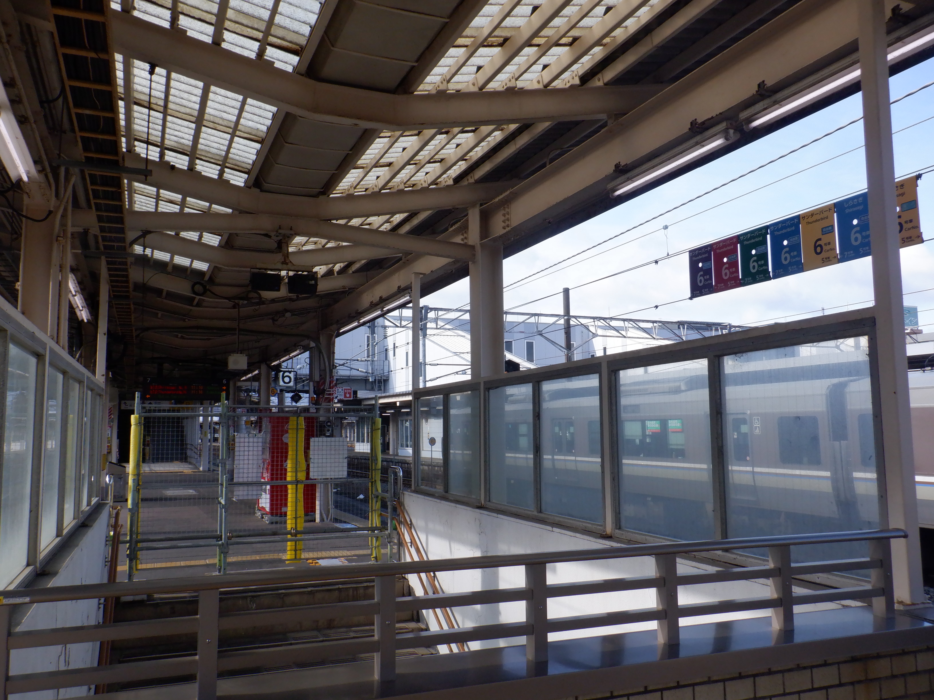 6番のりばの特急列車の乗車位置案内。点灯するランプが撤去されています。