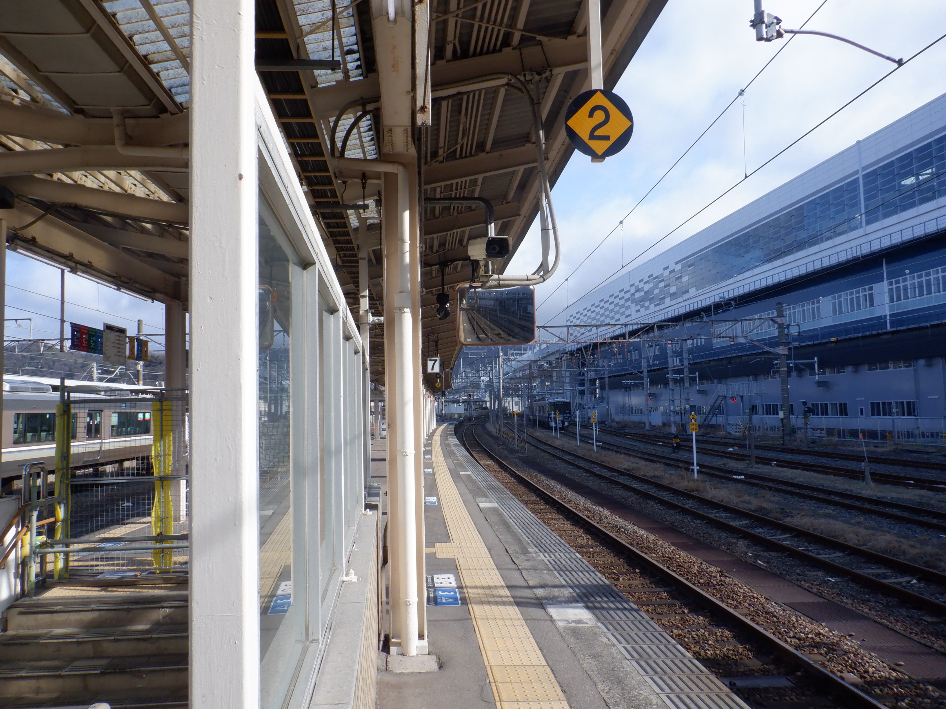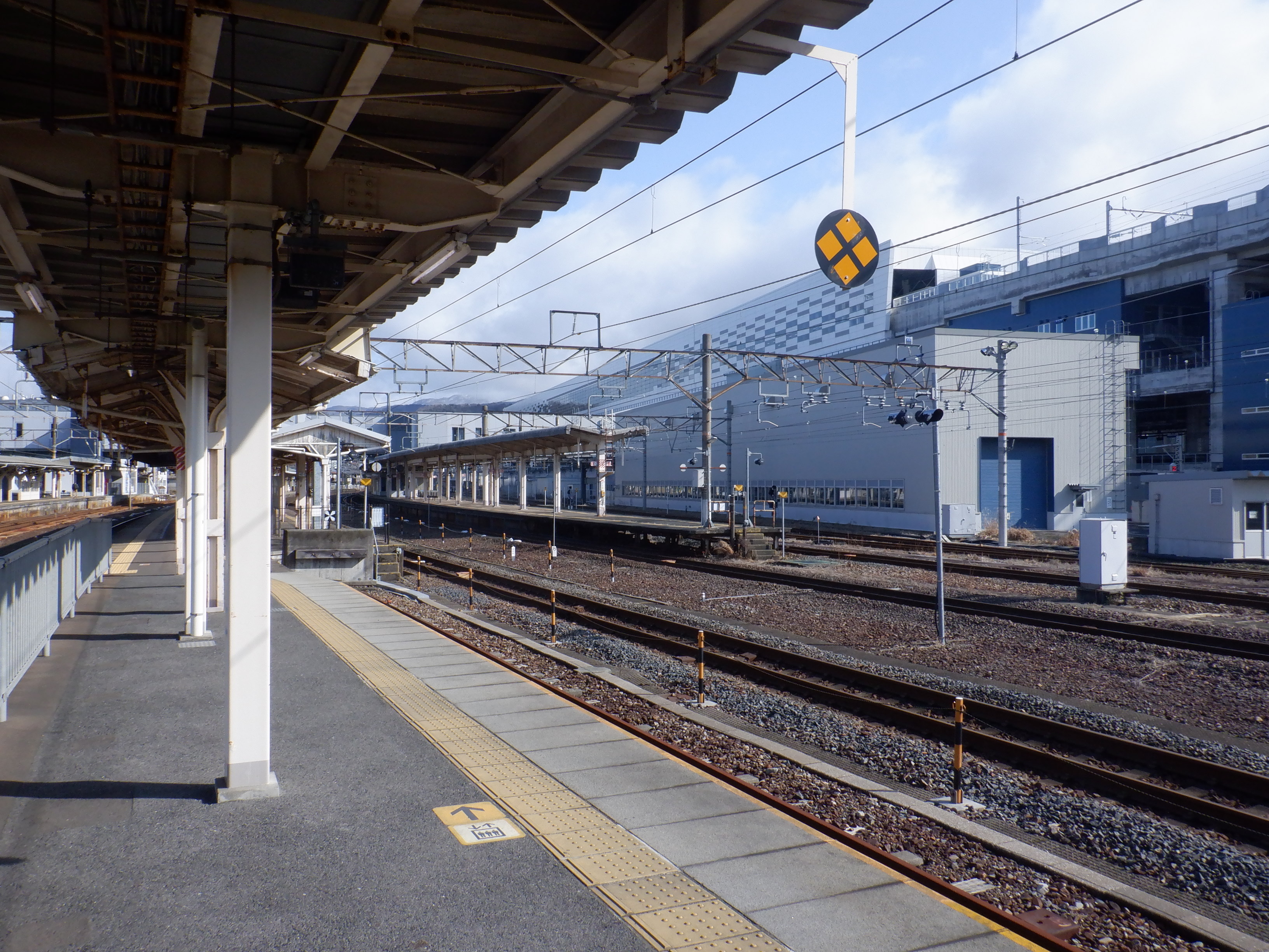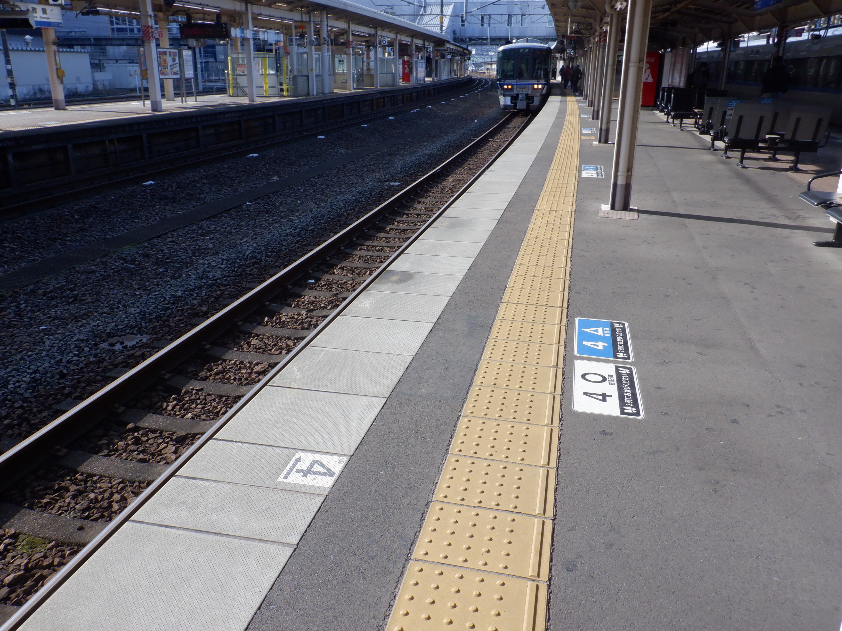 4番のりばの様子。駅名標はハピラインロゴなどが貼られていませんでした。