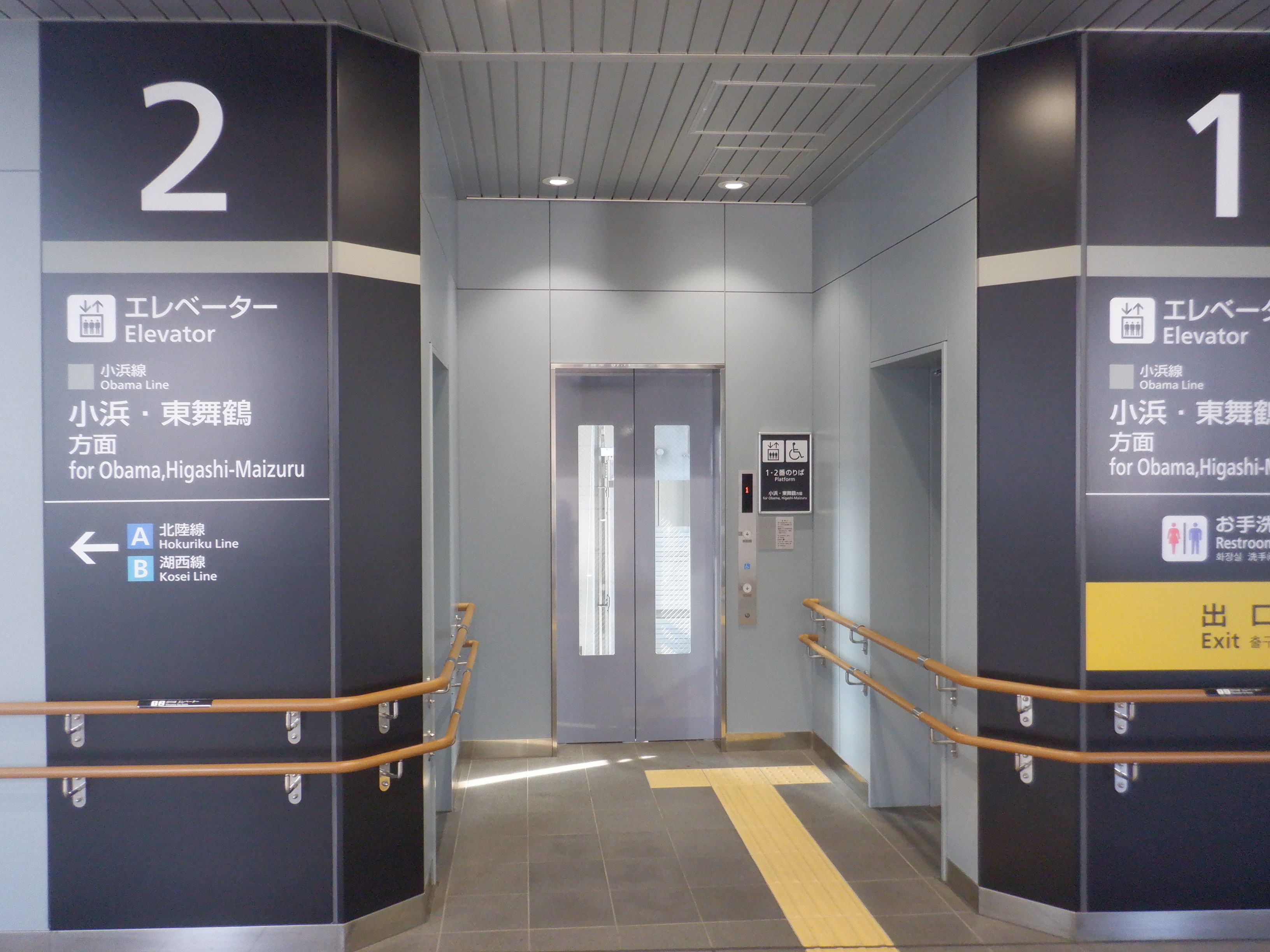 1・2番のりばの跨線橋側エレベーター入口。