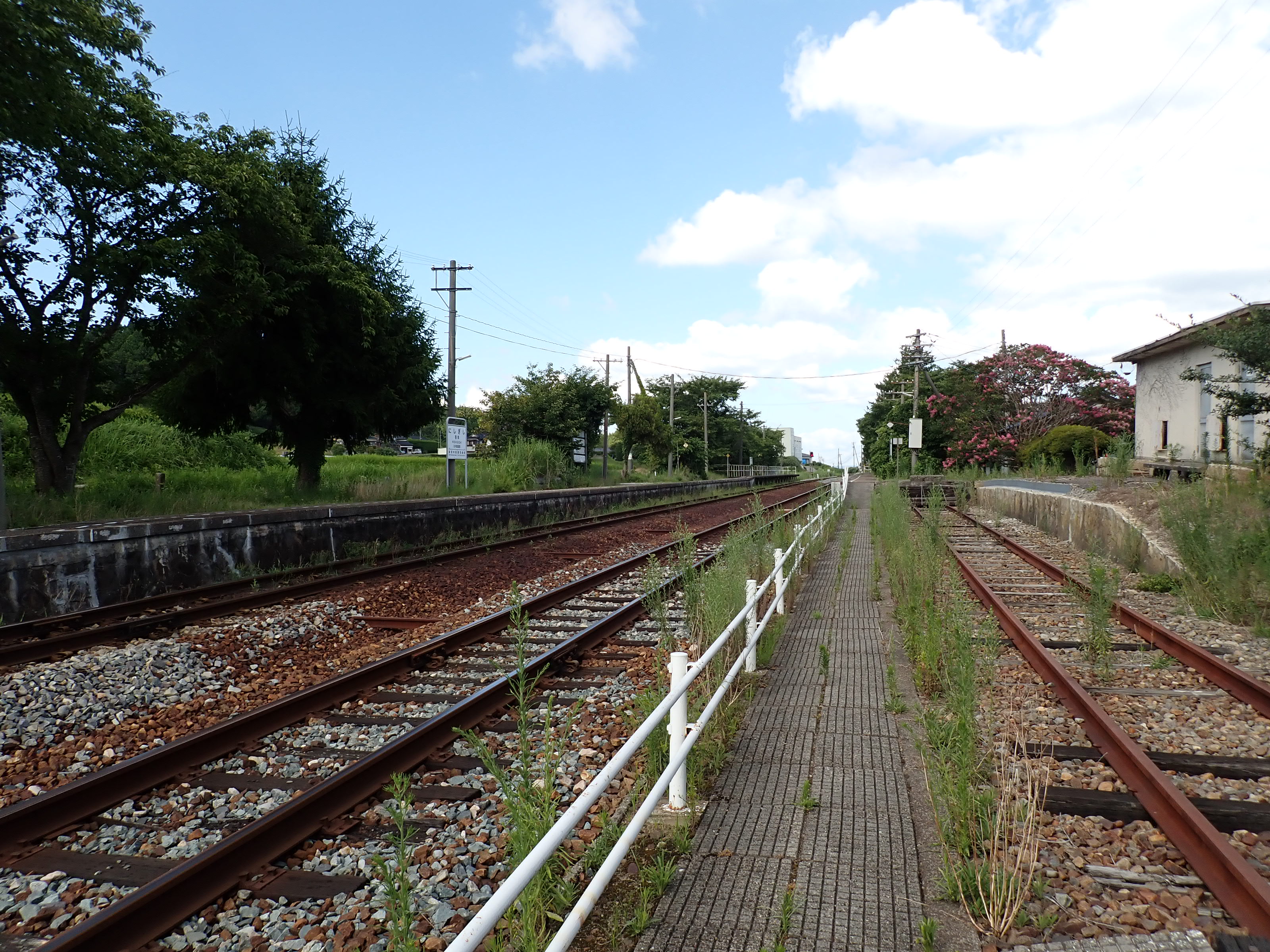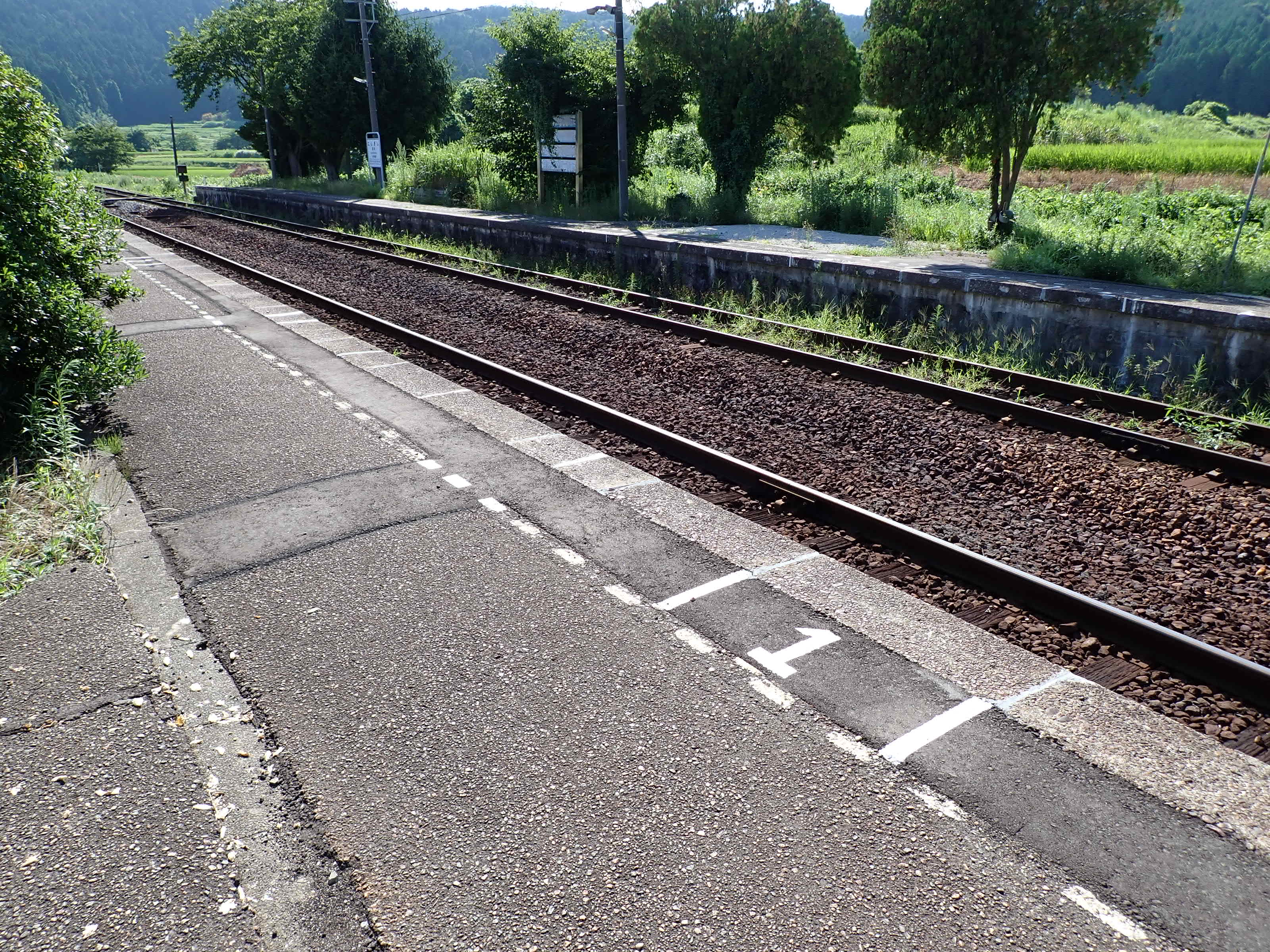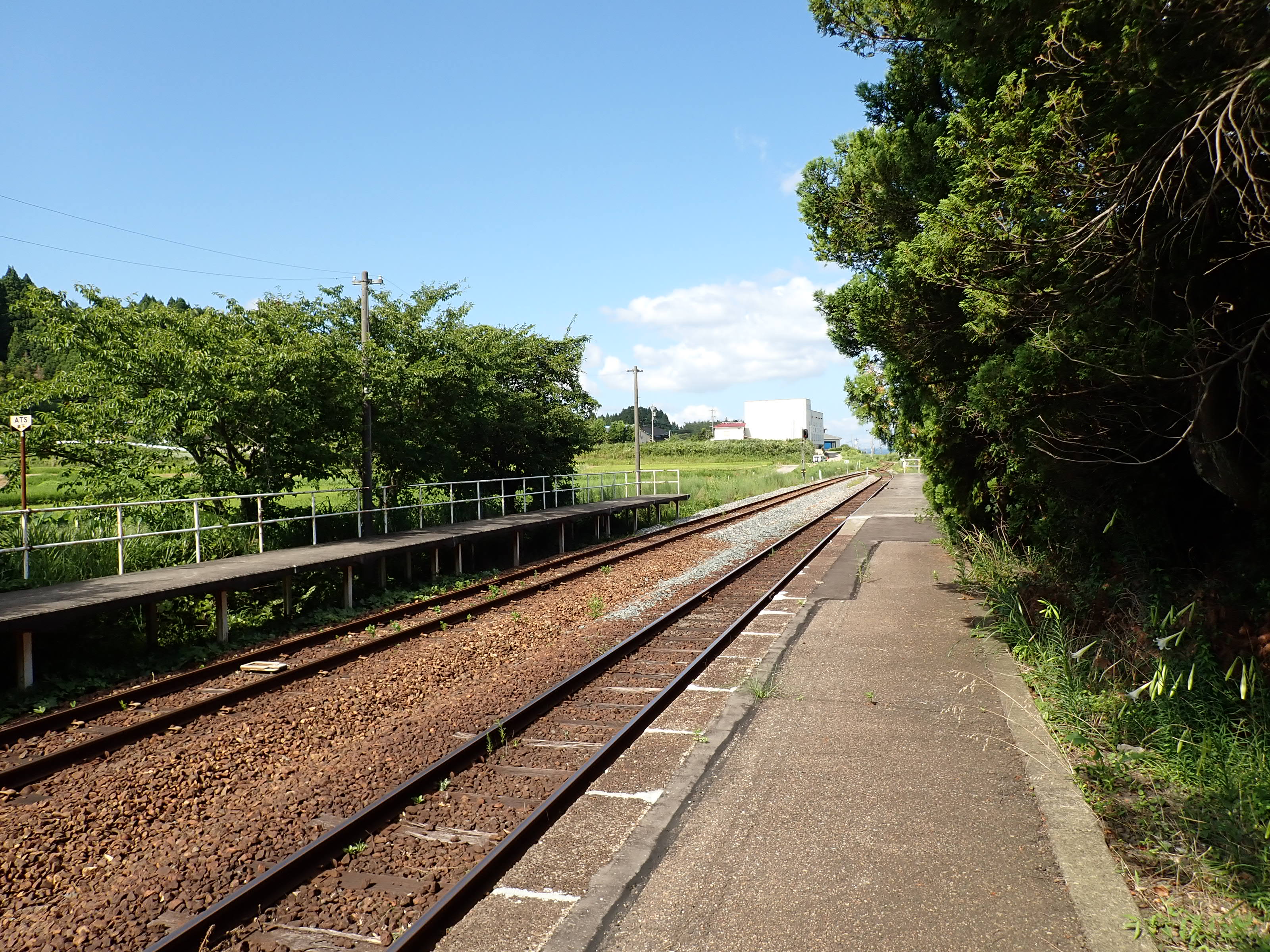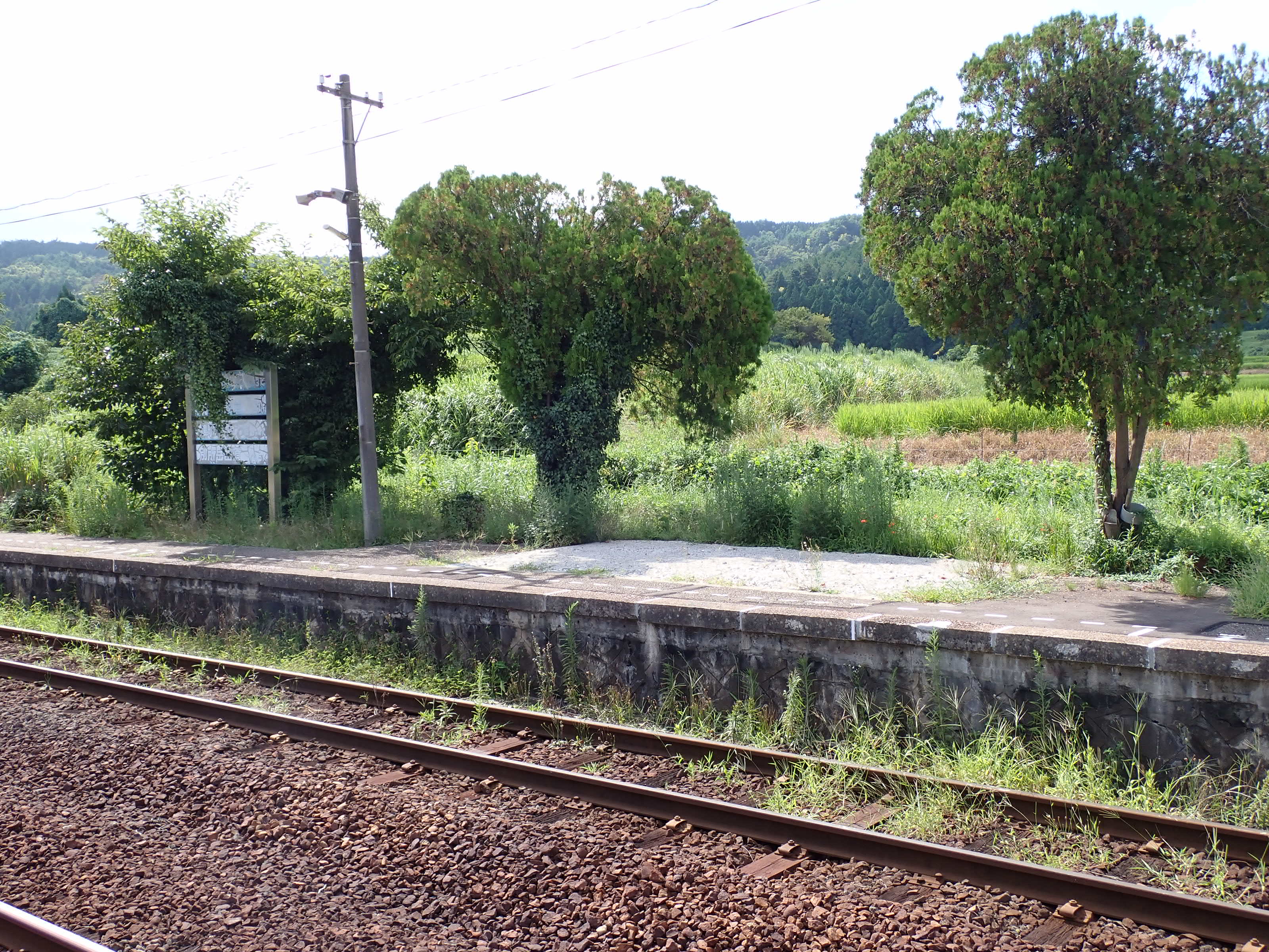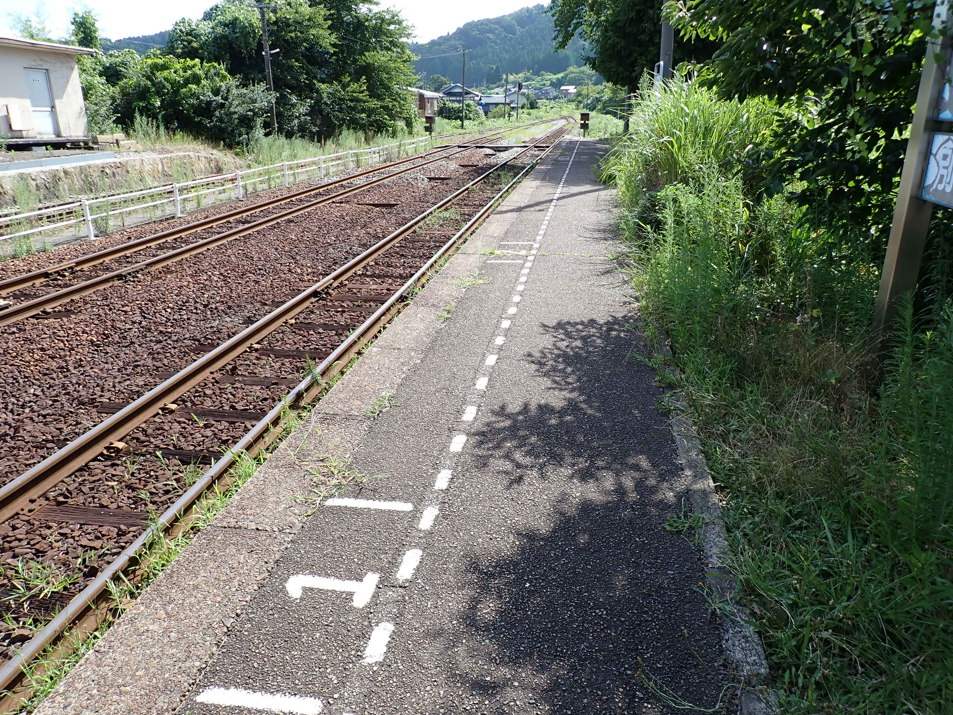 駅舎側のホームから見た反対側のホーム。待合室が撤去されました。
