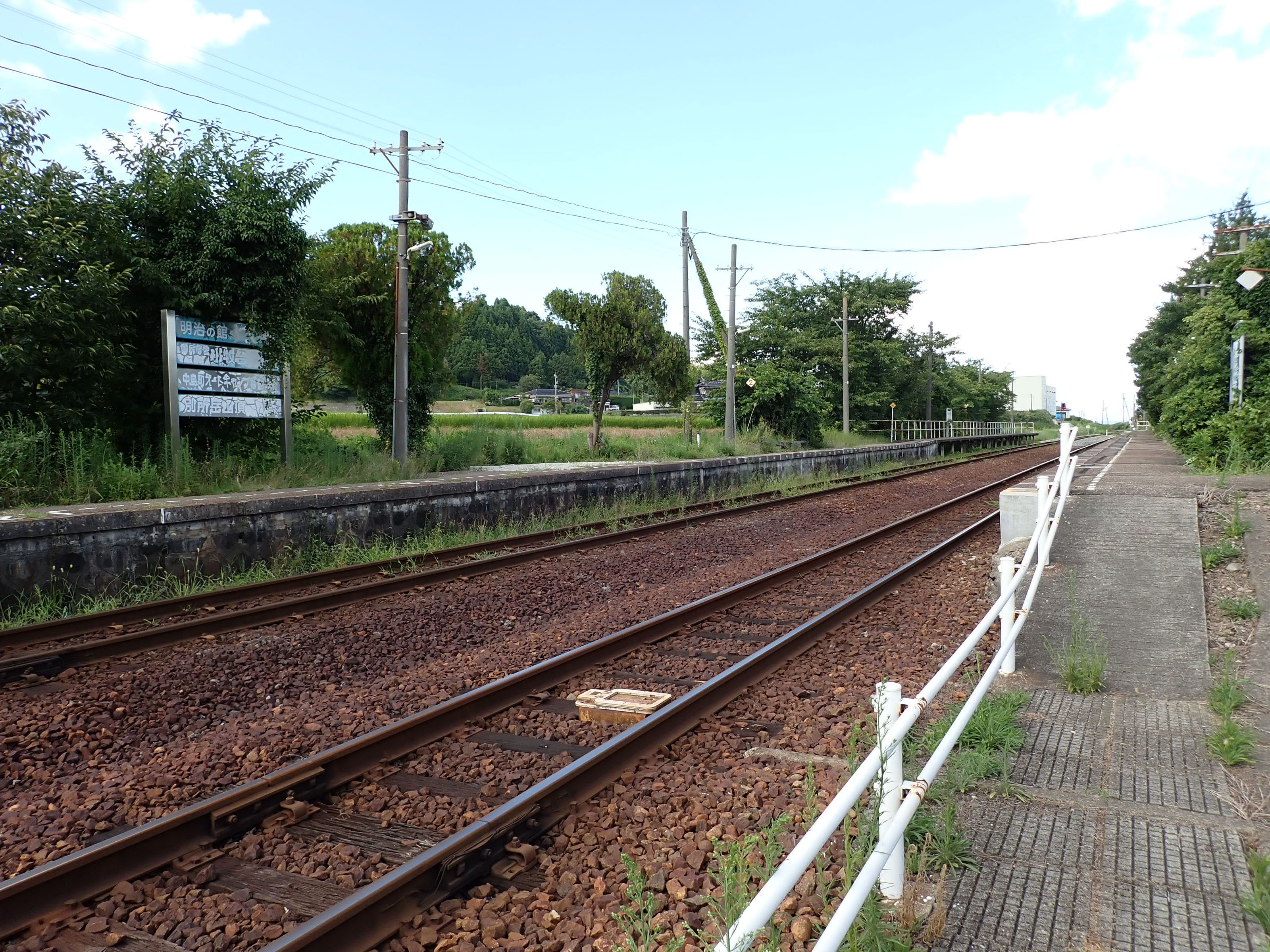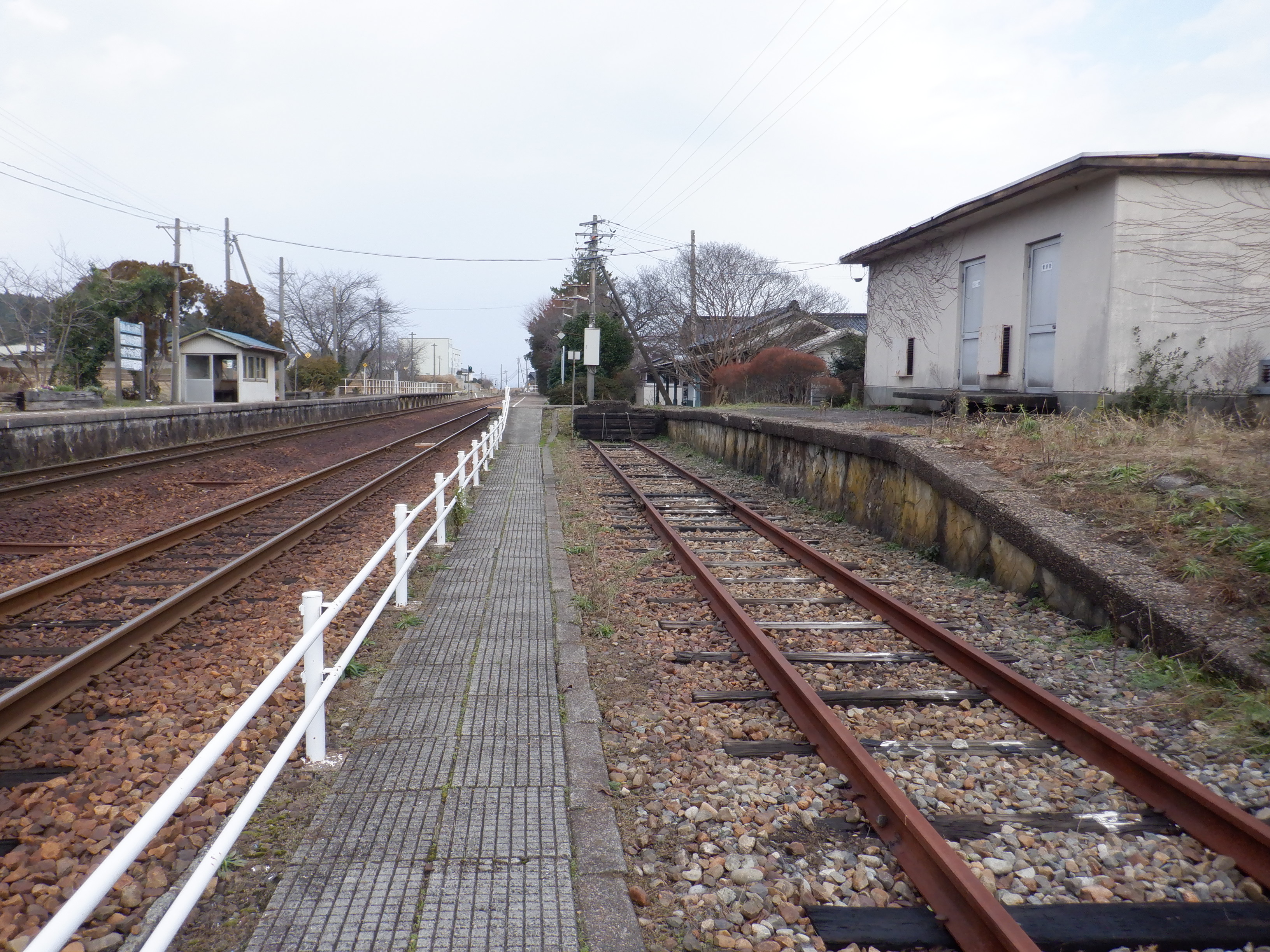 駅舎と反対側のホームから見た駅舎付近。