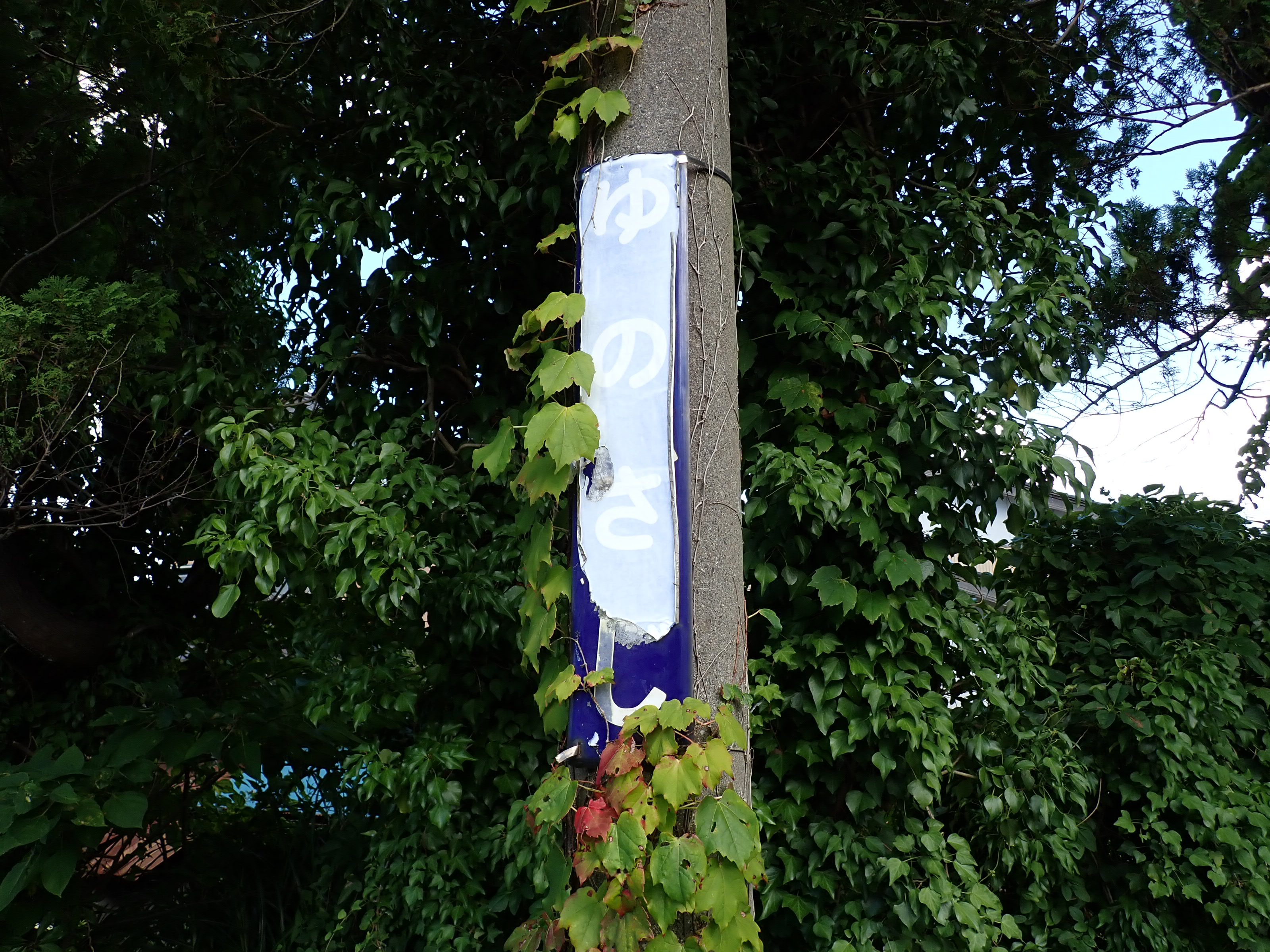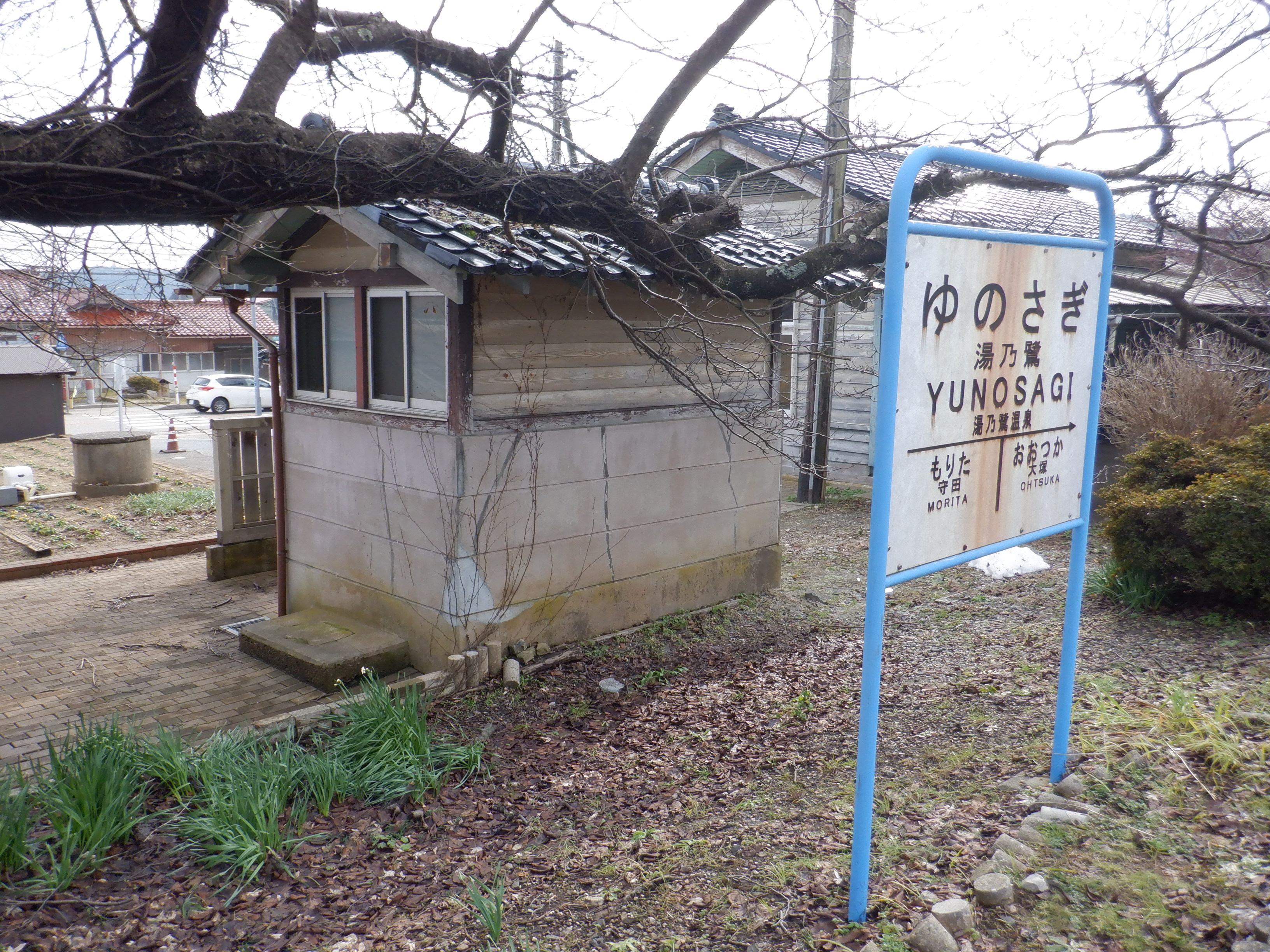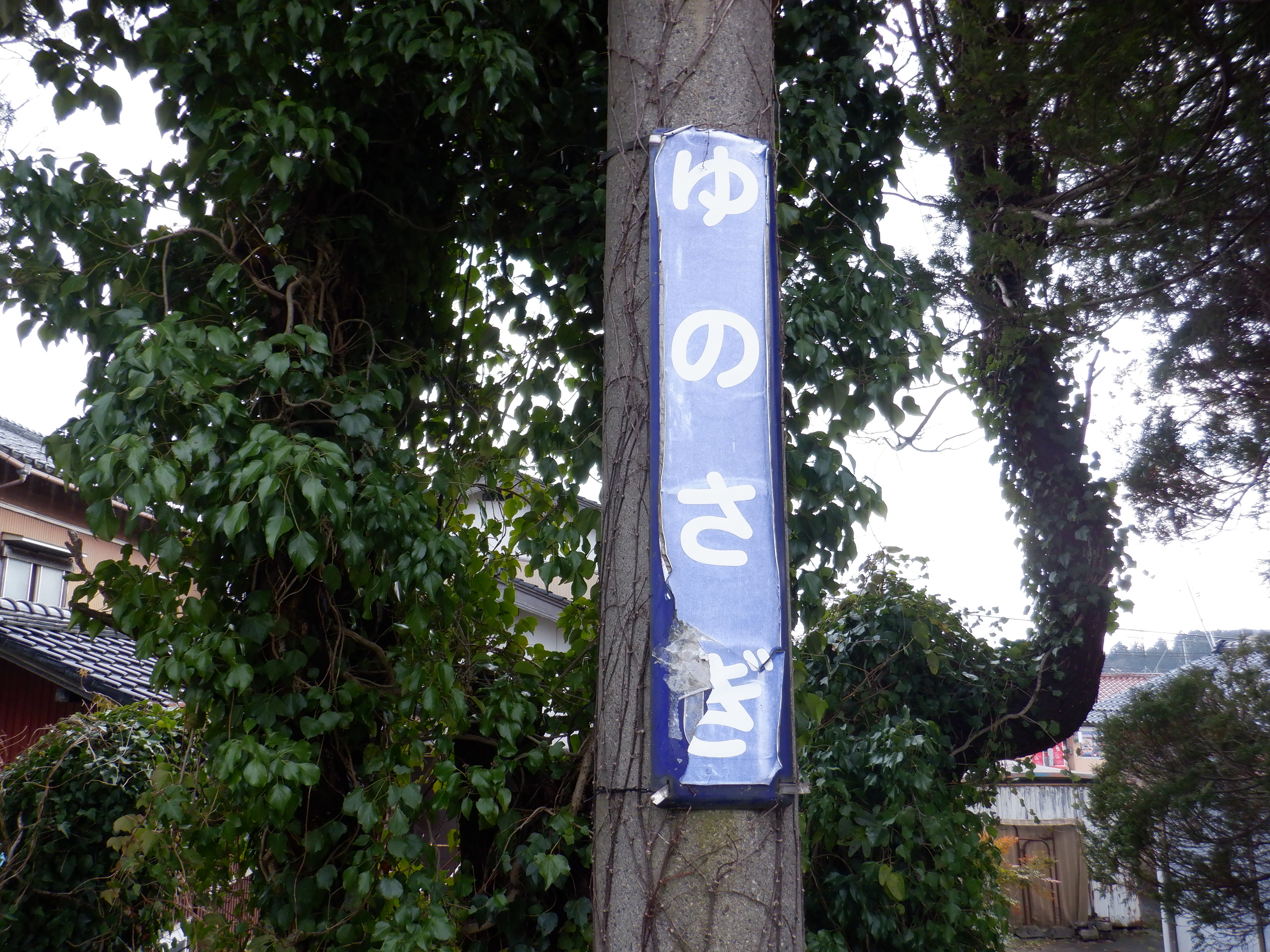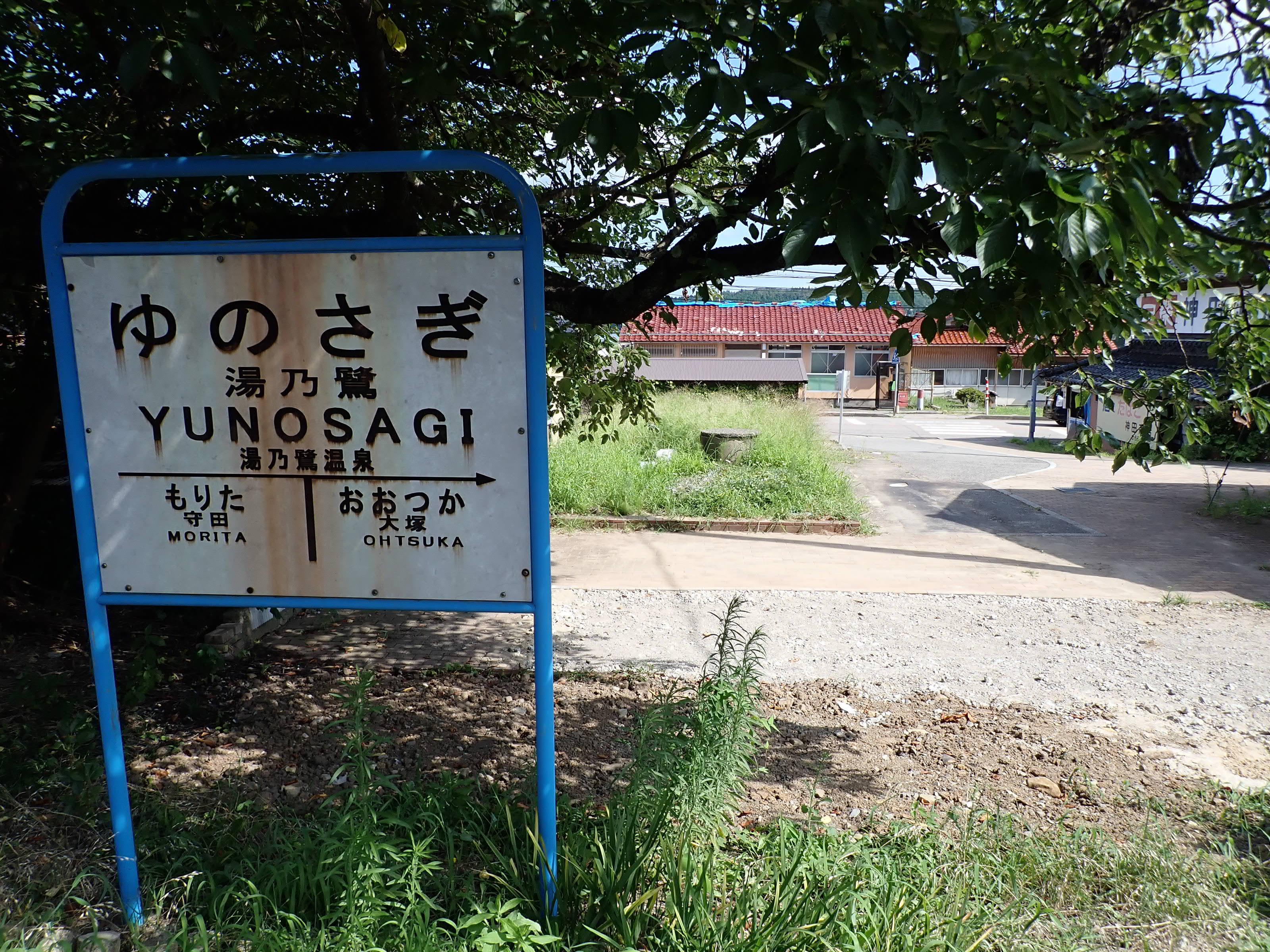 「ゆのさぎ」になっている柱の駅名標は下の方が剥がれて、シール部分が白くなってきています。