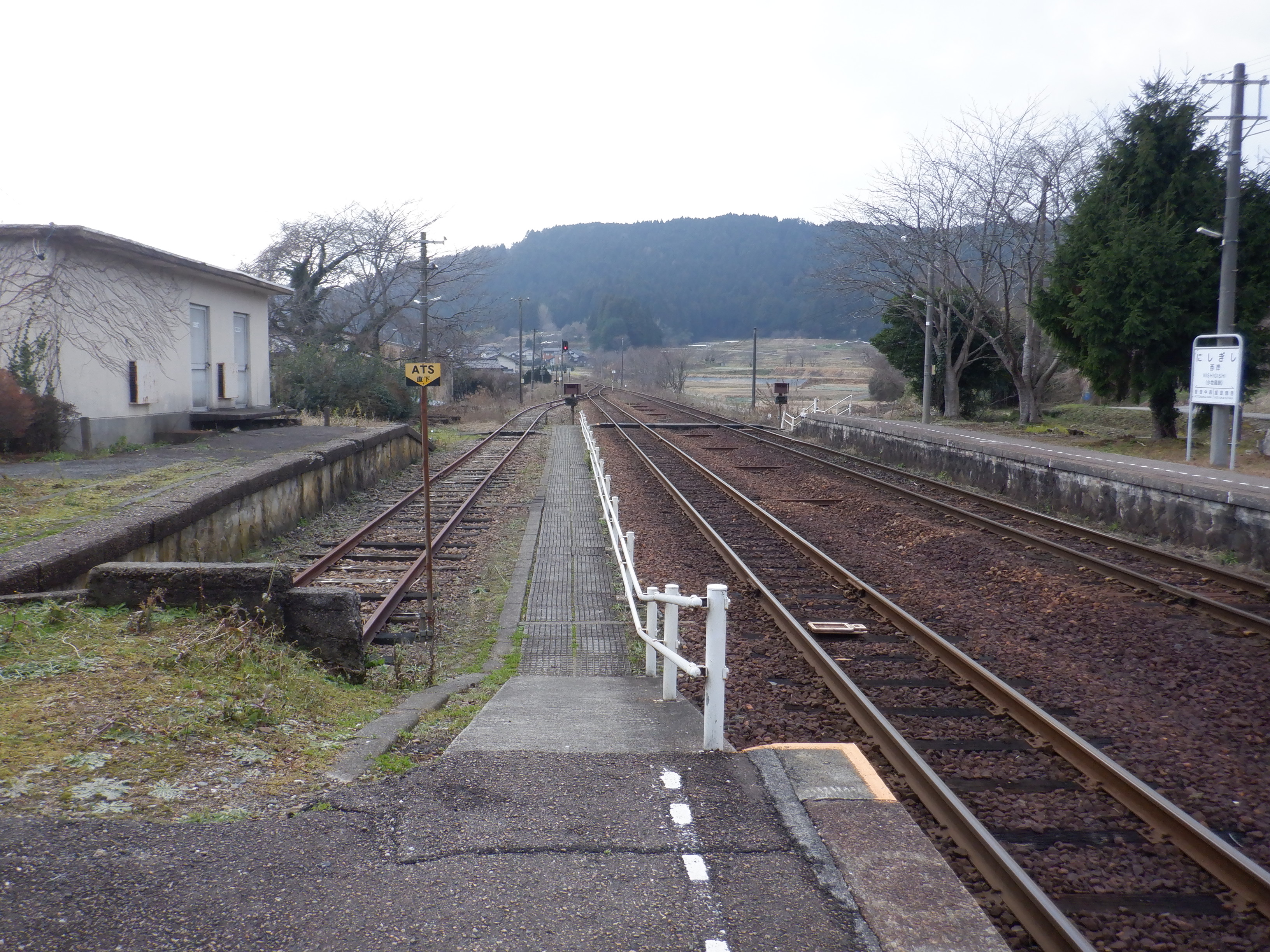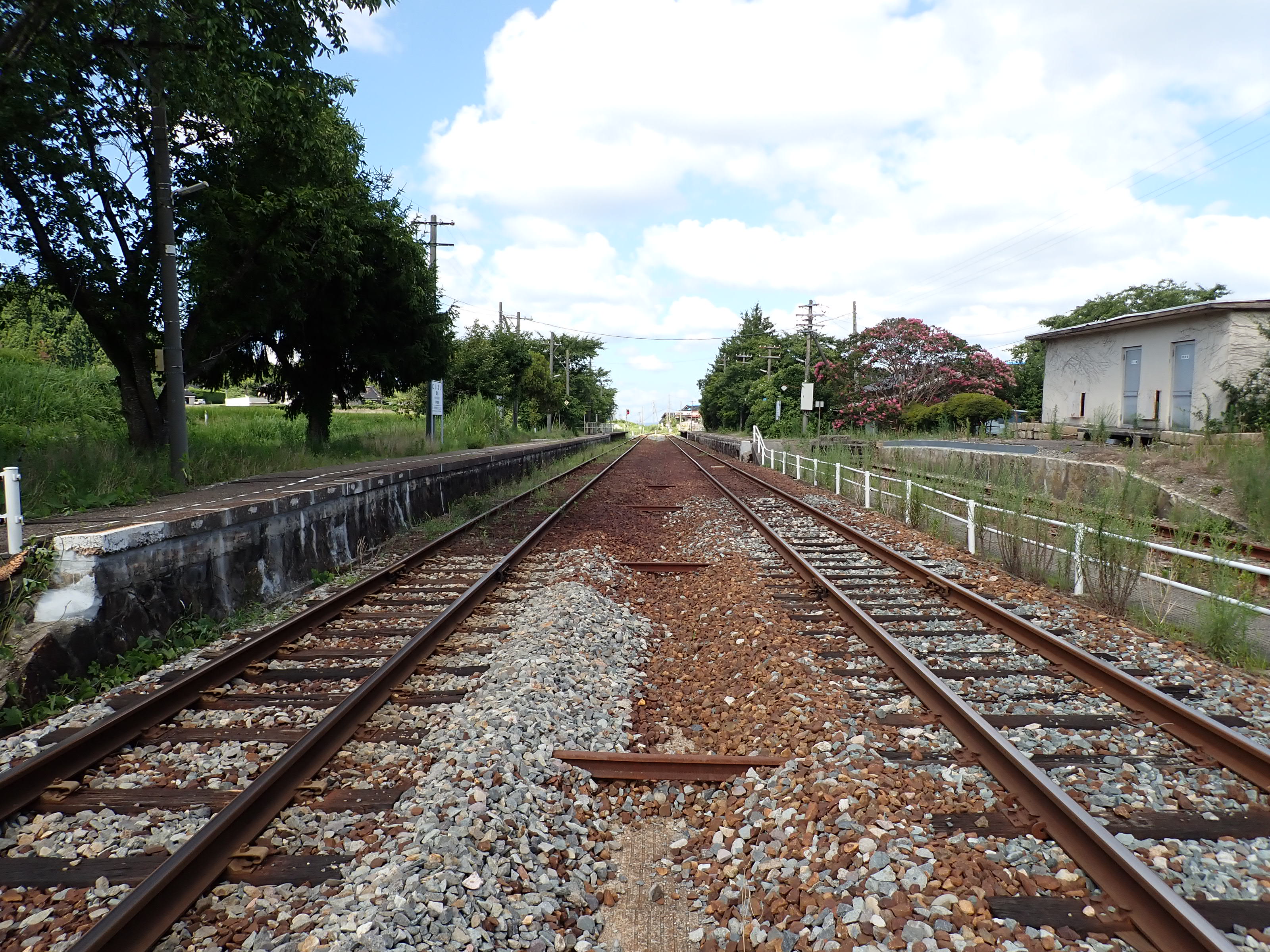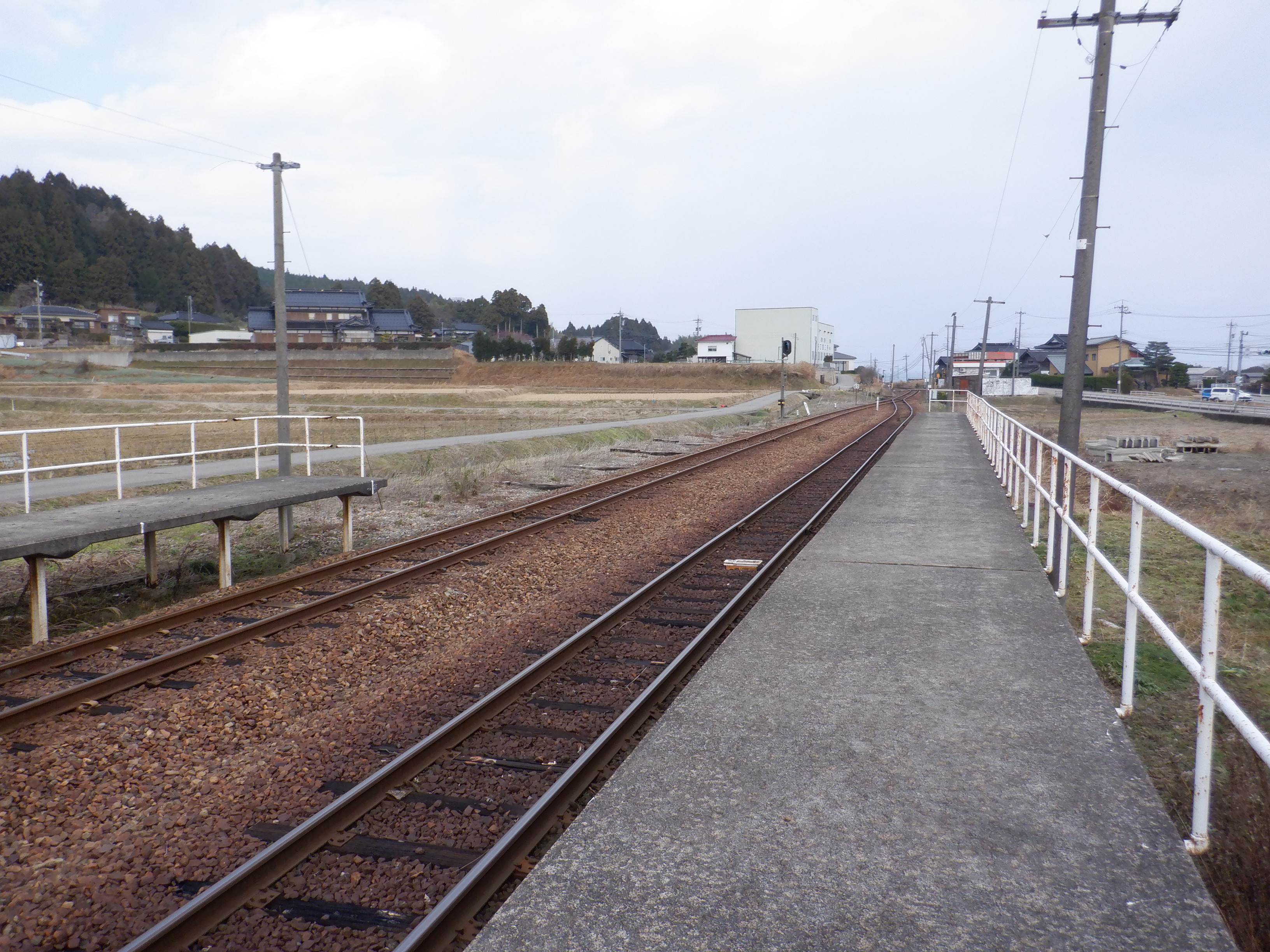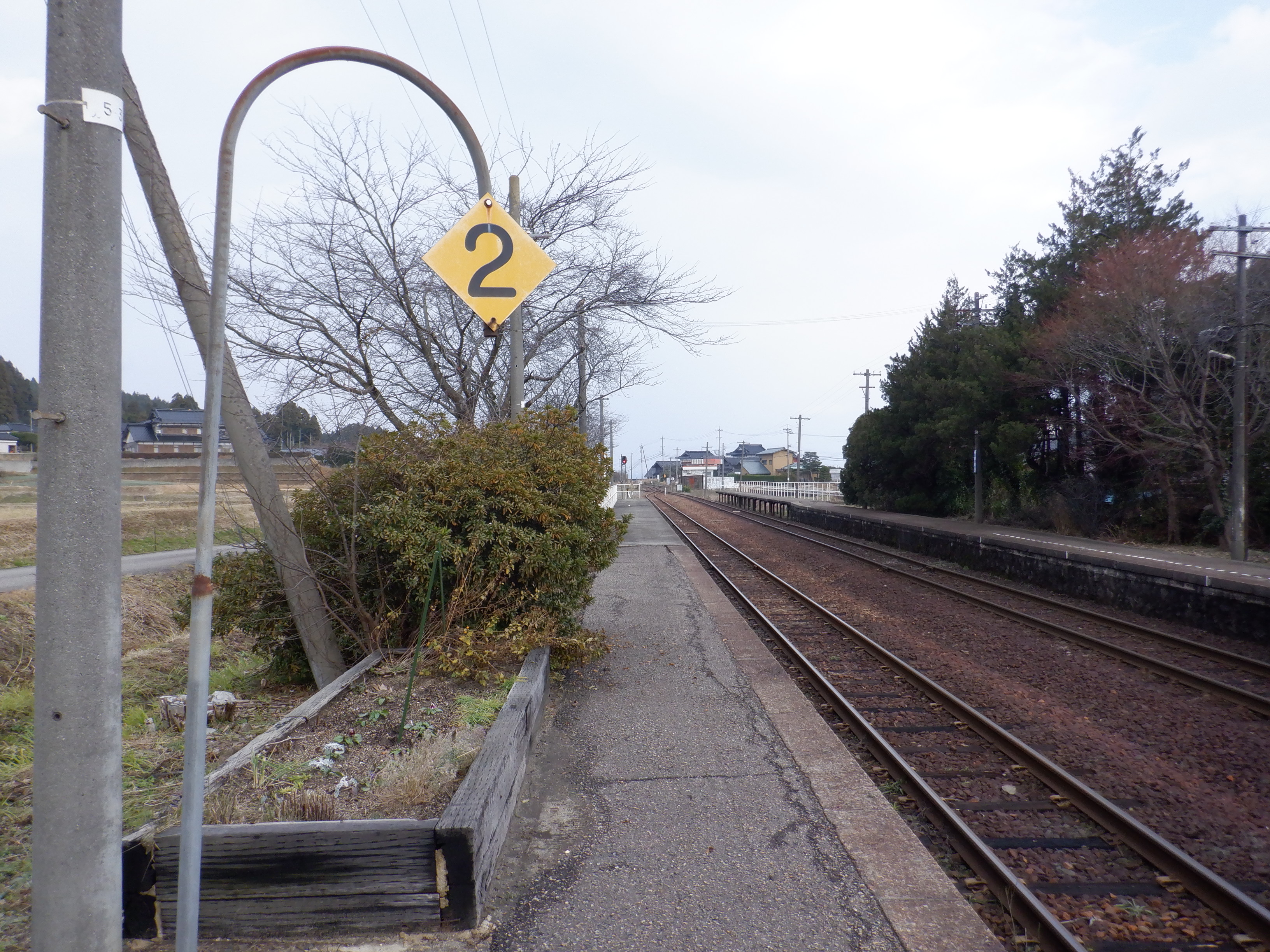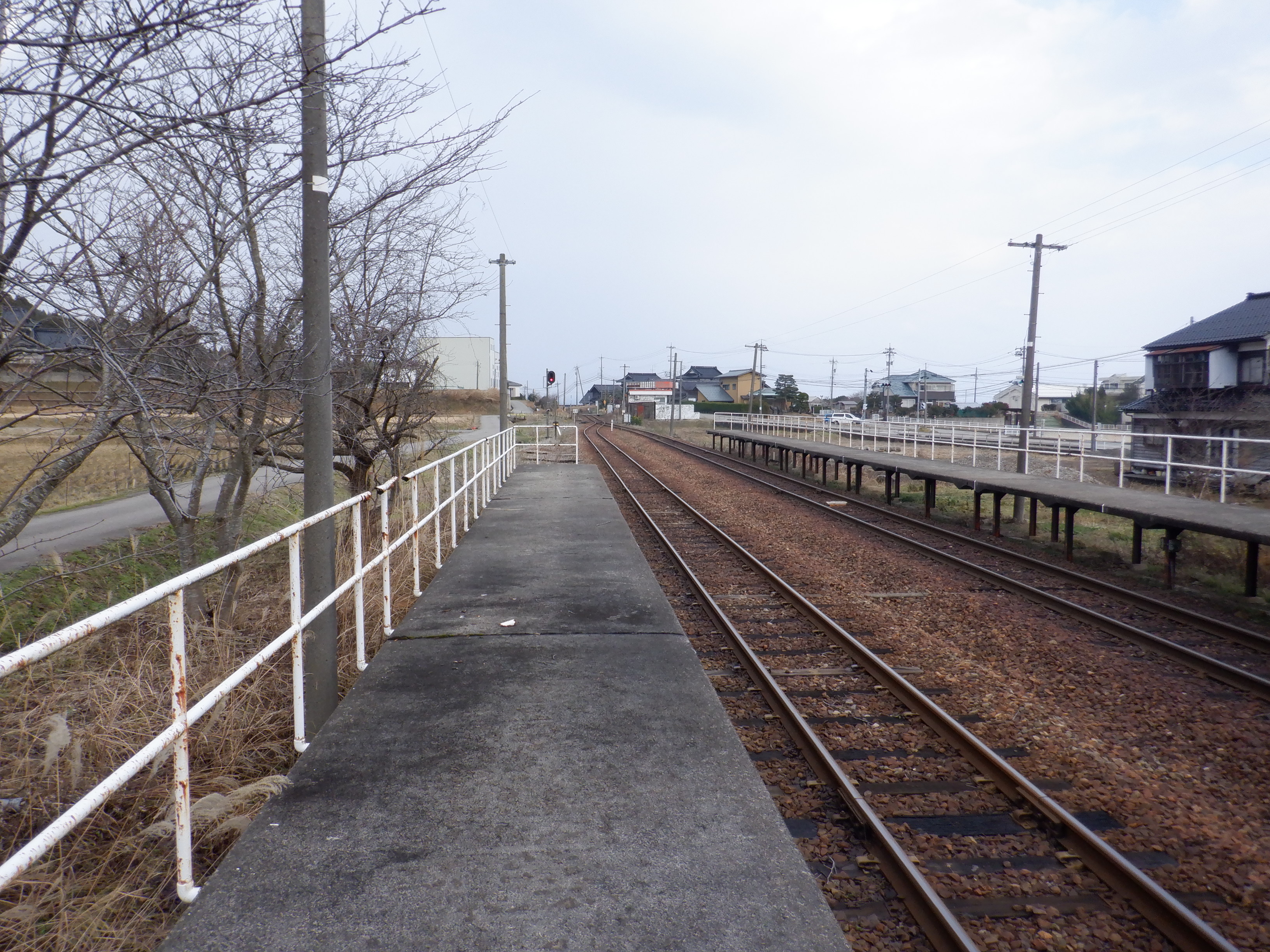 駅舎と反対側のホームの能登中島駅側。