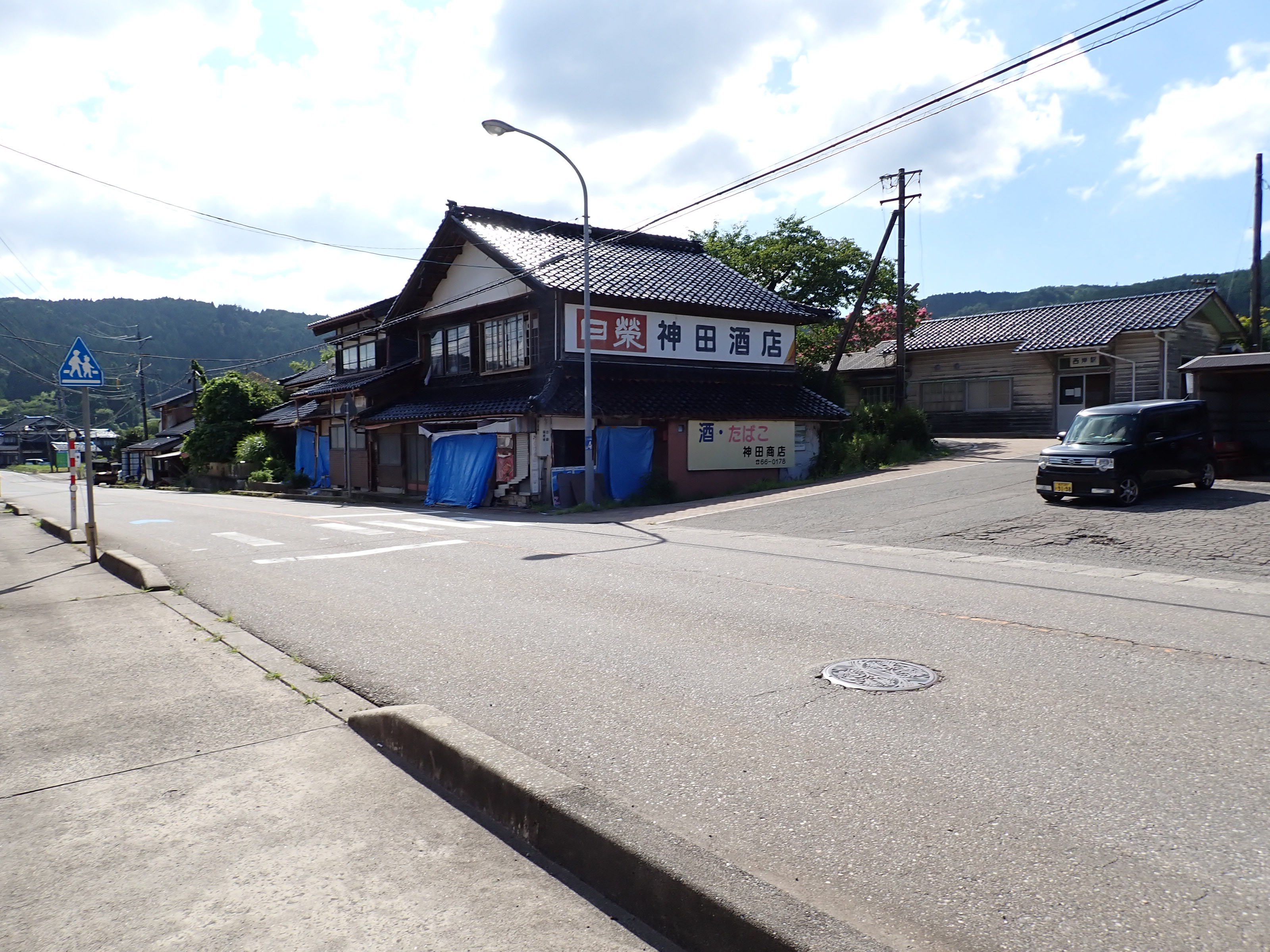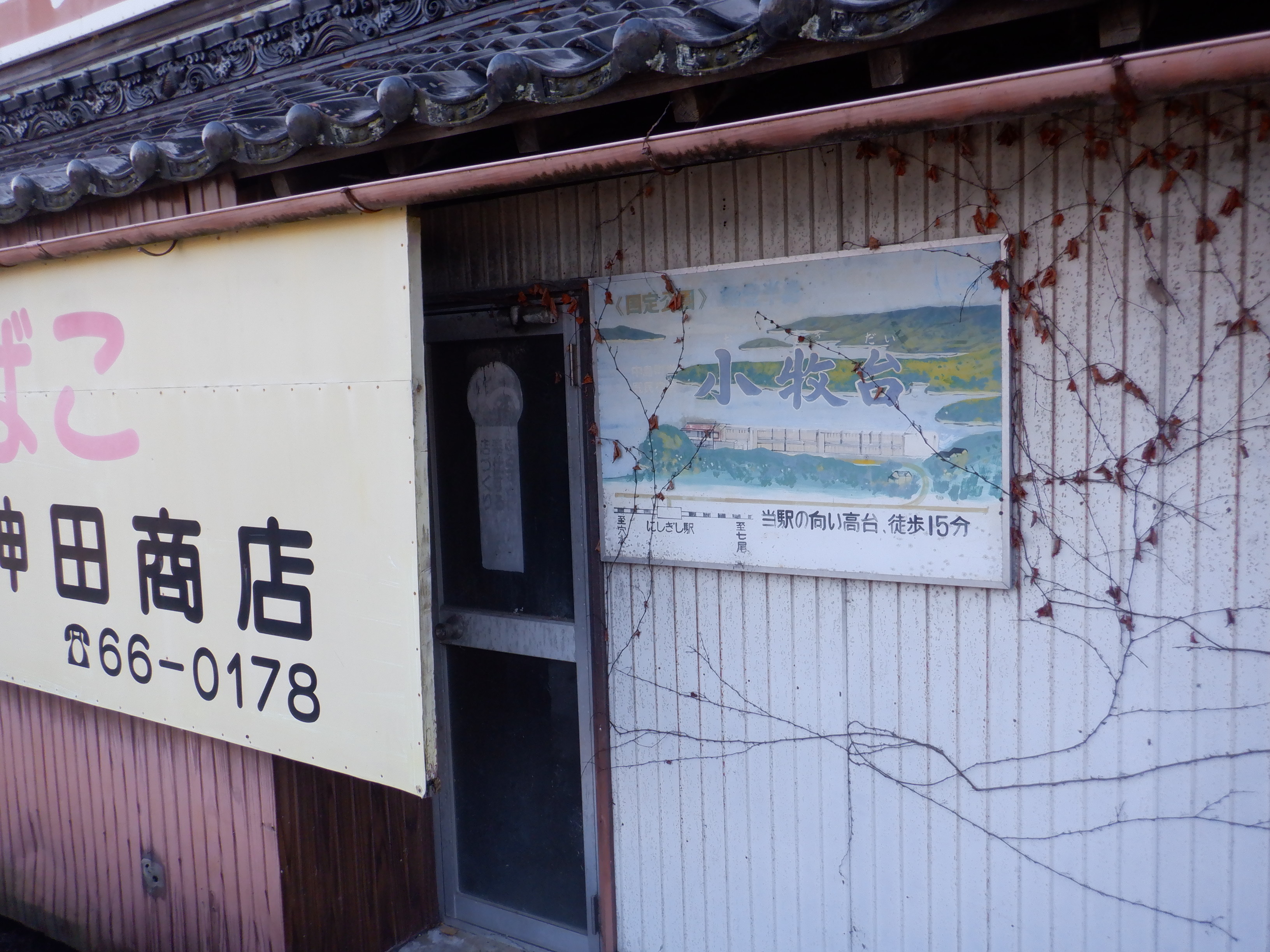 駅前の商店の壁には国民宿舎の広告が貼られていました。