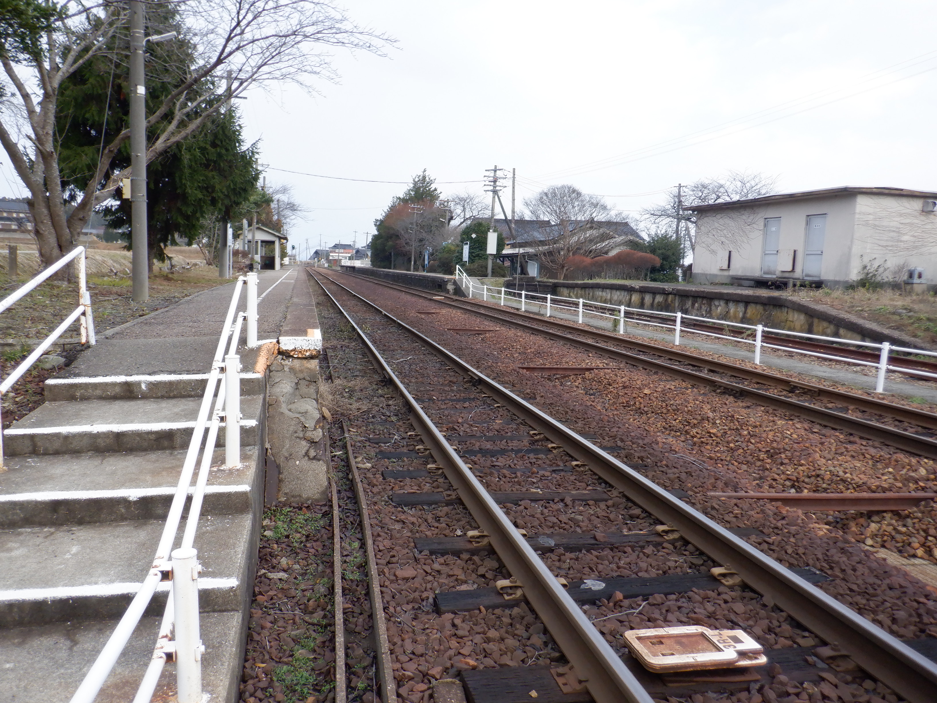 能登半島地震の影響が大きかった駅の一つで、ある程度復旧してから見に行ったものになります。ホームの待合室やトイレが撤去されていました。