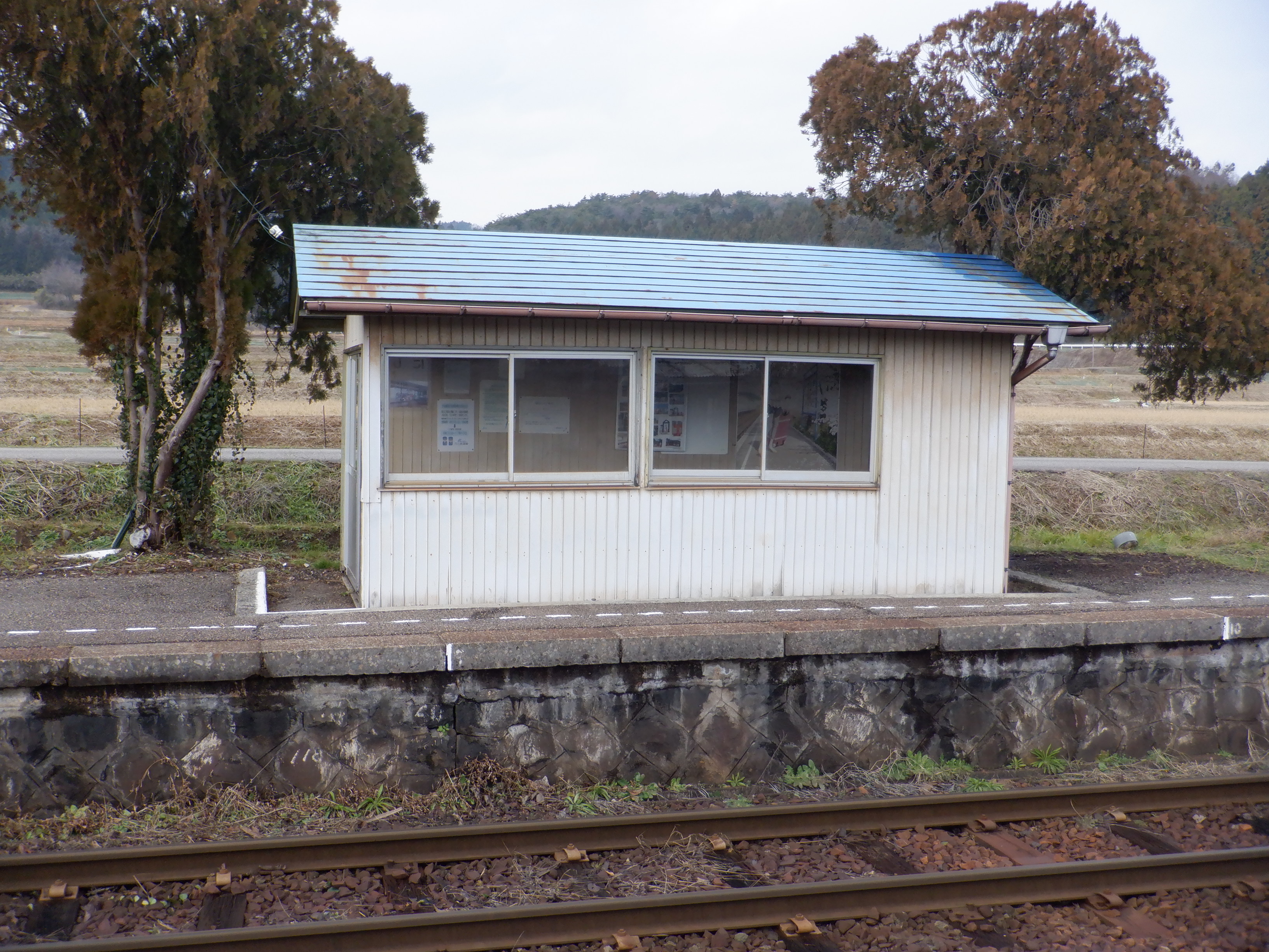駅舎と反対側のホームの待合室外観。